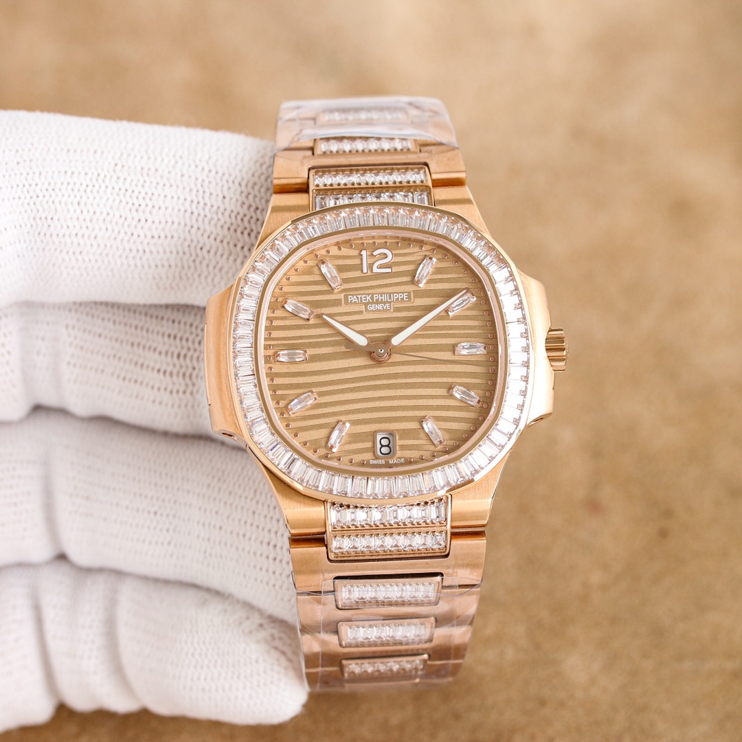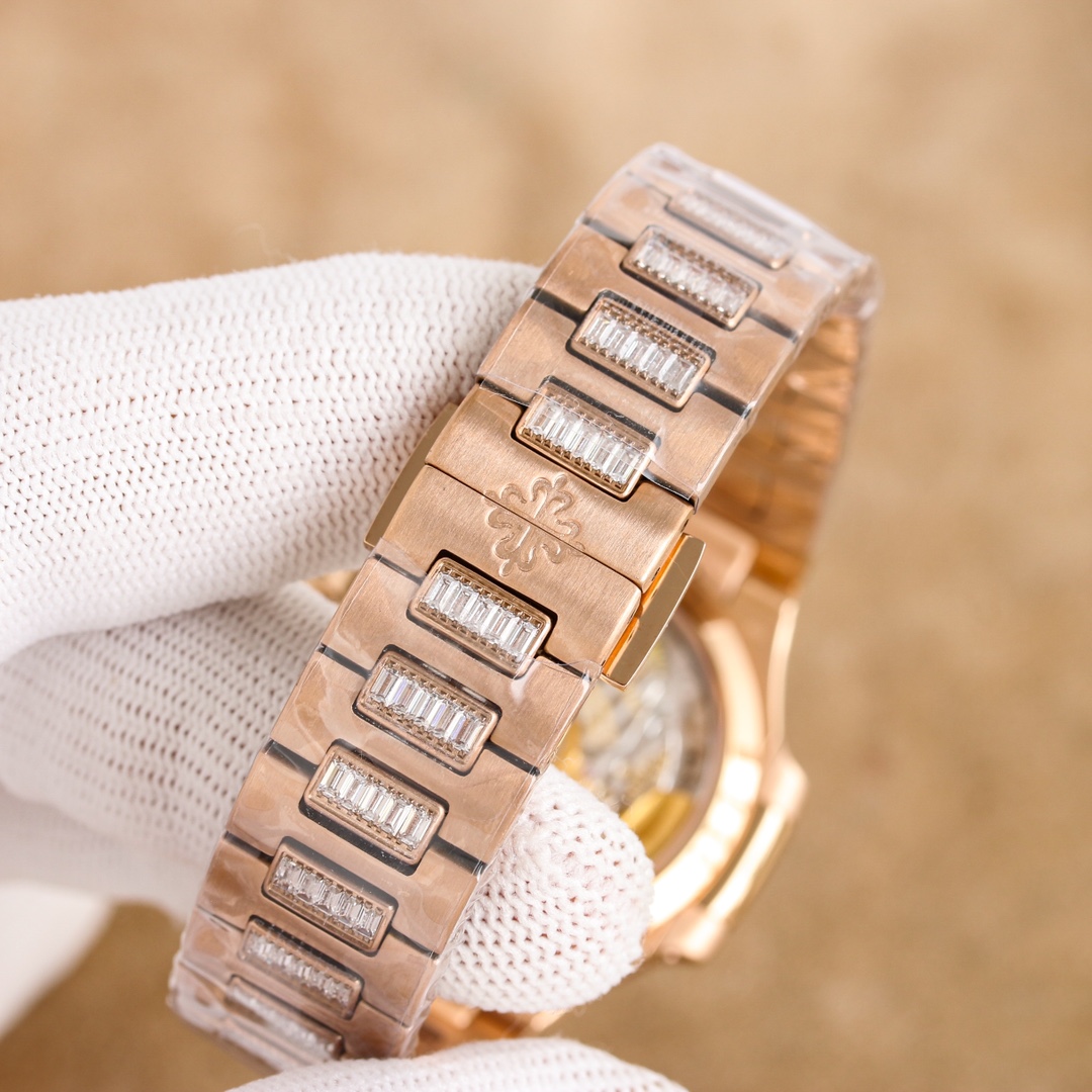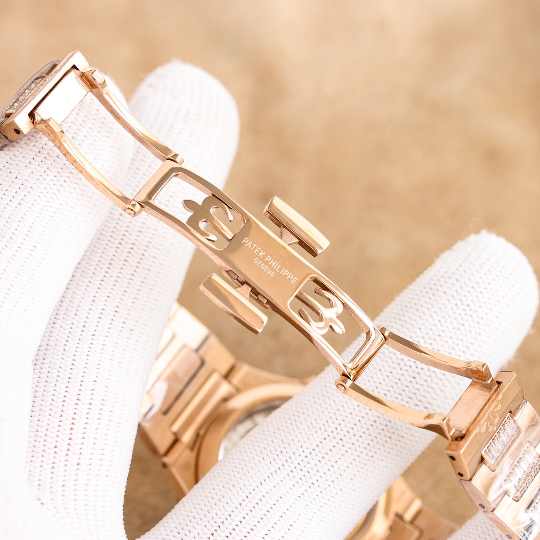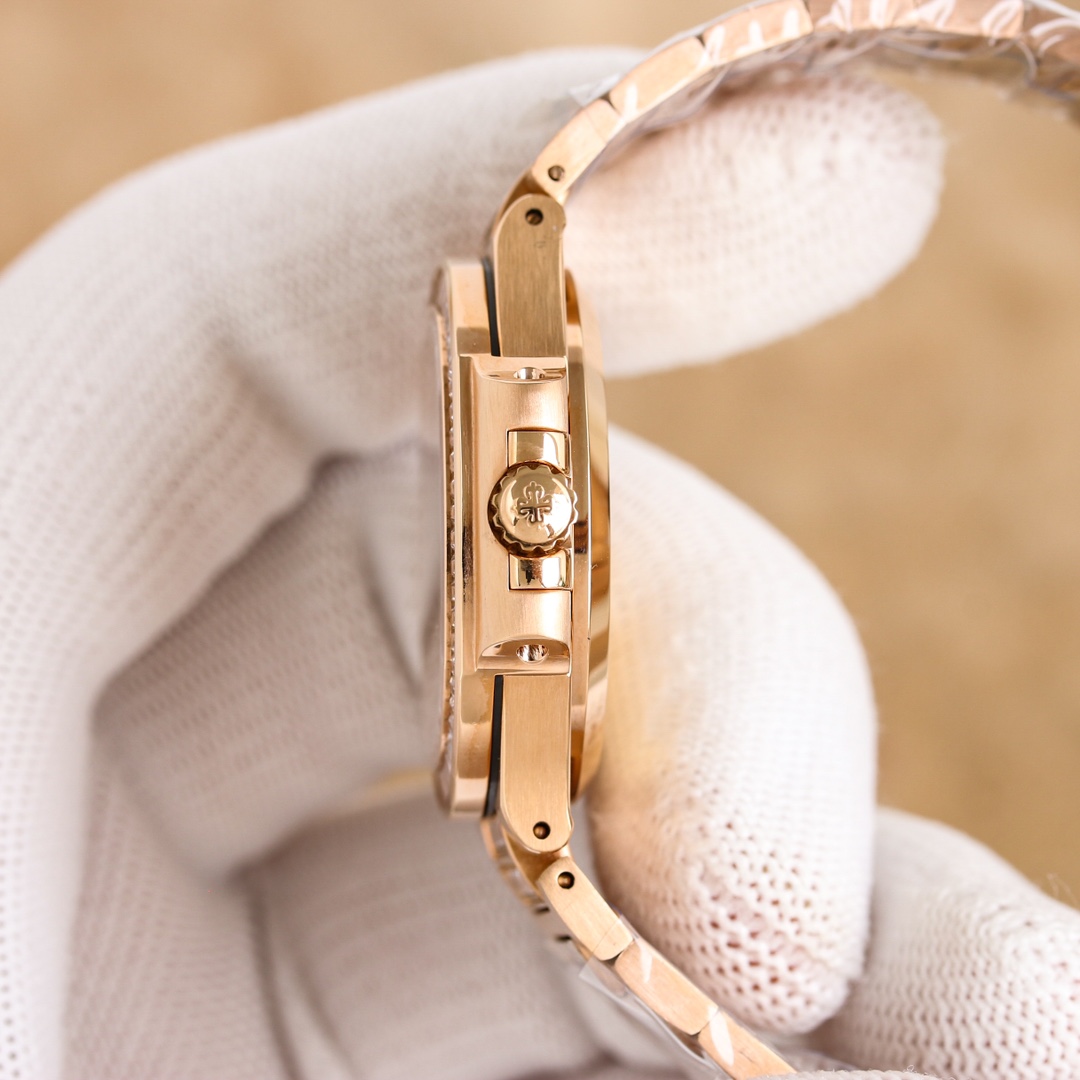 这款手表是AAAAA 1:1 质量 (非常棒). 使用了和原版一模一样的材料. 商标部分也保持了和百达翡丽/Patek Philippe一样. 图片拍摄是实物手表拍摄, 您所收到的实物保证和我们图片一模一样.