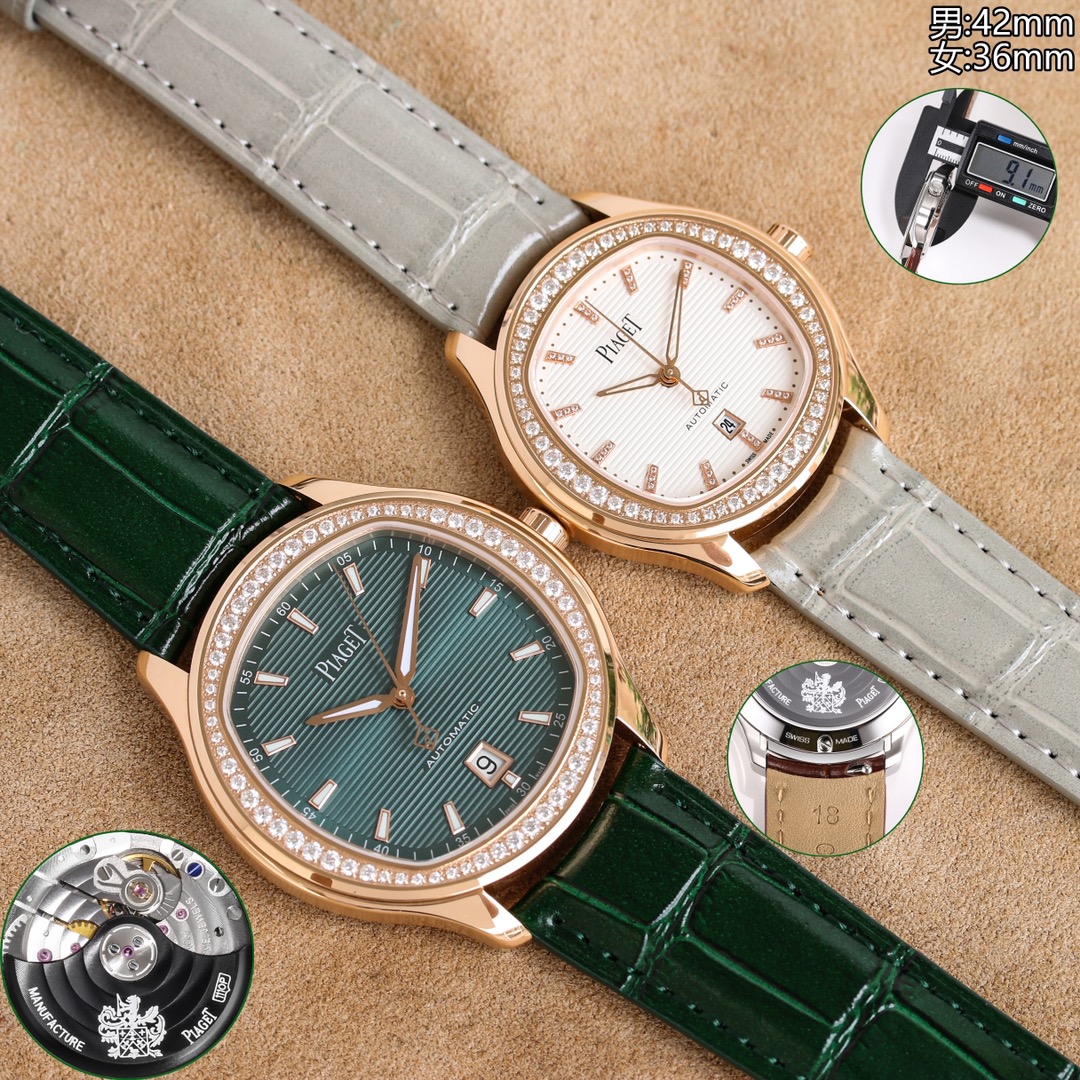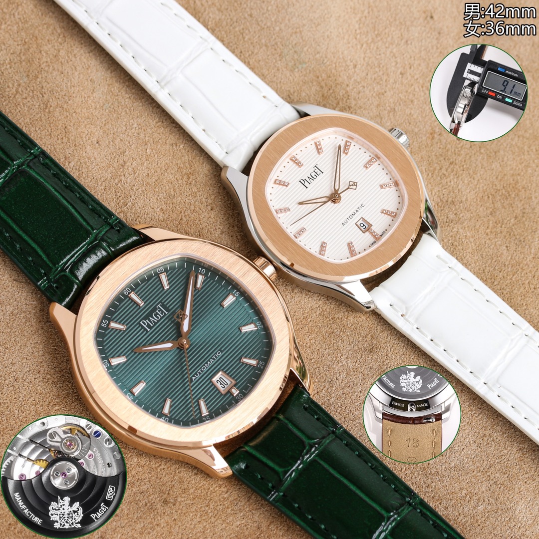 这款手表是AAAAA 1:1 质量 (非常棒). 使用了和原版一模一样的材料. 商标部分也保持了和伯爵/Piaget一样. 图片拍摄是实物手表拍摄, 您所收到的实物保证和我们图片一模一样.