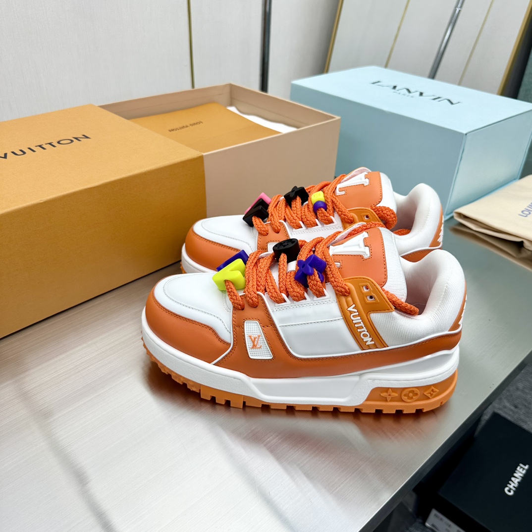 这款鞋子是AAAAA 1:1 质量 (非常棒). 使用了和原版一模一样的材料. 商标部分也保持了和路易威登/Louis Vuitton一样. 图片拍摄是实物鞋子拍摄, 您所收到的实物保证和我们图片一模一样.