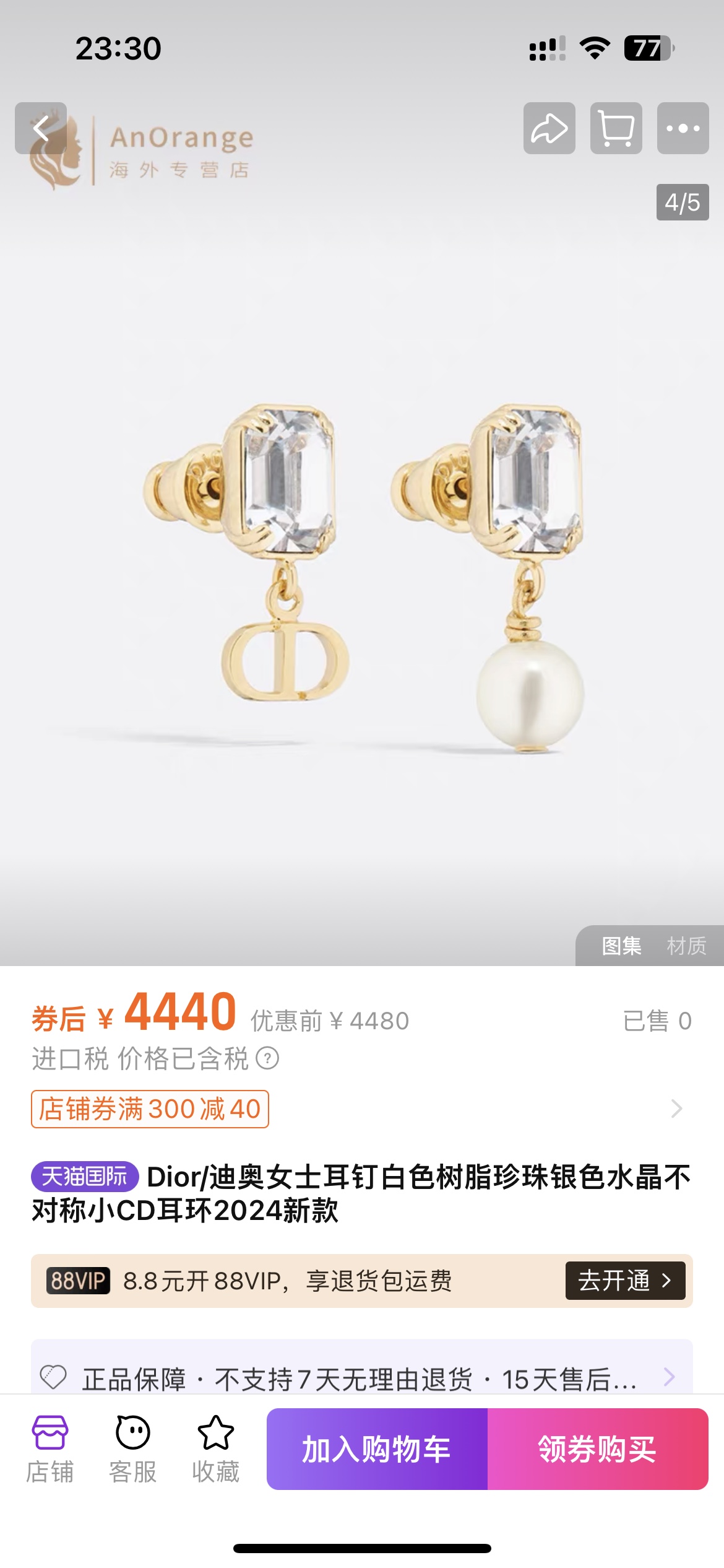 这款首饰是AAAAA 1:1 质量 (非常棒). 使用了和原版一模一样的材料. 商标部分也保持了和迪奥/Dior一样. 图片拍摄是实物首饰拍摄, 您所收到的实物保证和我们图片一模一样.