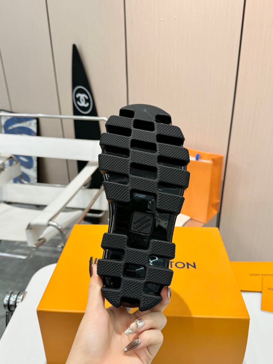 这款鞋子是AAAAA 1:1 质量 (非常棒). 使用了和原版一模一样的材料. 商标部分也保持了和路易威登/Louis Vuitton一样. 图片拍摄是实物鞋子拍摄, 您所收到的实物保证和我们图片一模一样.
