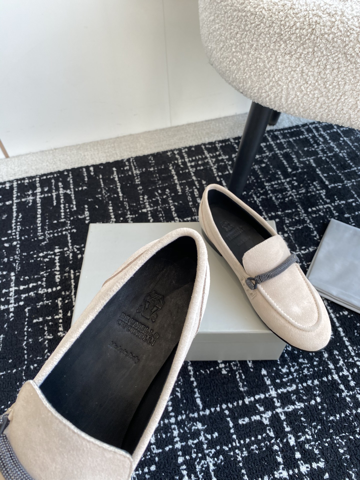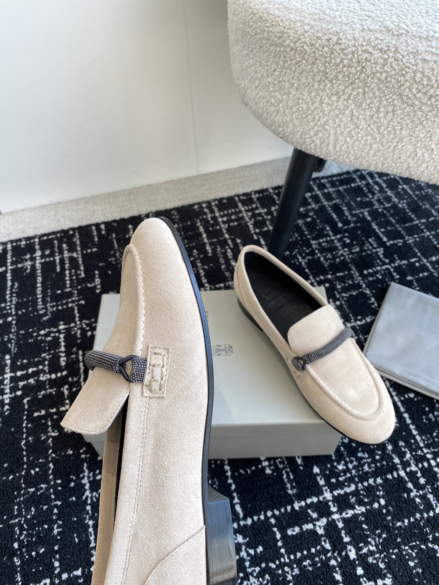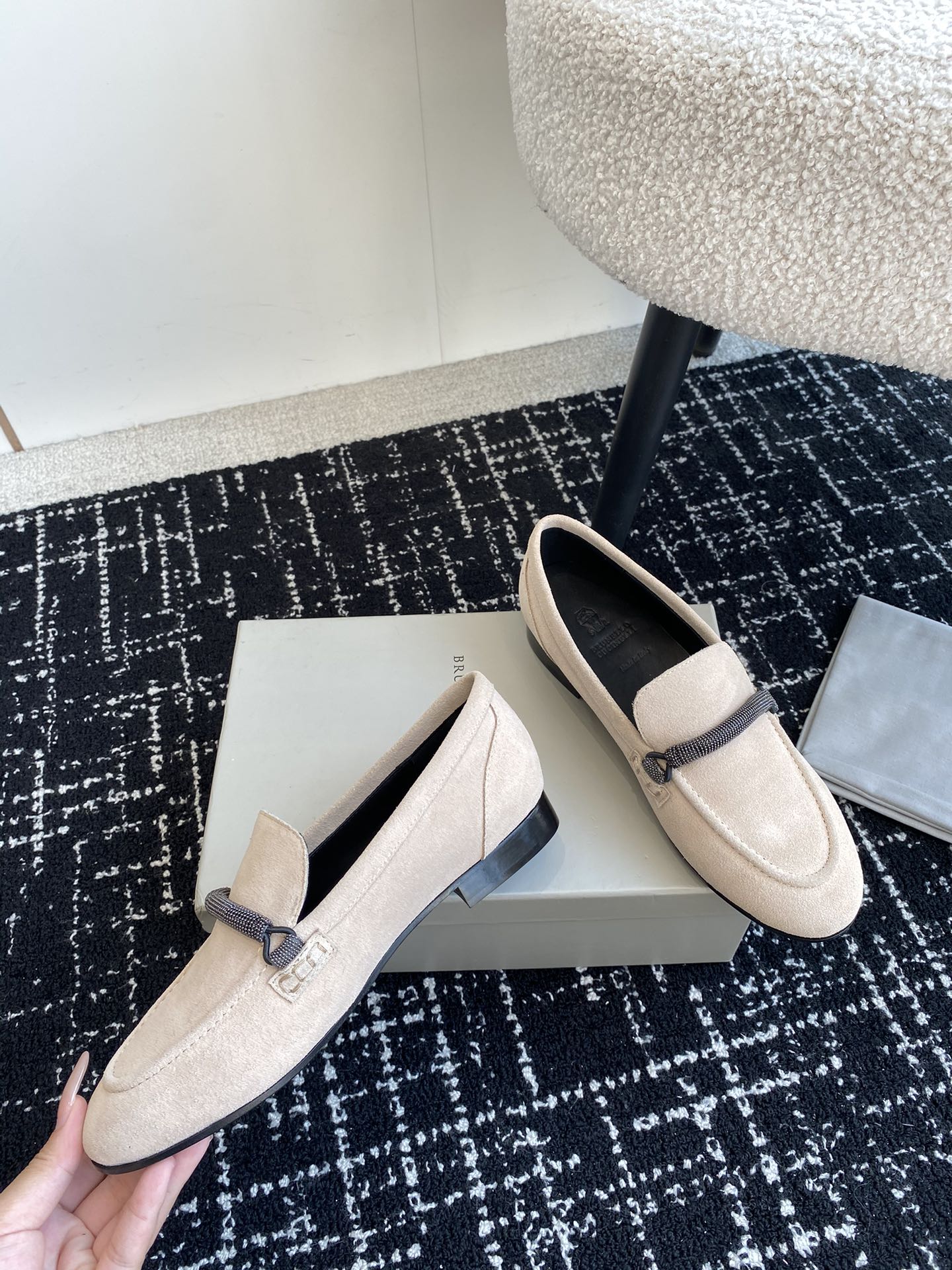 这款鞋子是AAAAA 1:1 质量 (非常棒). 使用了和原版一模一样的材料. 商标部分也保持了和Brunello Cucinelli一样. 图片拍摄是实物鞋子拍摄, 您所收到的实物保证和我们图片一模一样.