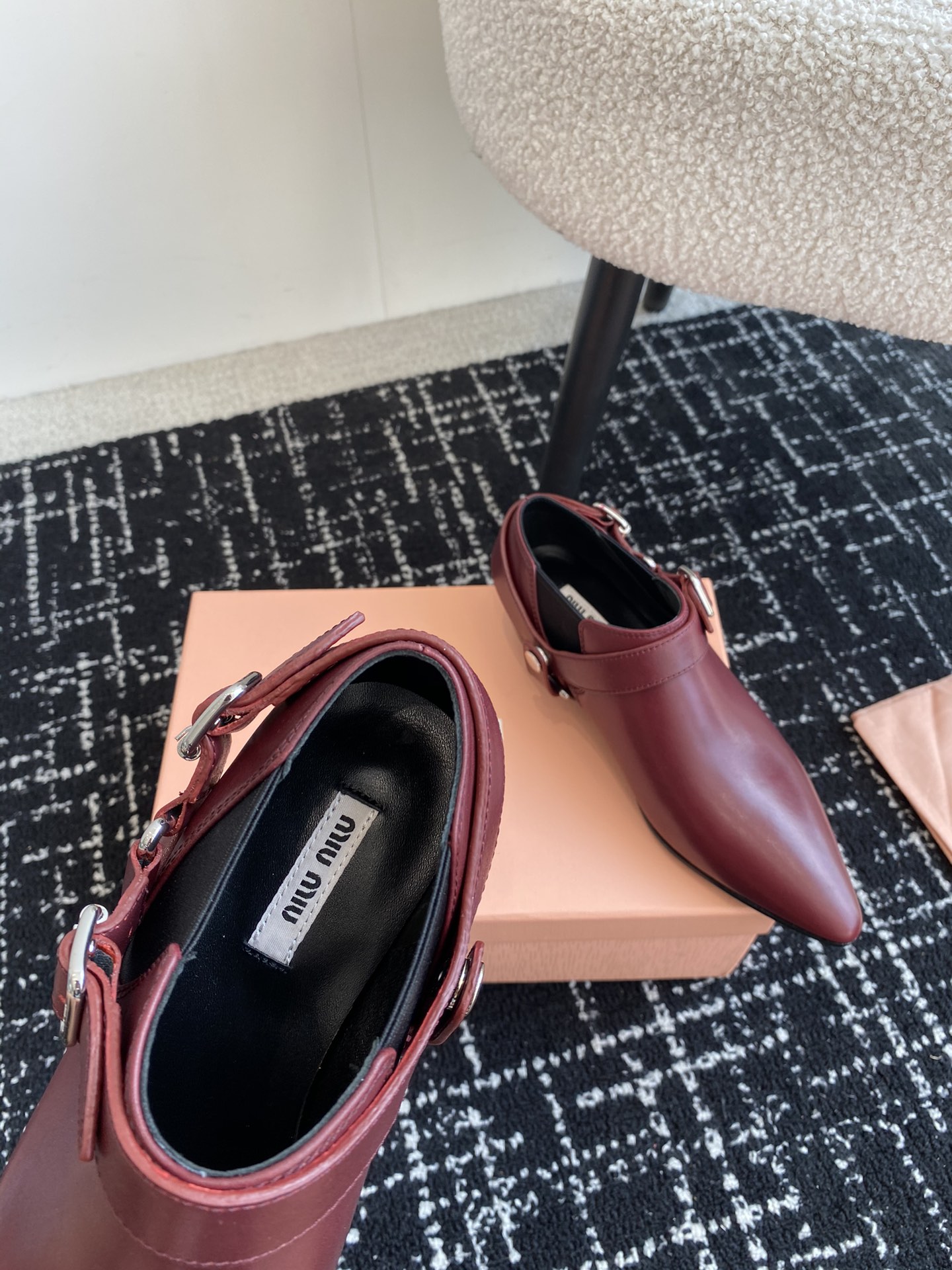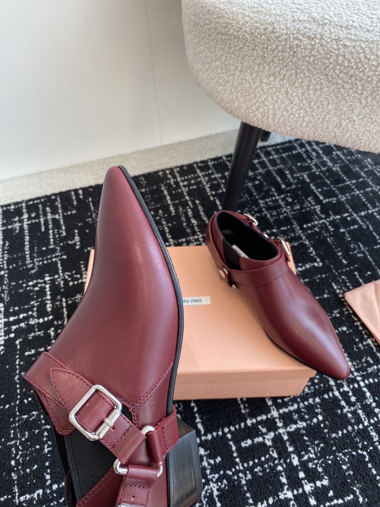这款鞋子是AAAAA 1:1 质量 (非常棒). 使用了和原版一模一样的材料. 商标部分也保持了和缪缪/Miu Miu一样. 图片拍摄是实物鞋子拍摄, 您所收到的实物保证和我们图片一模一样.