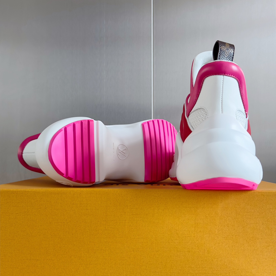 这款鞋子是AAAAA 1:1 质量 (非常棒). 使用了和原版一模一样的材料. 商标部分也保持了和路易威登/Louis Vuitton一样. 图片拍摄是实物鞋子拍摄, 您所收到的实物保证和我们图片一模一样.