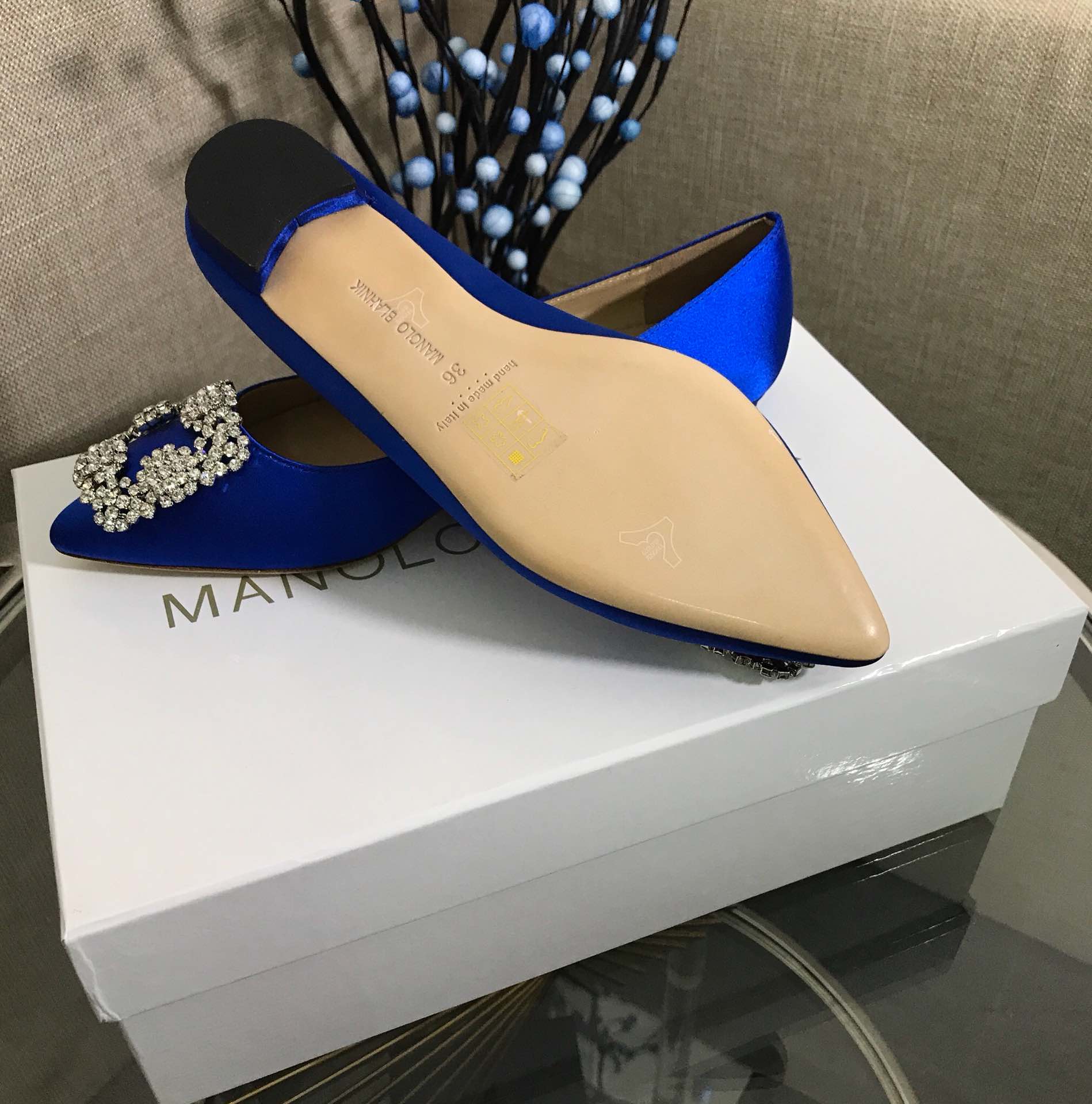 这款鞋子是AAAAA 1:1 质量 (非常棒). 使用了和原版一模一样的材料. 商标部分也保持了和马诺洛·布拉尼克/Manolo Blahnik一样. 图片拍摄是实物鞋子拍摄, 您所收到的实物保证和我们图片一模一样.