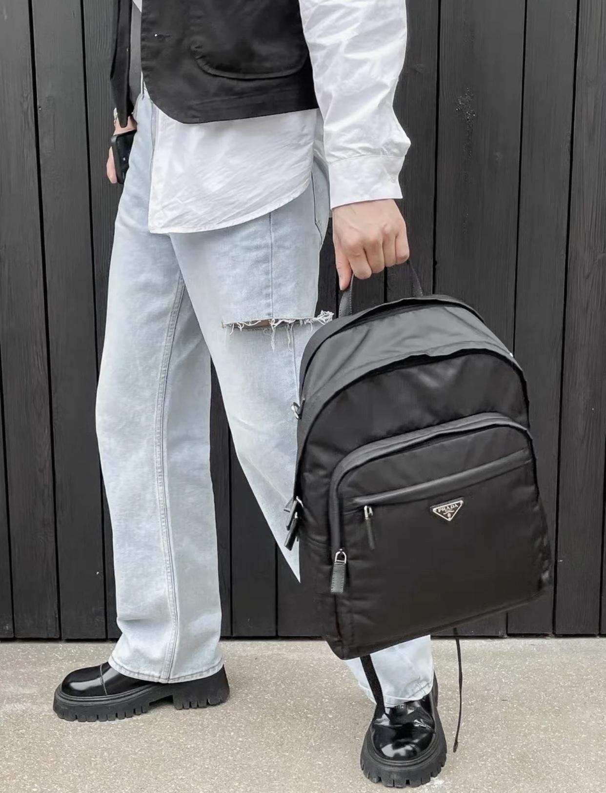 这款背包是AAAAA 1:1 质量 (非常棒). 使用了和原版一模一样的材料. 商标部分也保持了和普拉达/Prada一样. 图片拍摄是实物背包拍摄, 您所收到的实物保证和我们图片一模一样.