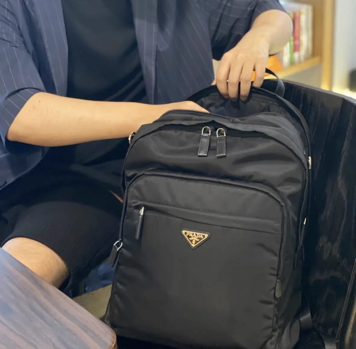 这款背包是AAAAA 1:1 质量 (非常棒). 使用了和原版一模一样的材料. 商标部分也保持了和普拉达/Prada一样. 图片拍摄是实物背包拍摄, 您所收到的实物保证和我们图片一模一样.