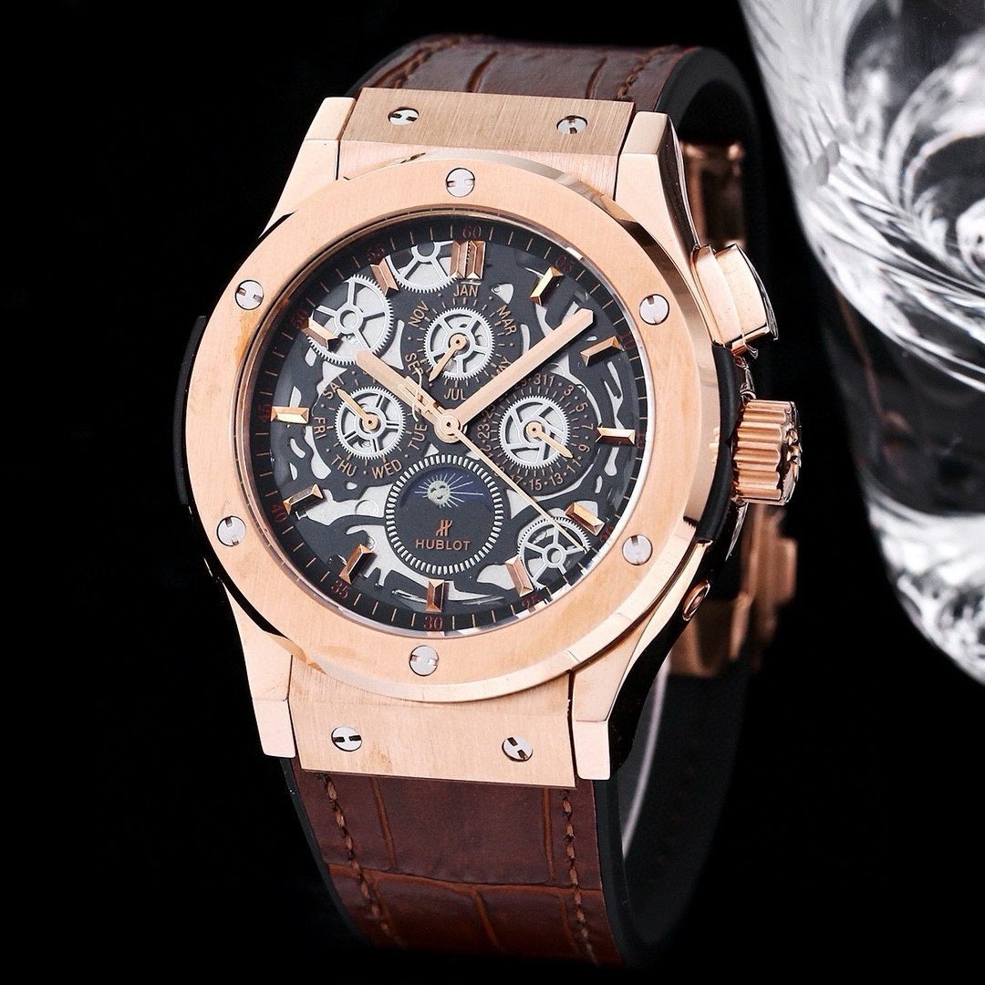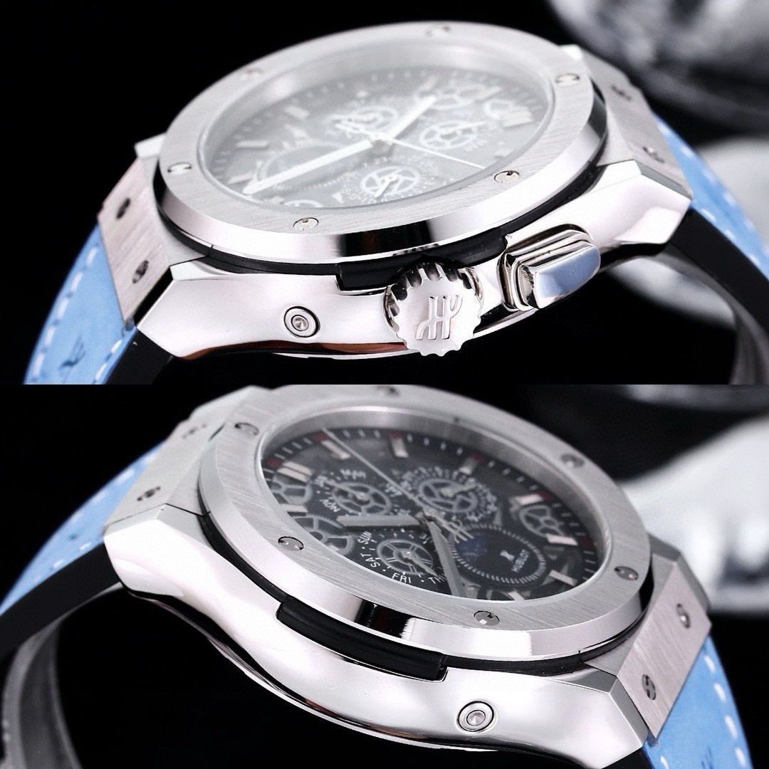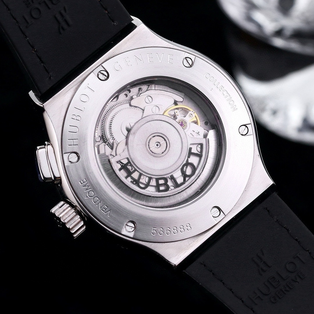 这款手表是AAAAA 1:1 质量 (非常棒). 使用了和原版一模一样的材料. 商标部分也保持了和Hublot一样. 图片拍摄是实物手表拍摄, 您所收到的实物保证和我们图片一模一样.