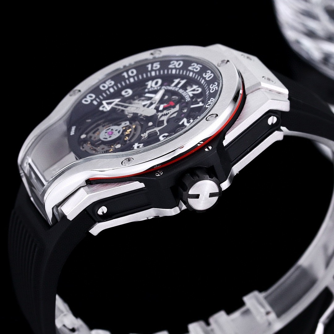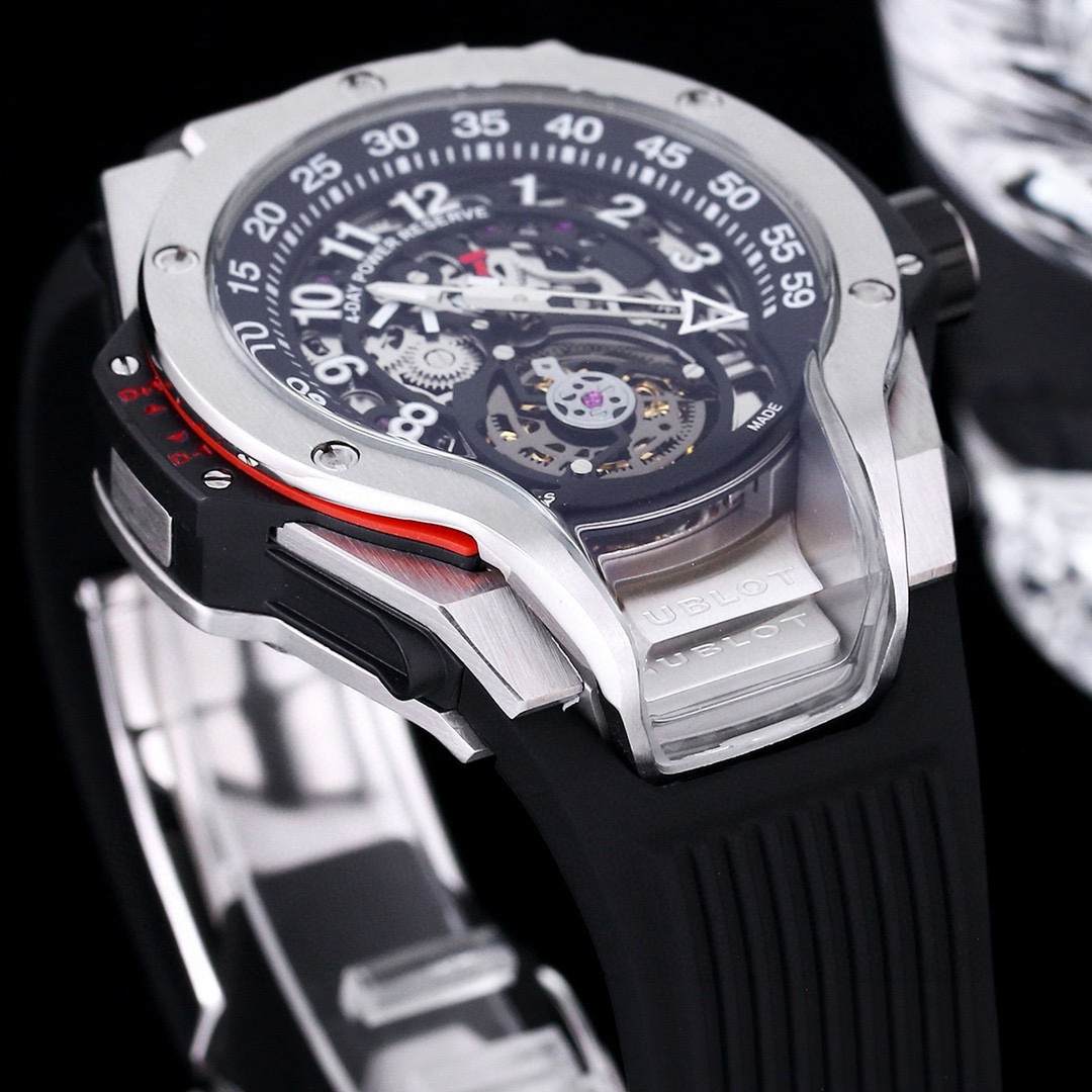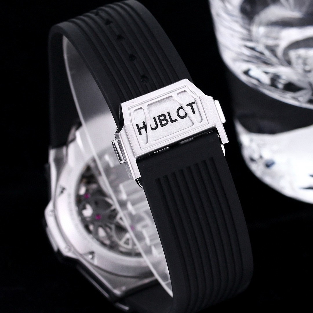 这款手表是AAAAA 1:1 质量 (非常棒). 使用了和原版一模一样的材料. 商标部分也保持了和Hublot一样. 图片拍摄是实物手表拍摄, 您所收到的实物保证和我们图片一模一样.