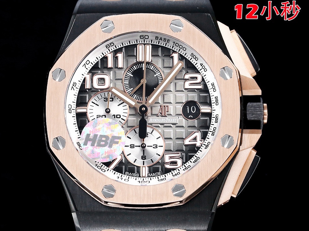 这款手表是AAAAA 1:1 质量 (非常棒). 使用了和原版一模一样的材料. 商标部分也保持了和爱彼/Audemars Piguet一样. 图片拍摄是实物手表拍摄, 您所收到的实物保证和我们图片一模一样.