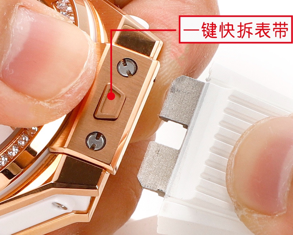 这款手表是AAAAA 1:1 质量 (非常棒). 使用了和原版一模一样的材料. 商标部分也保持了和Hublot一样. 图片拍摄是实物手表拍摄, 您所收到的实物保证和我们图片一模一样.