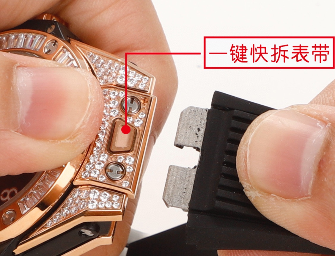 这款手表是AAAAA 1:1 质量 (非常棒). 使用了和原版一模一样的材料. 商标部分也保持了和Hublot一样. 图片拍摄是实物手表拍摄, 您所收到的实物保证和我们图片一模一样.