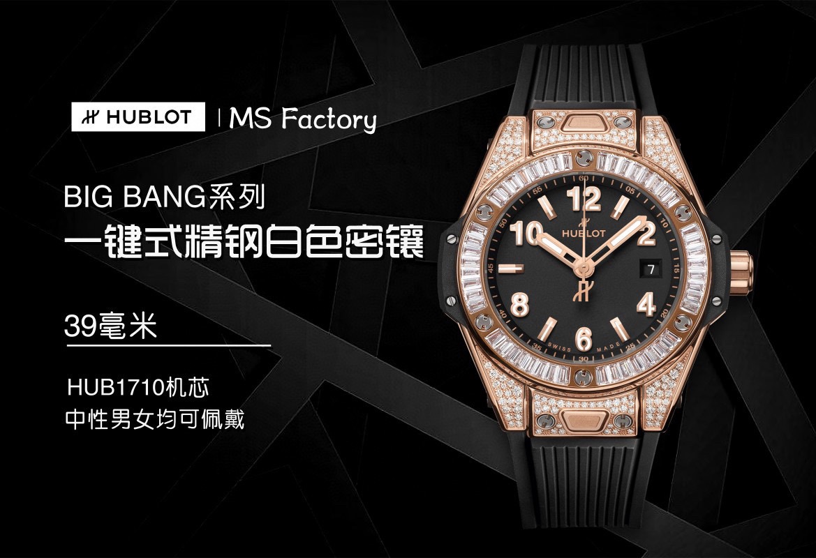 这款手表是AAAAA 1:1 质量 (非常棒). 使用了和原版一模一样的材料. 商标部分也保持了和Hublot一样. 图片拍摄是实物手表拍摄, 您所收到的实物保证和我们图片一模一样.