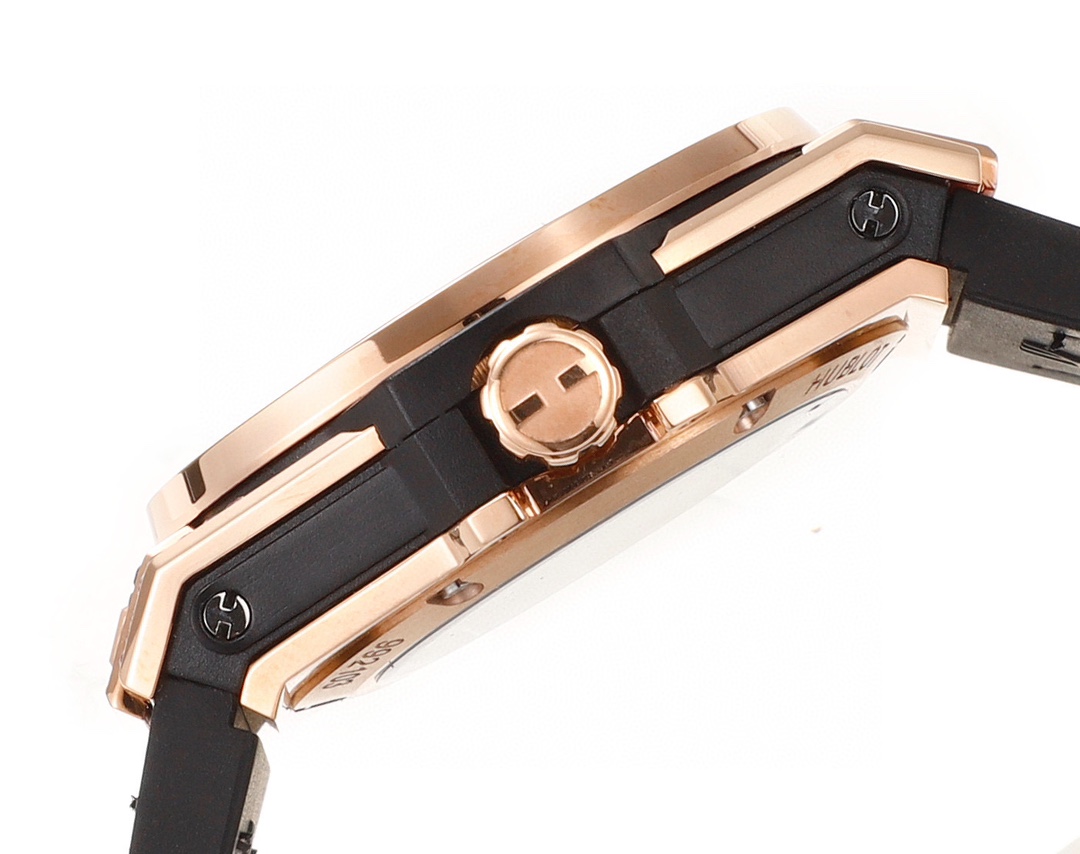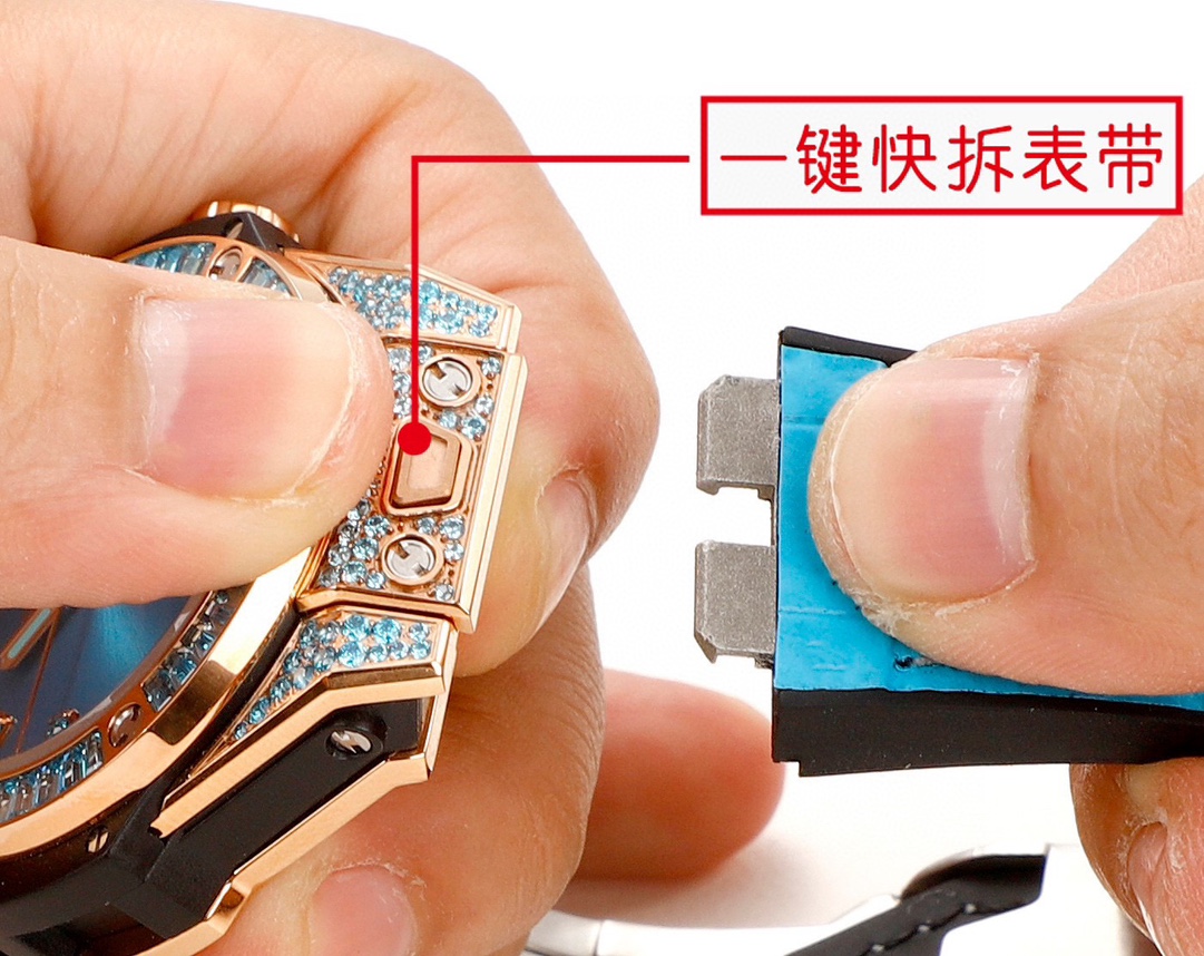 这款手表是AAAAA 1:1 质量 (非常棒). 使用了和原版一模一样的材料. 商标部分也保持了和Hublot一样. 图片拍摄是实物手表拍摄, 您所收到的实物保证和我们图片一模一样.