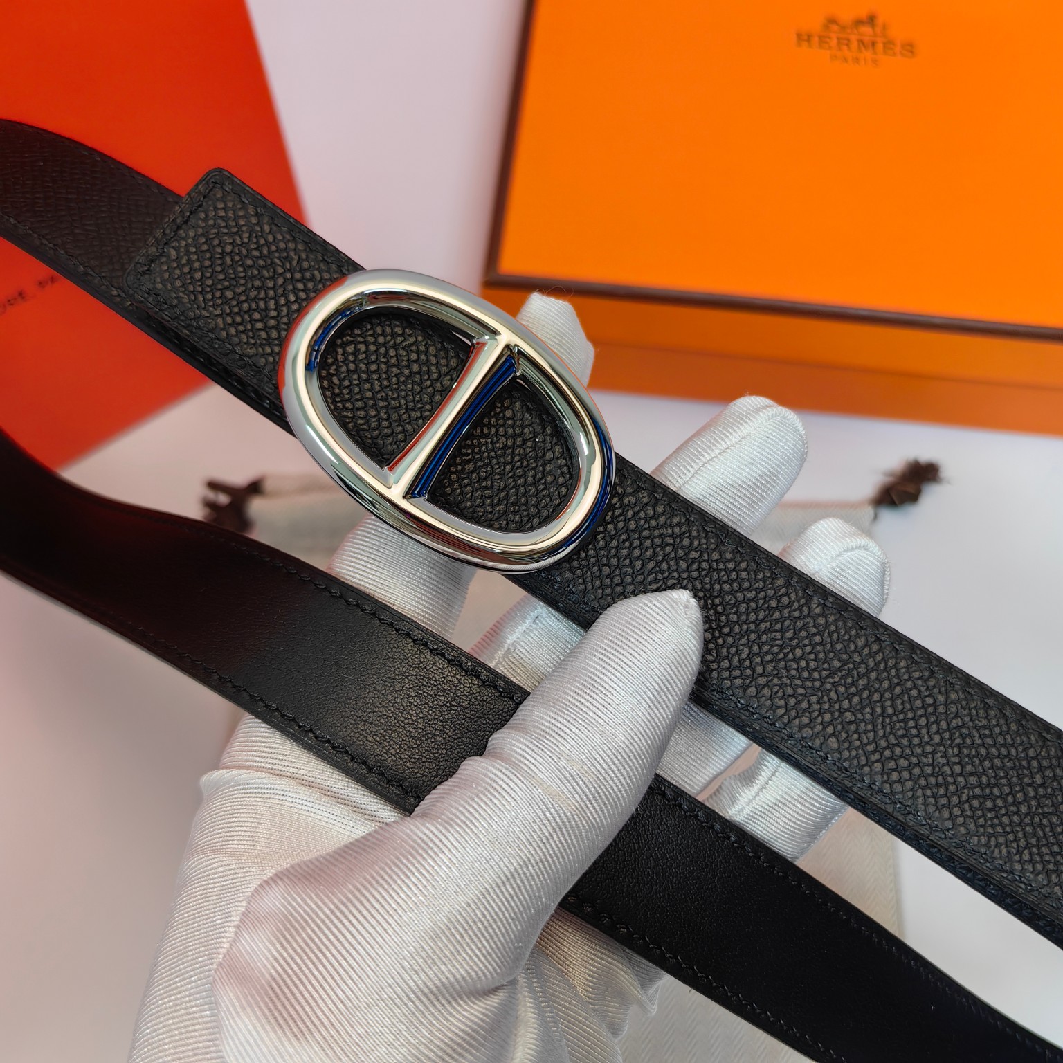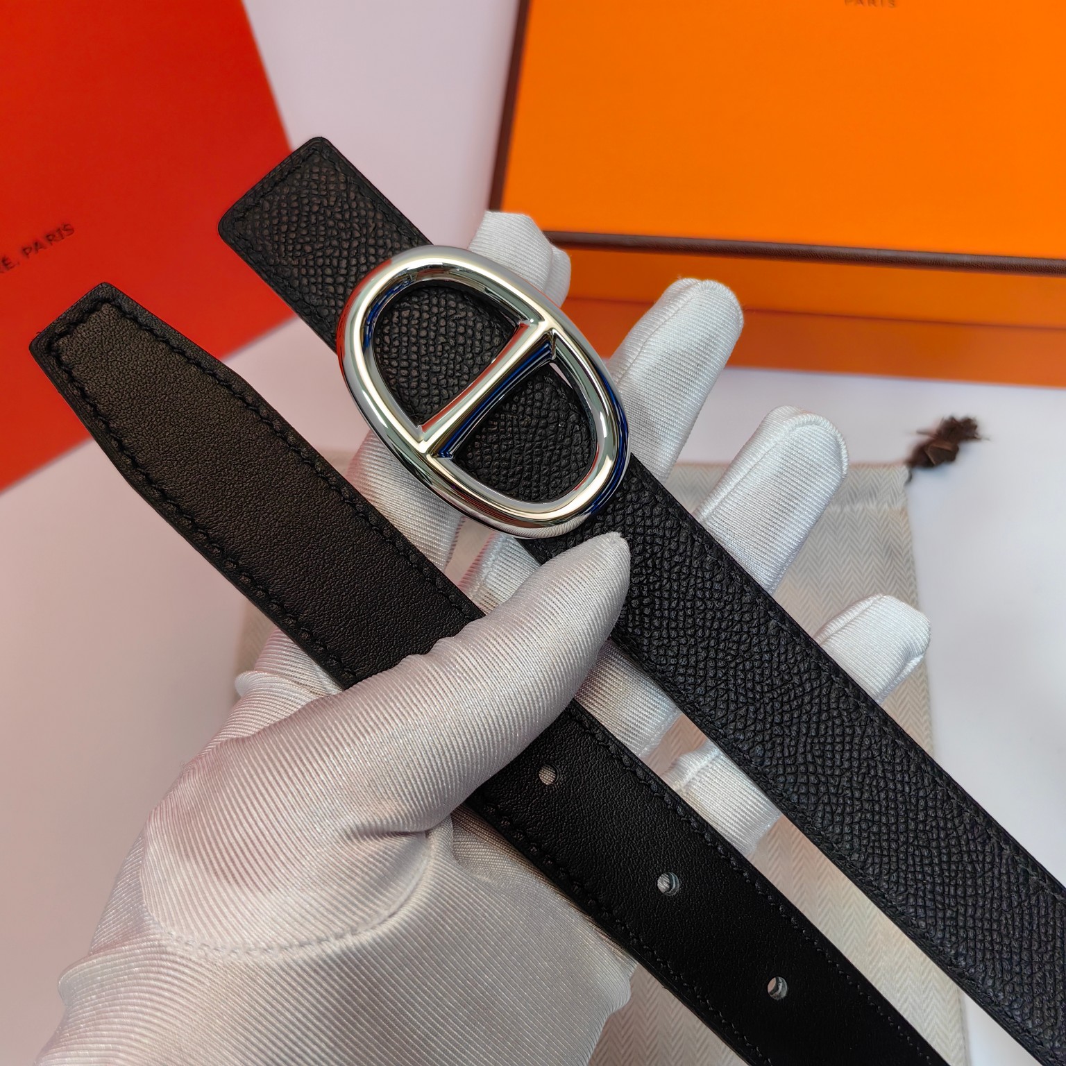 这款皮带是AAAAA 1:1 质量 (非常棒). 使用了和原版一模一样的材料. 商标部分也保持了和爱马仕/Hermes一样. 图片拍摄是实物皮带拍摄, 您所收到的实物保证和我们图片一模一样.