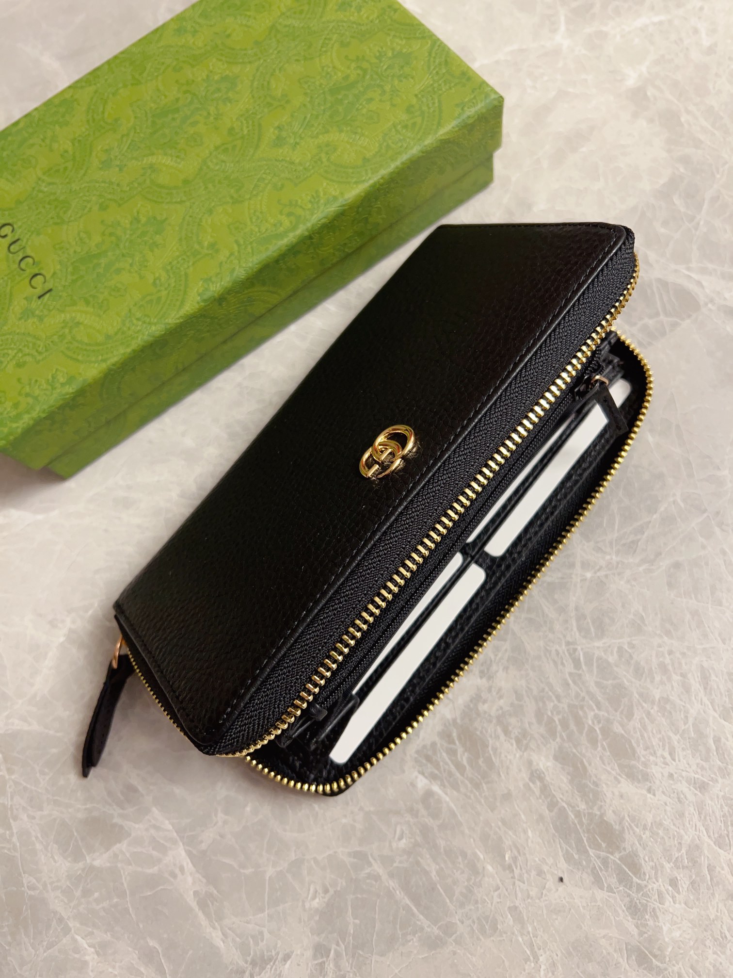 这款钱包是AAAAA 1:1 质量 (非常棒). 使用了和原版一模一样的材料. 商标部分也保持了和古奇/Gucci一样. 图片拍摄是实物钱包拍摄, 您所收到的实物保证和我们图片一模一样.