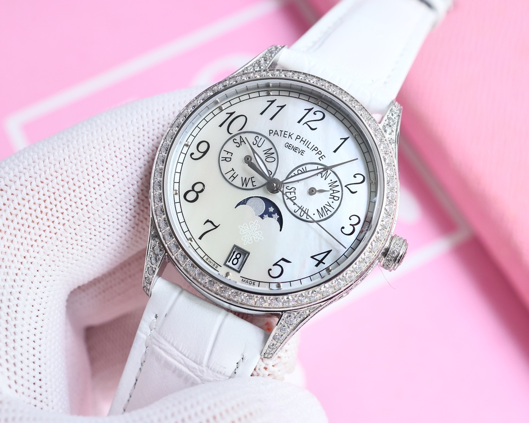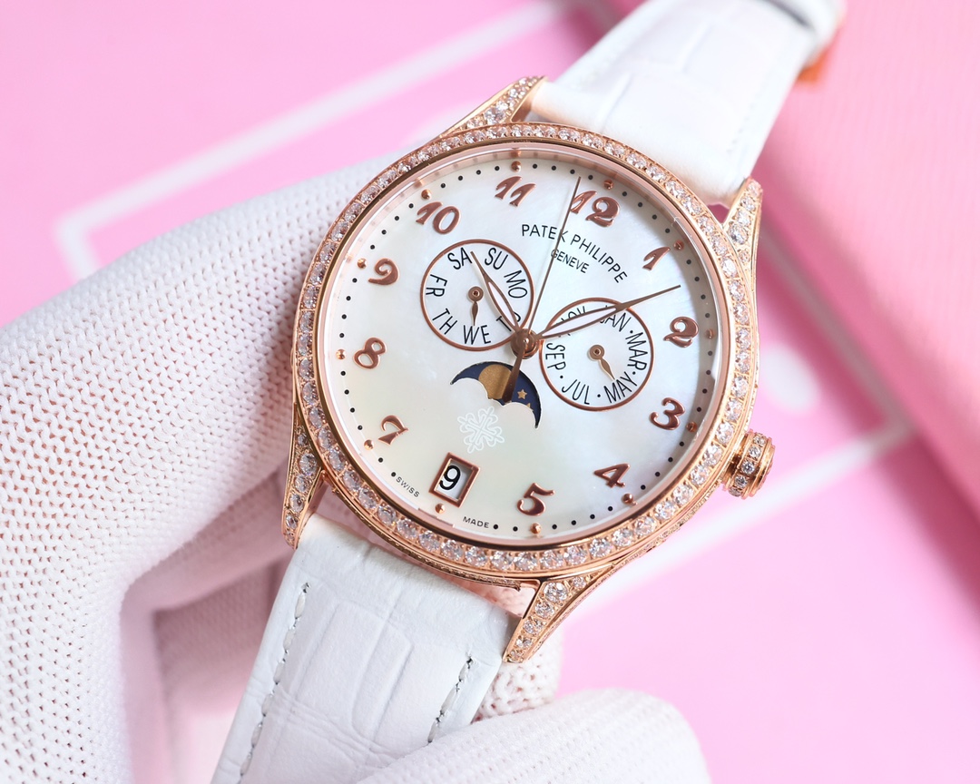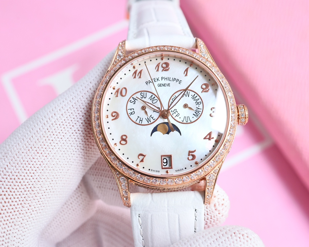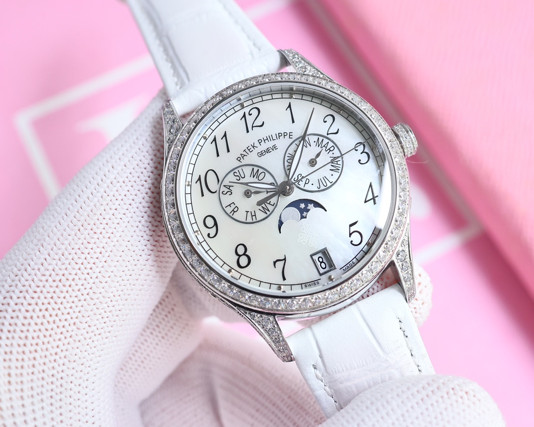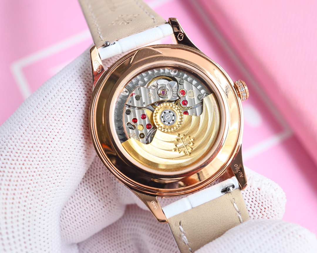 这款手表是AAAAA 1:1 质量 (非常棒). 使用了和原版一模一样的材料. 商标部分也保持了和百达翡丽/Patek Philippe一样. 图片拍摄是实物手表拍摄, 您所收到的实物保证和我们图片一模一样.