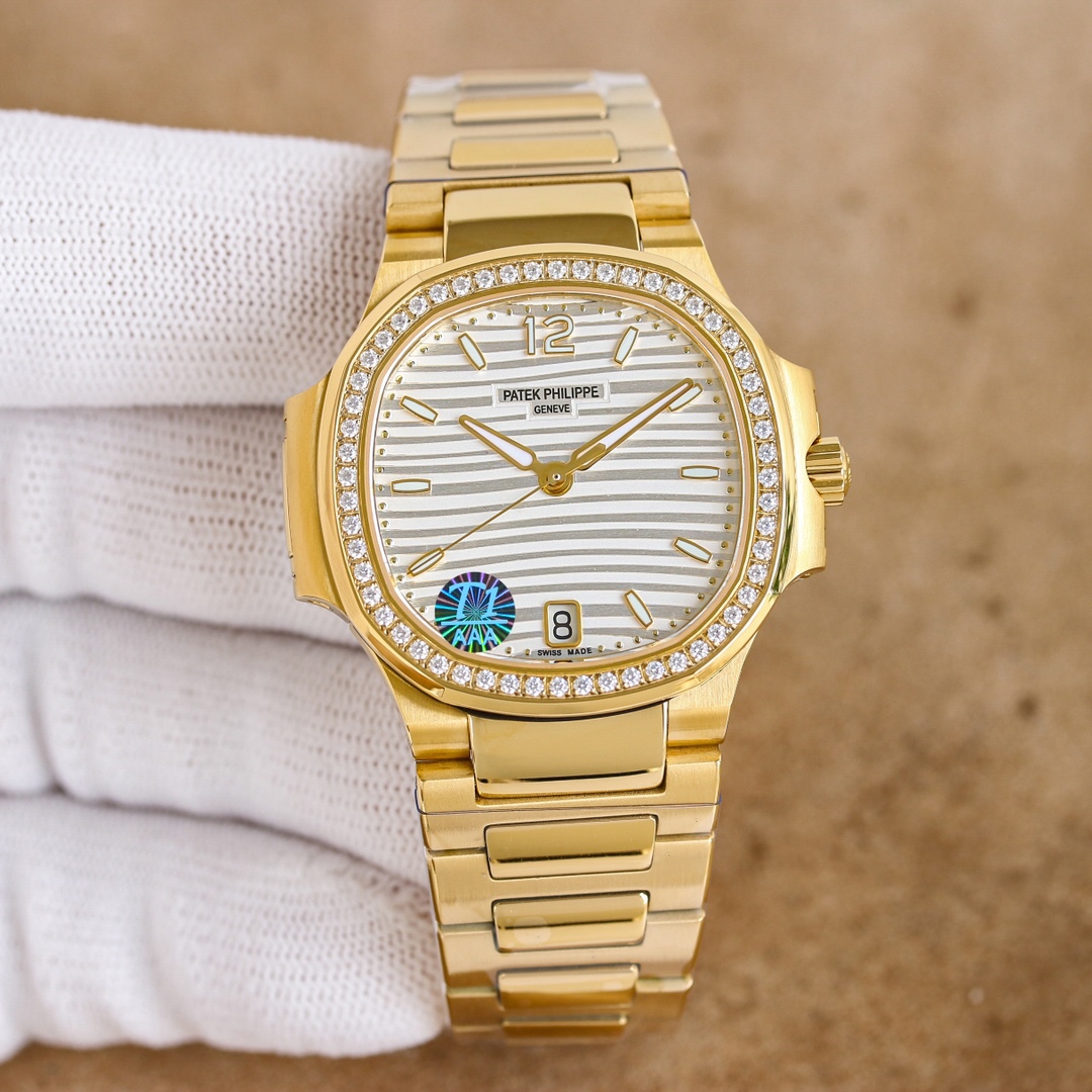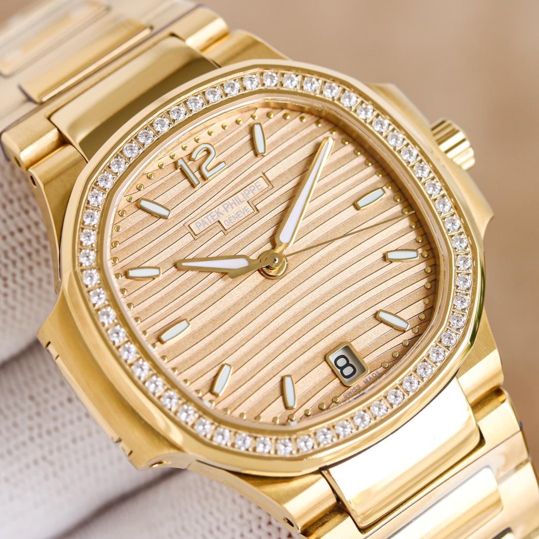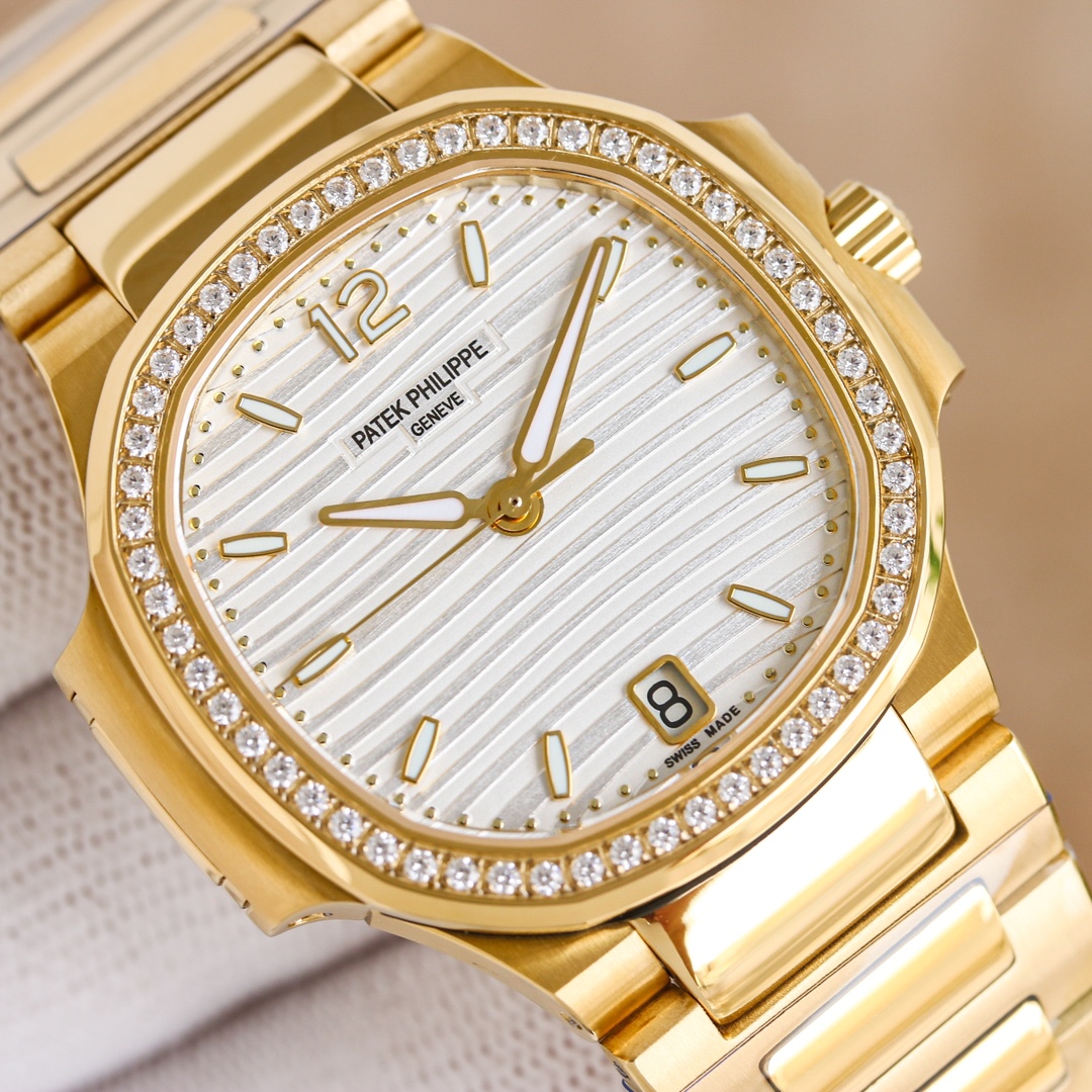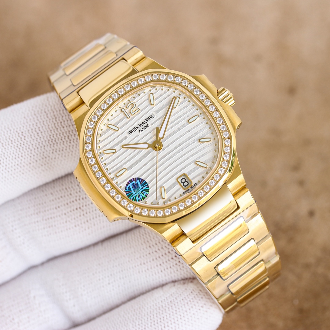 这款手表是AAAAA 1:1 质量 (非常棒). 使用了和原版一模一样的材料. 商标部分也保持了和百达翡丽/Patek Philippe一样. 图片拍摄是实物手表拍摄, 您所收到的实物保证和我们图片一模一样.
