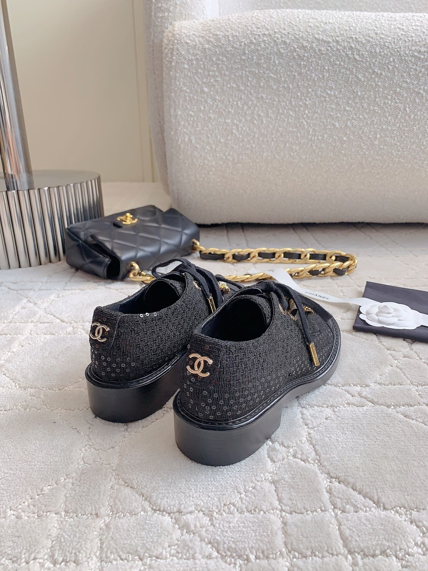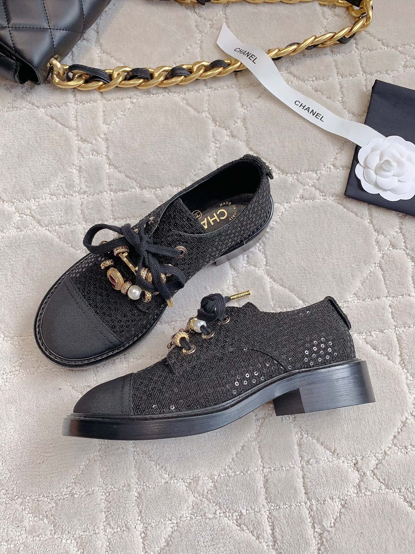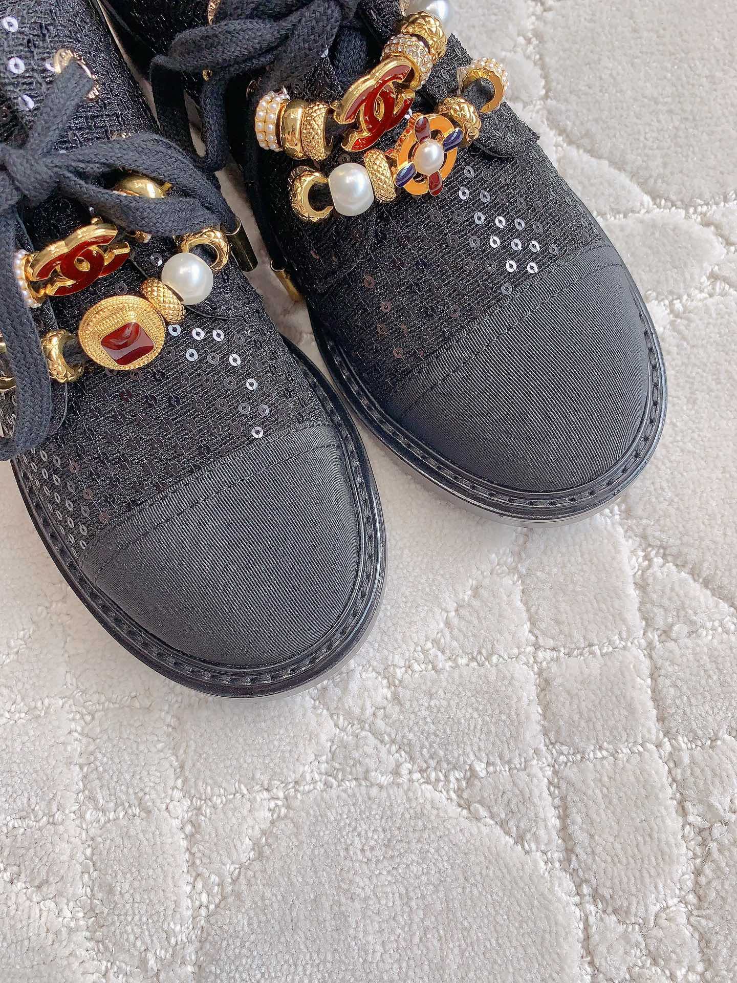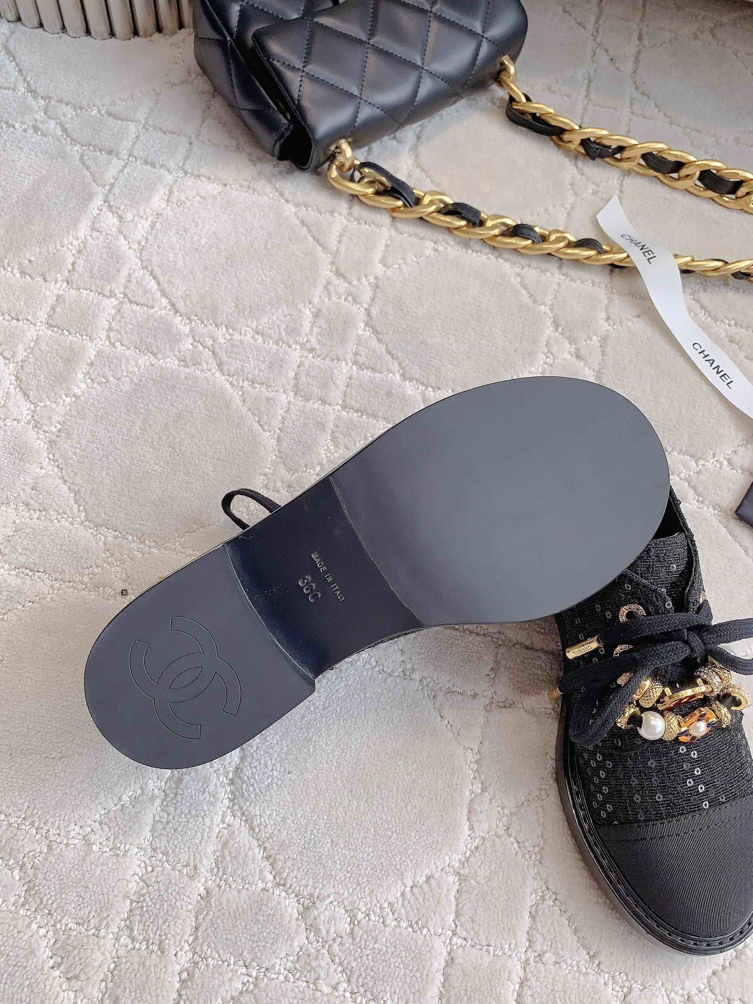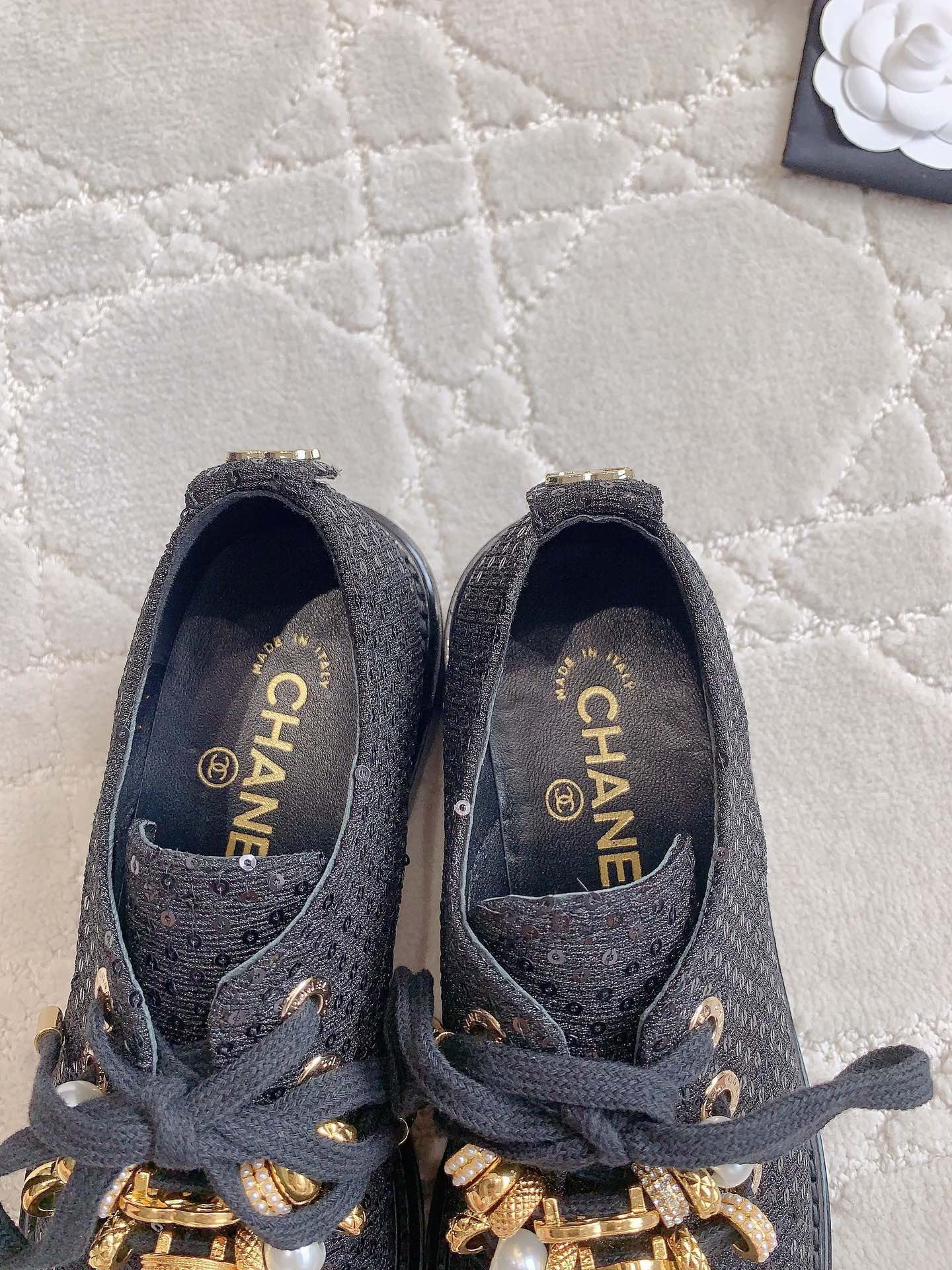 这款鞋子是AAAAA 1:1 质量 (非常棒). 使用了和原版一模一样的材料. 商标部分也保持了和香奈儿/Chanel一样. 图片拍摄是实物鞋子拍摄, 您所收到的实物保证和我们图片一模一样.