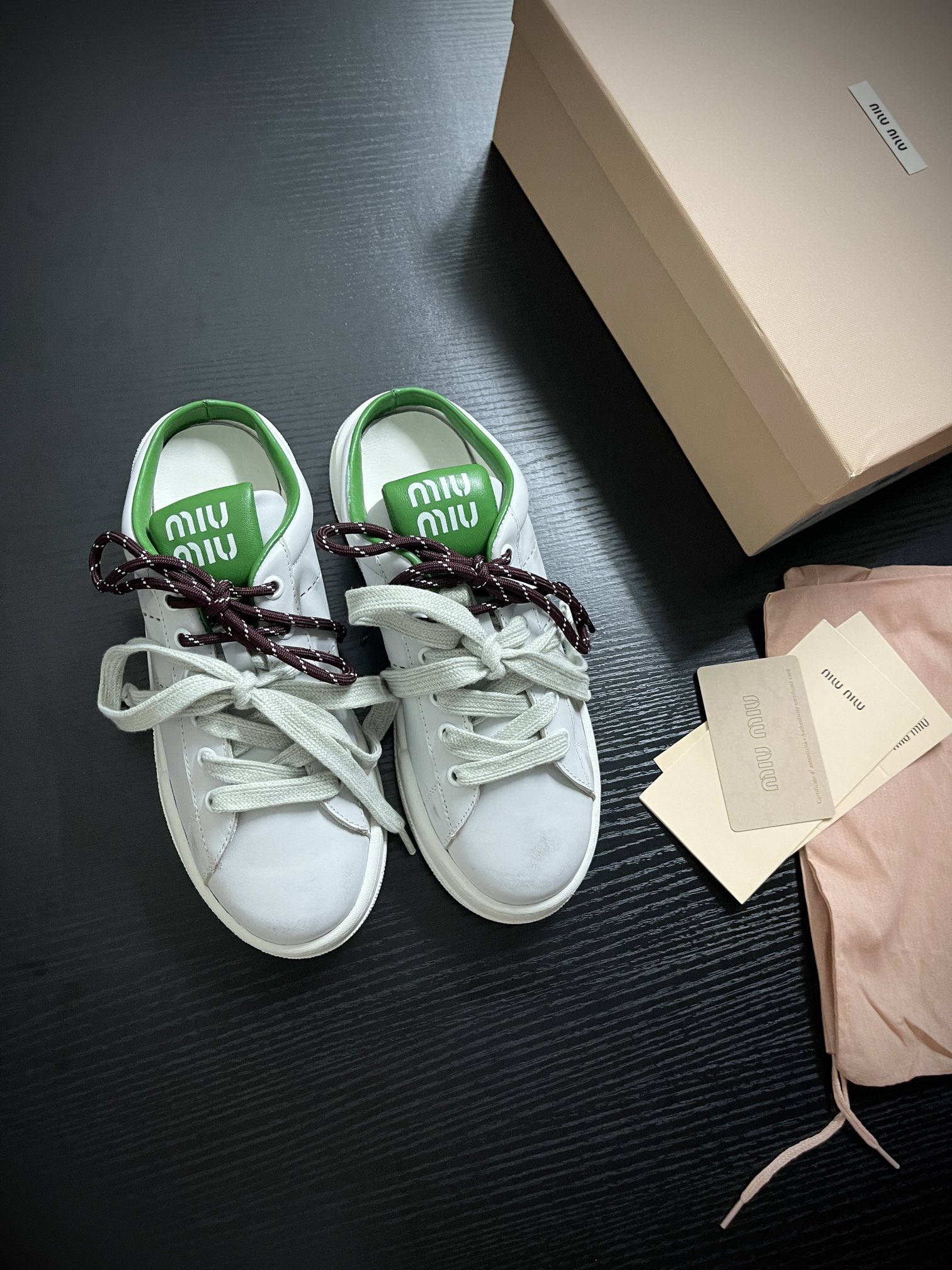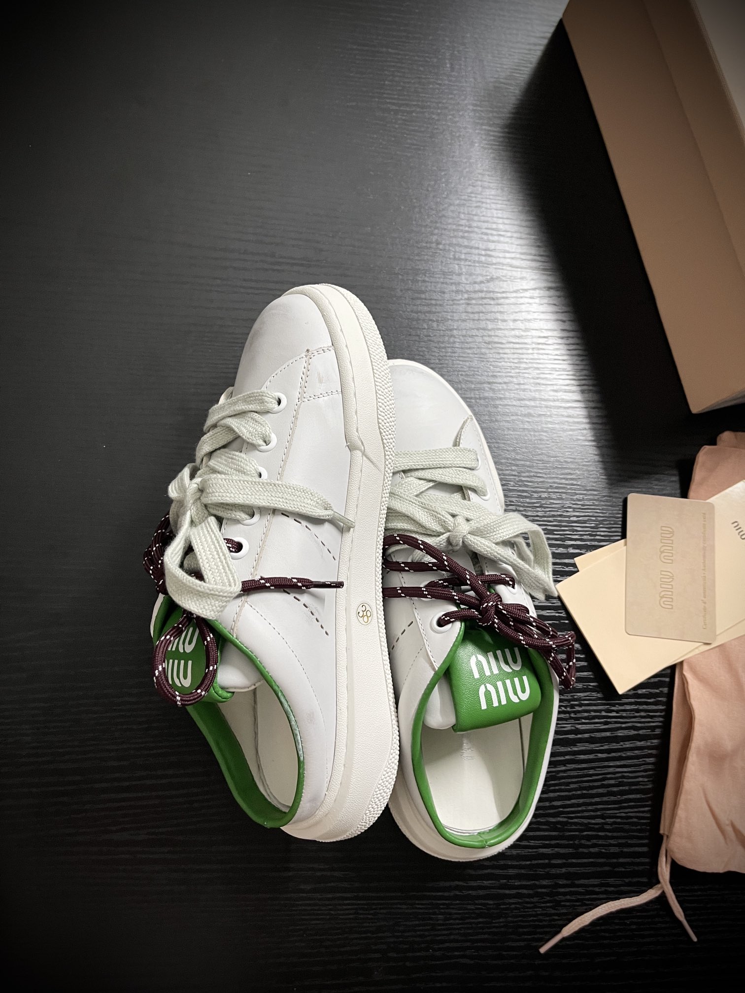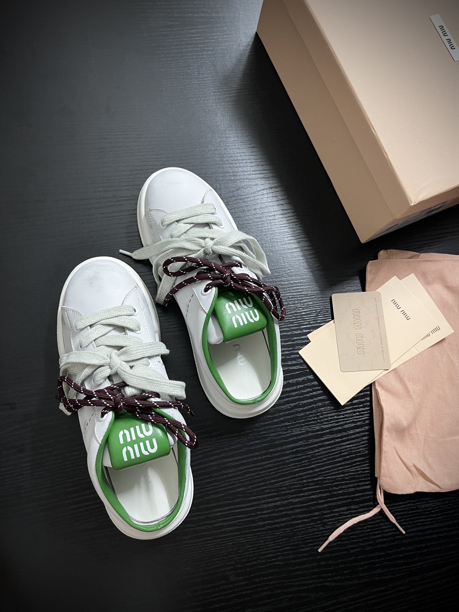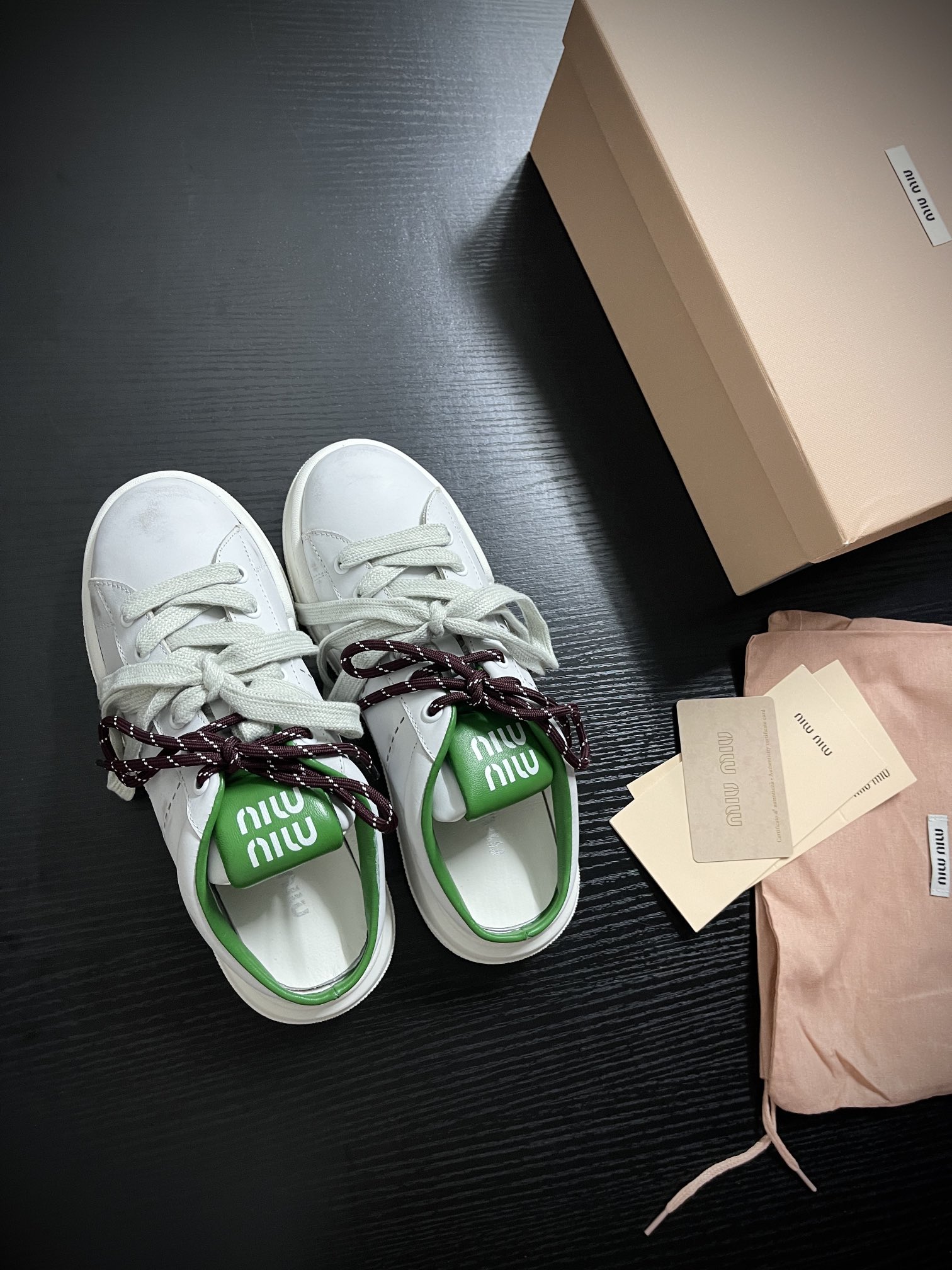 这款鞋子是AAAAA 1:1 质量 (非常棒). 使用了和原版一模一样的材料. 商标部分也保持了和缪缪/Miu Miu一样. 图片拍摄是实物鞋子拍摄, 您所收到的实物保证和我们图片一模一样.
