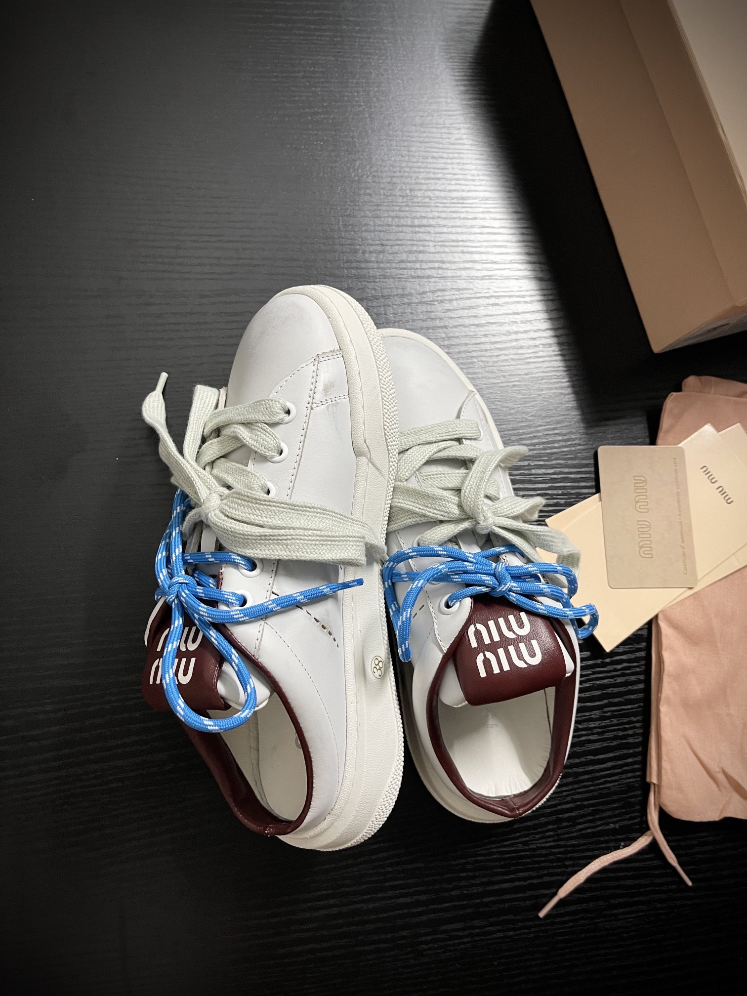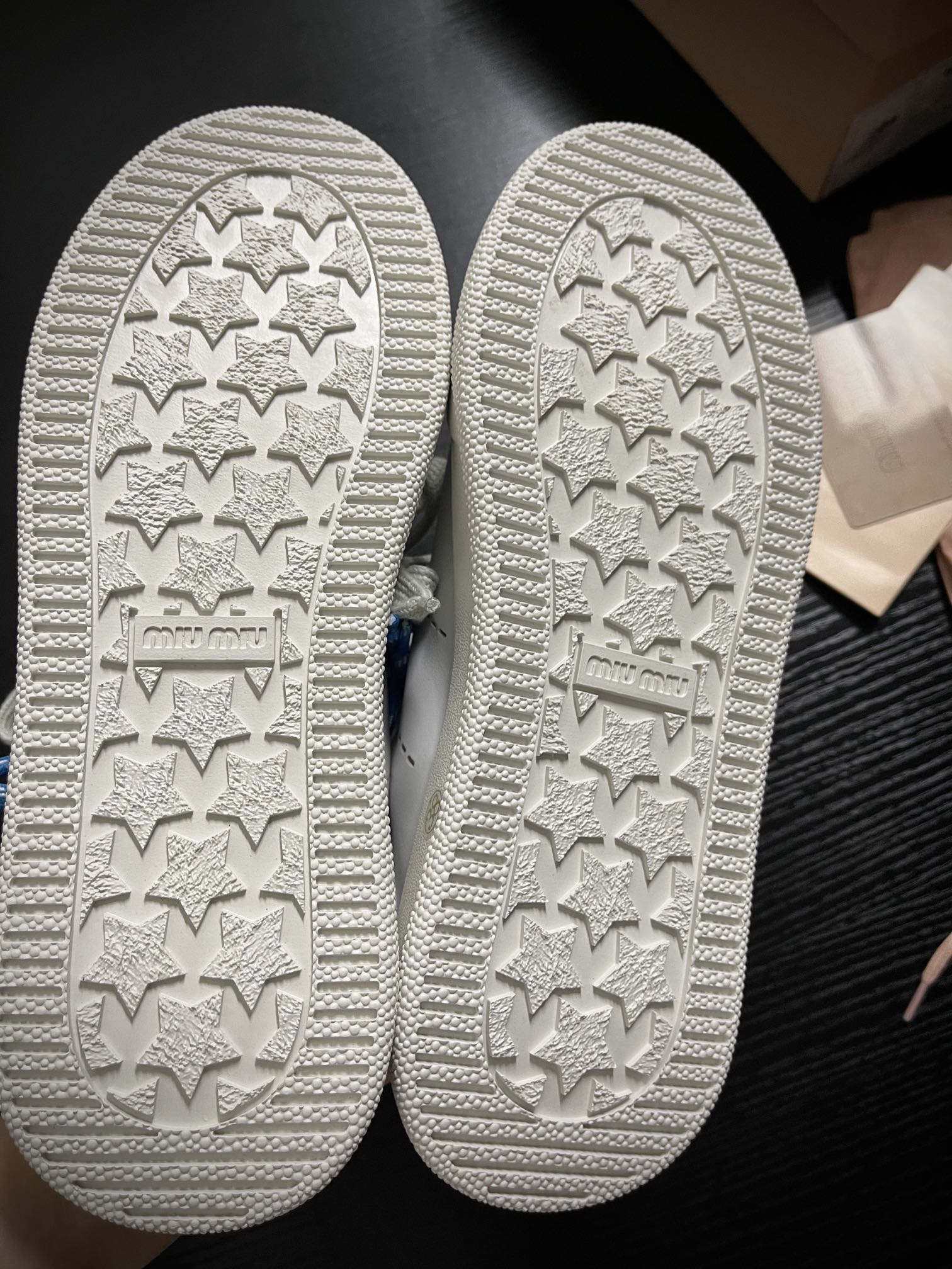 这款鞋子是AAAAA 1:1 质量 (非常棒). 使用了和原版一模一样的材料. 商标部分也保持了和缪缪/Miu Miu一样. 图片拍摄是实物鞋子拍摄, 您所收到的实物保证和我们图片一模一样.