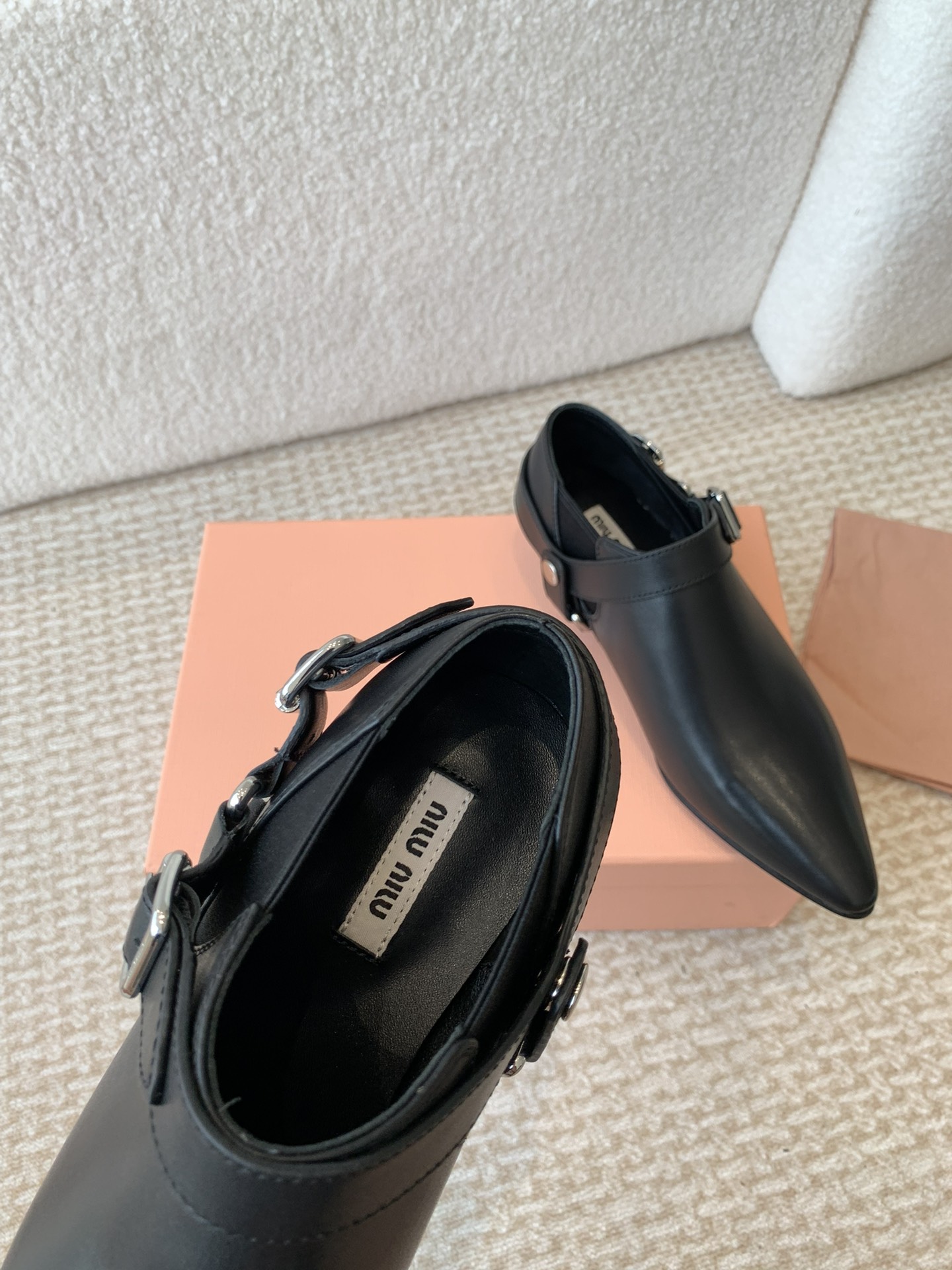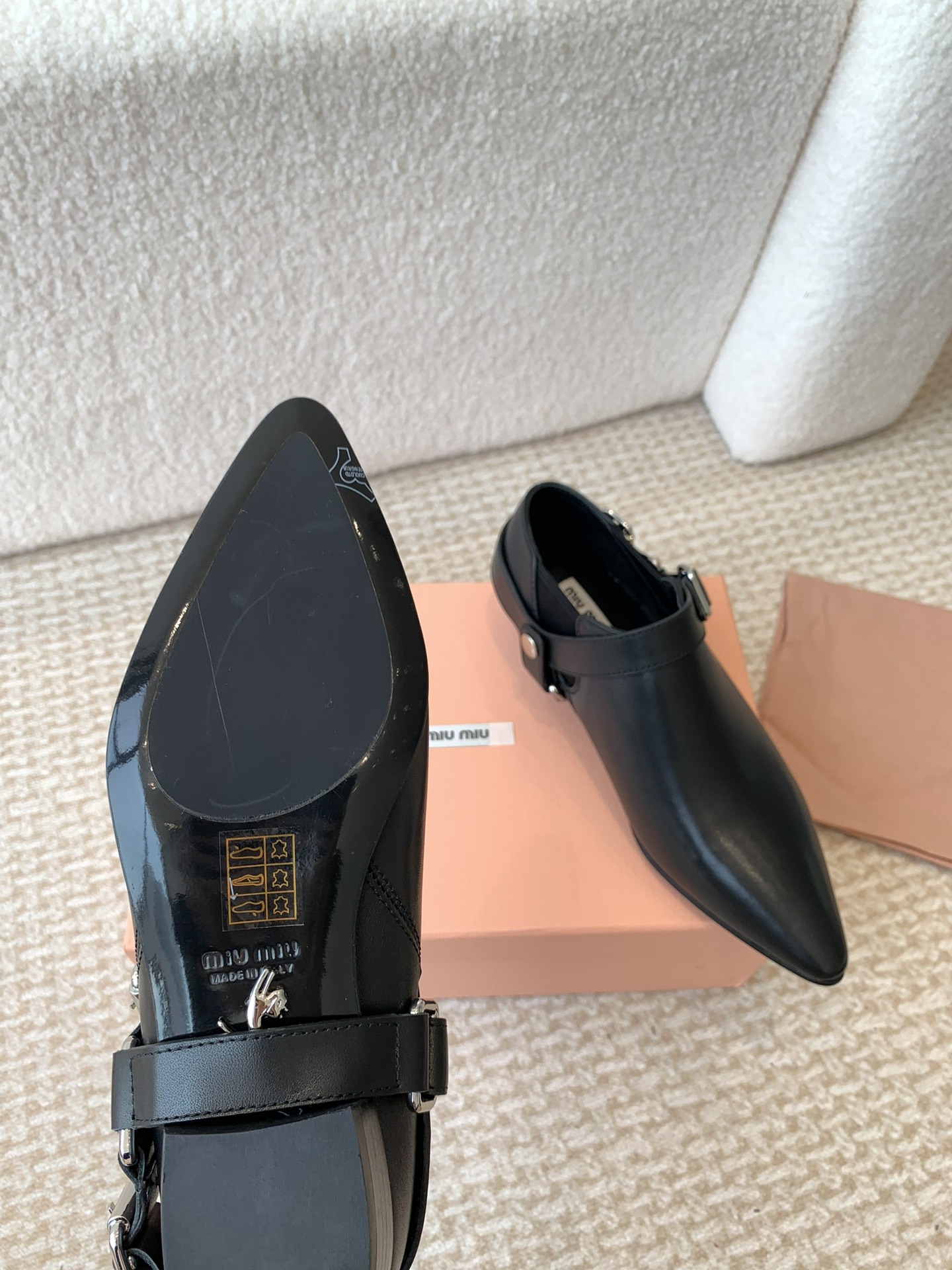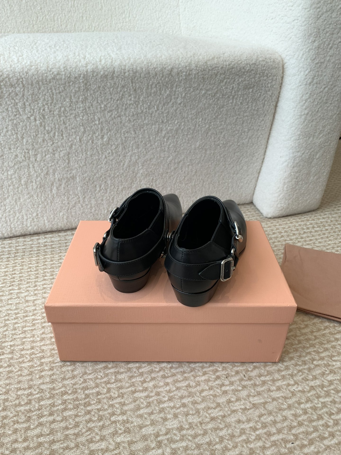 这款鞋子是AAAAA 1:1 质量 (非常棒). 使用了和原版一模一样的材料. 商标部分也保持了和缪缪/Miu Miu一样. 图片拍摄是实物鞋子拍摄, 您所收到的实物保证和我们图片一模一样.