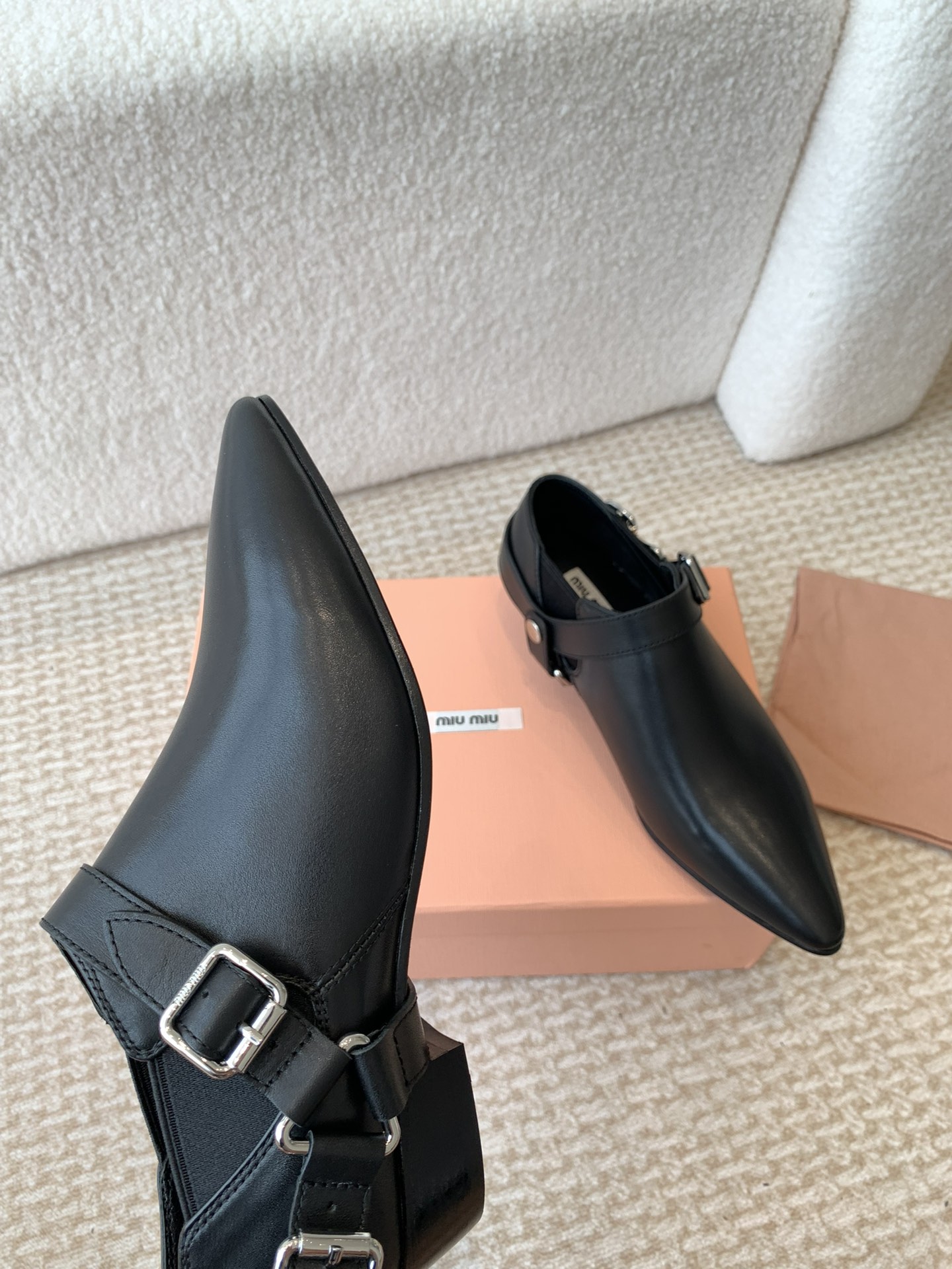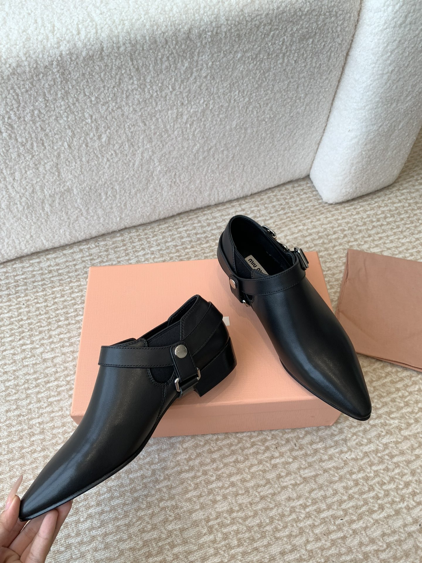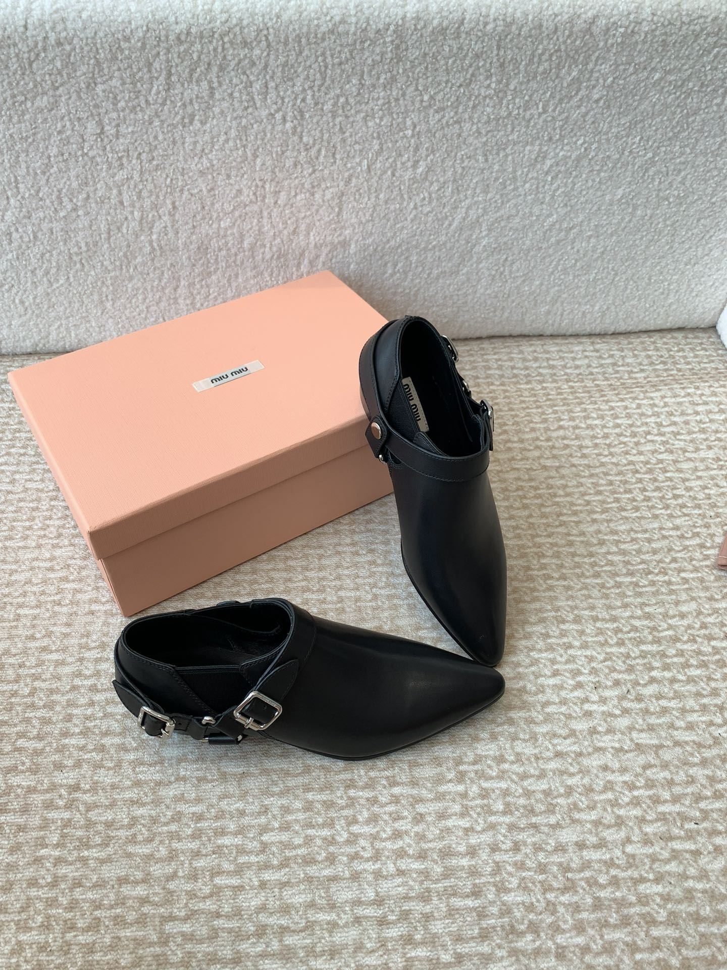 这款鞋子是AAAAA 1:1 质量 (非常棒). 使用了和原版一模一样的材料. 商标部分也保持了和缪缪/Miu Miu一样. 图片拍摄是实物鞋子拍摄, 您所收到的实物保证和我们图片一模一样.
