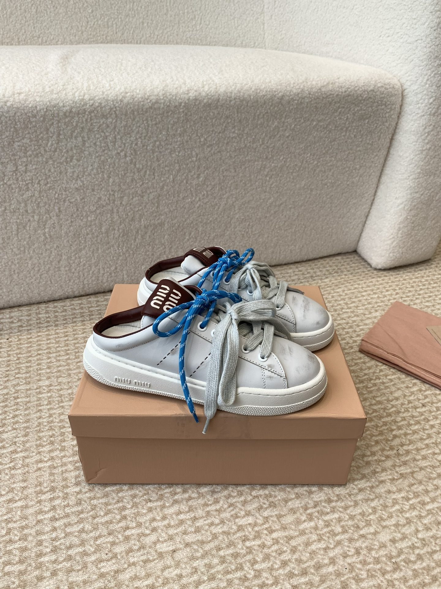 这款鞋子是AAAAA 1:1 质量 (非常棒). 使用了和原版一模一样的材料. 商标部分也保持了和缪缪/Miu Miu一样. 图片拍摄是实物鞋子拍摄, 您所收到的实物保证和我们图片一模一样.