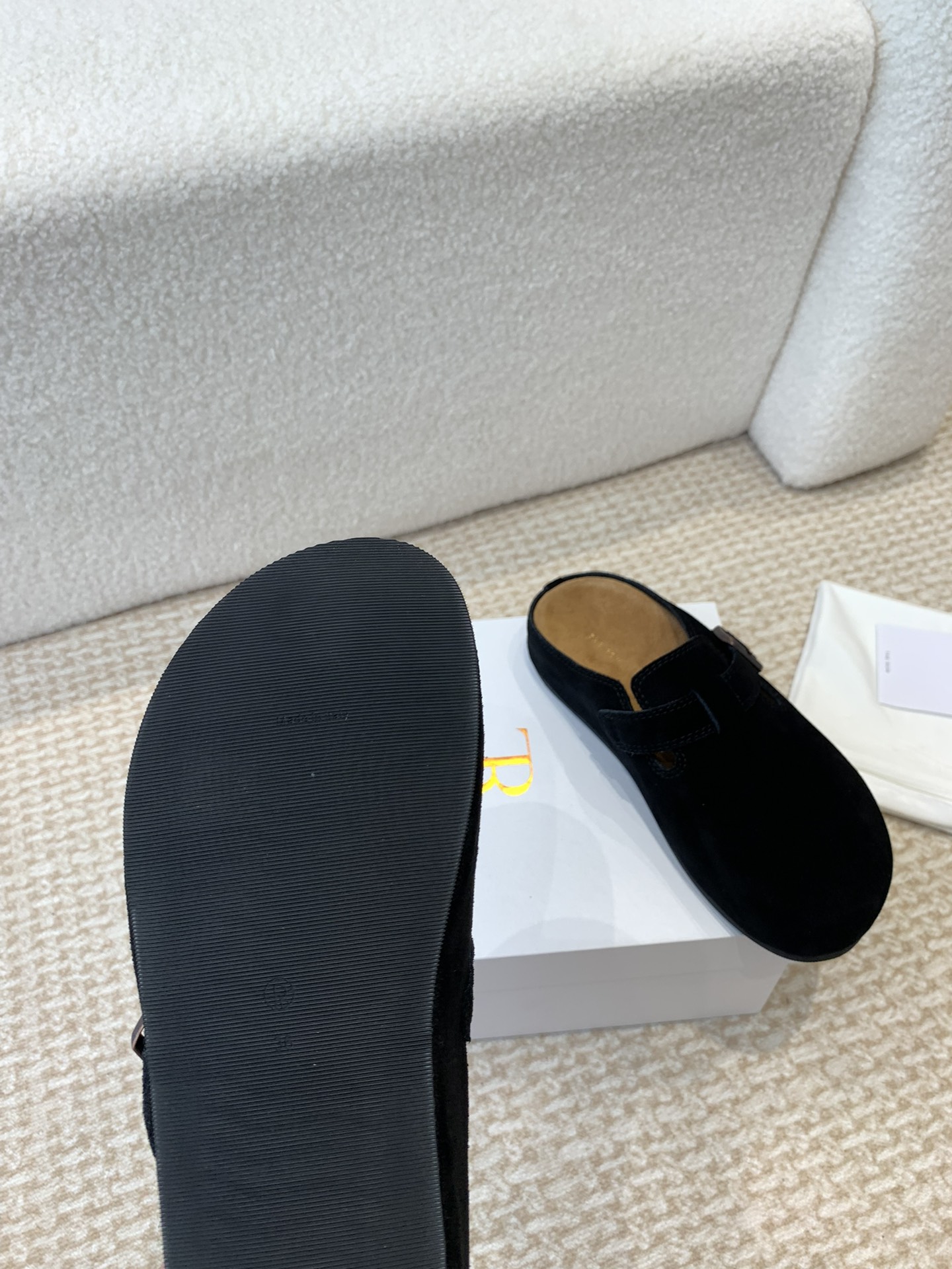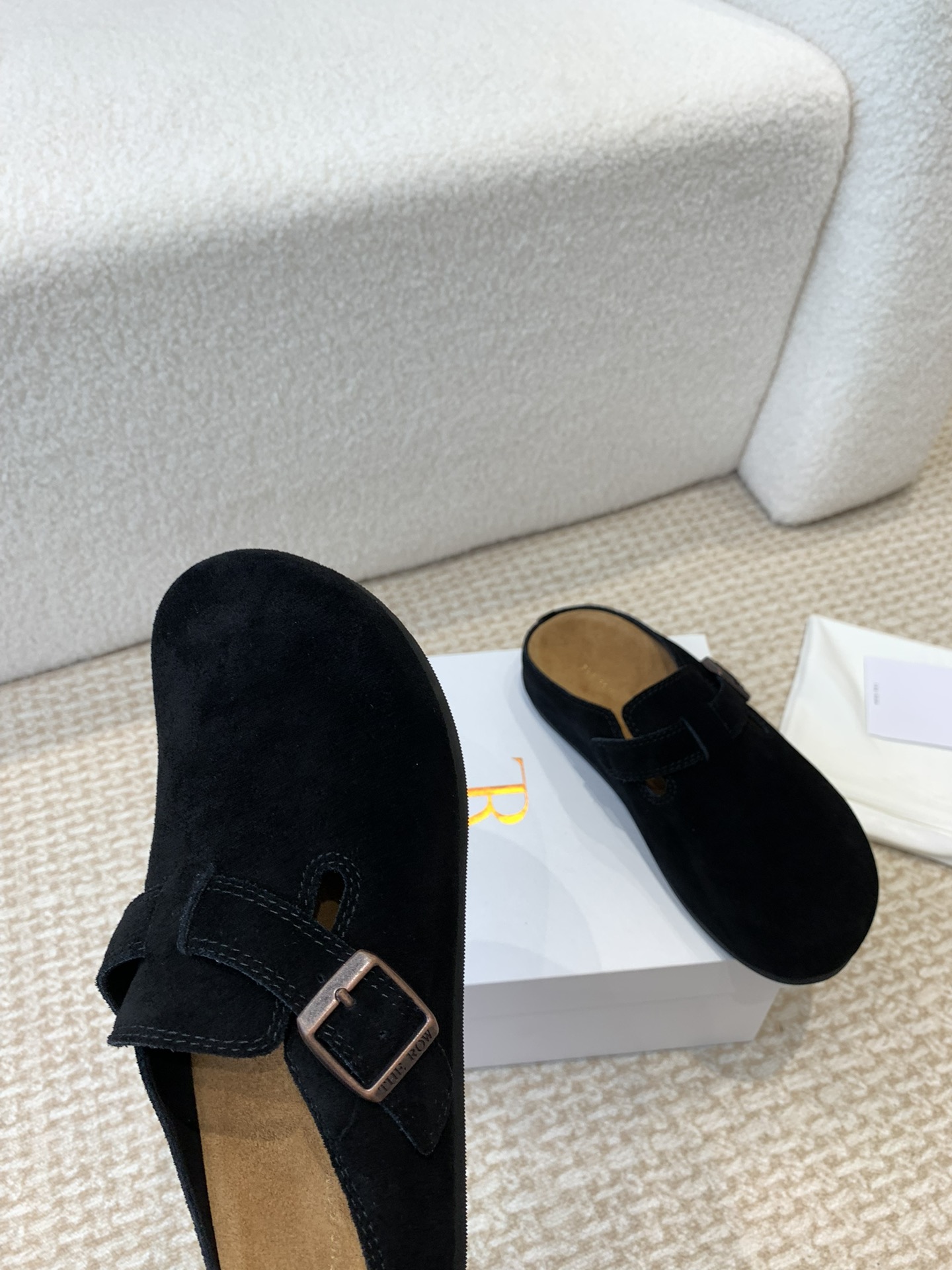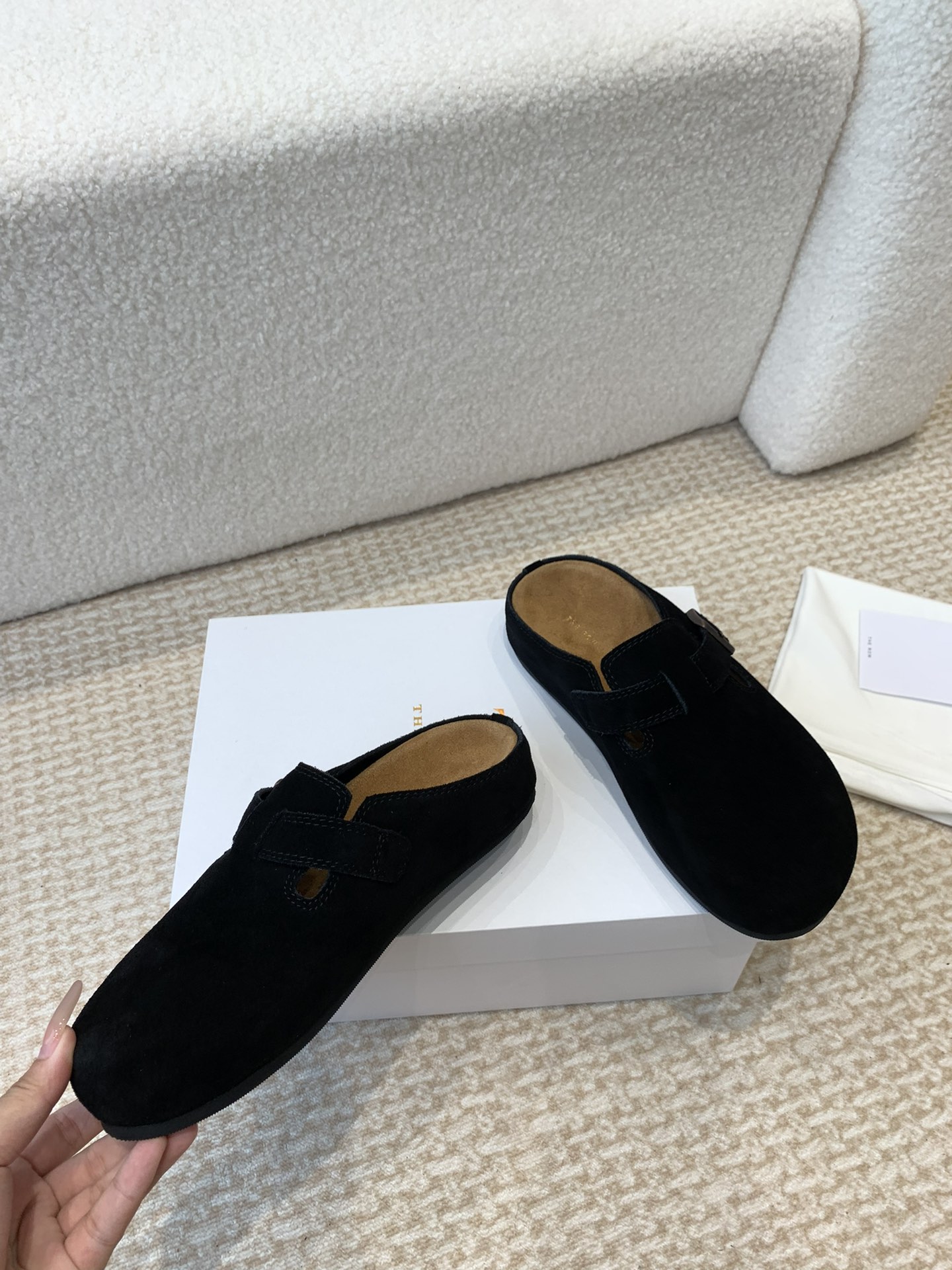 这款鞋子是AAAAA 1:1 质量 (非常棒). 使用了和原版一模一样的材料. 商标部分也保持了和The Row一样. 图片拍摄是实物鞋子拍摄, 您所收到的实物保证和我们图片一模一样.
