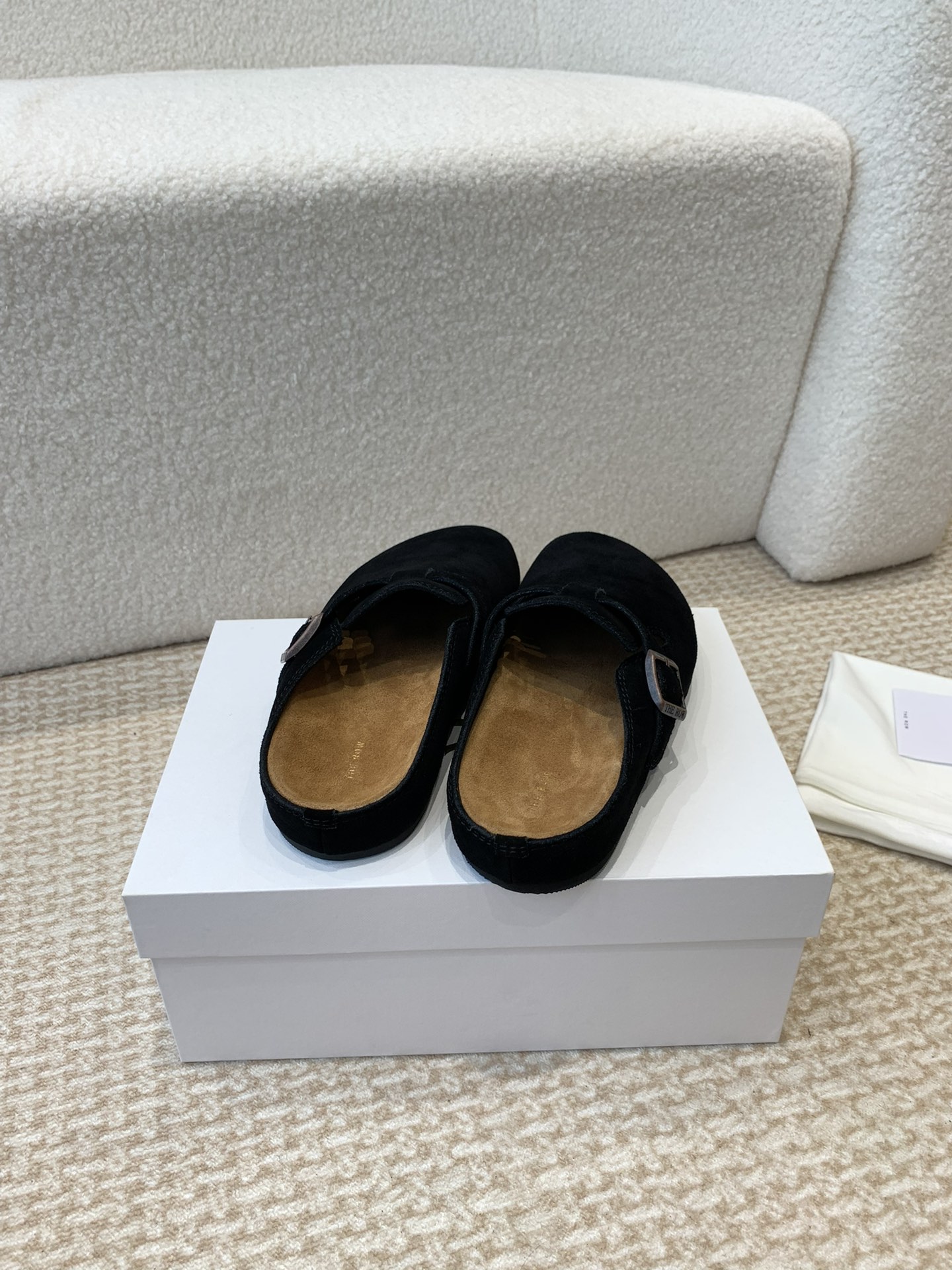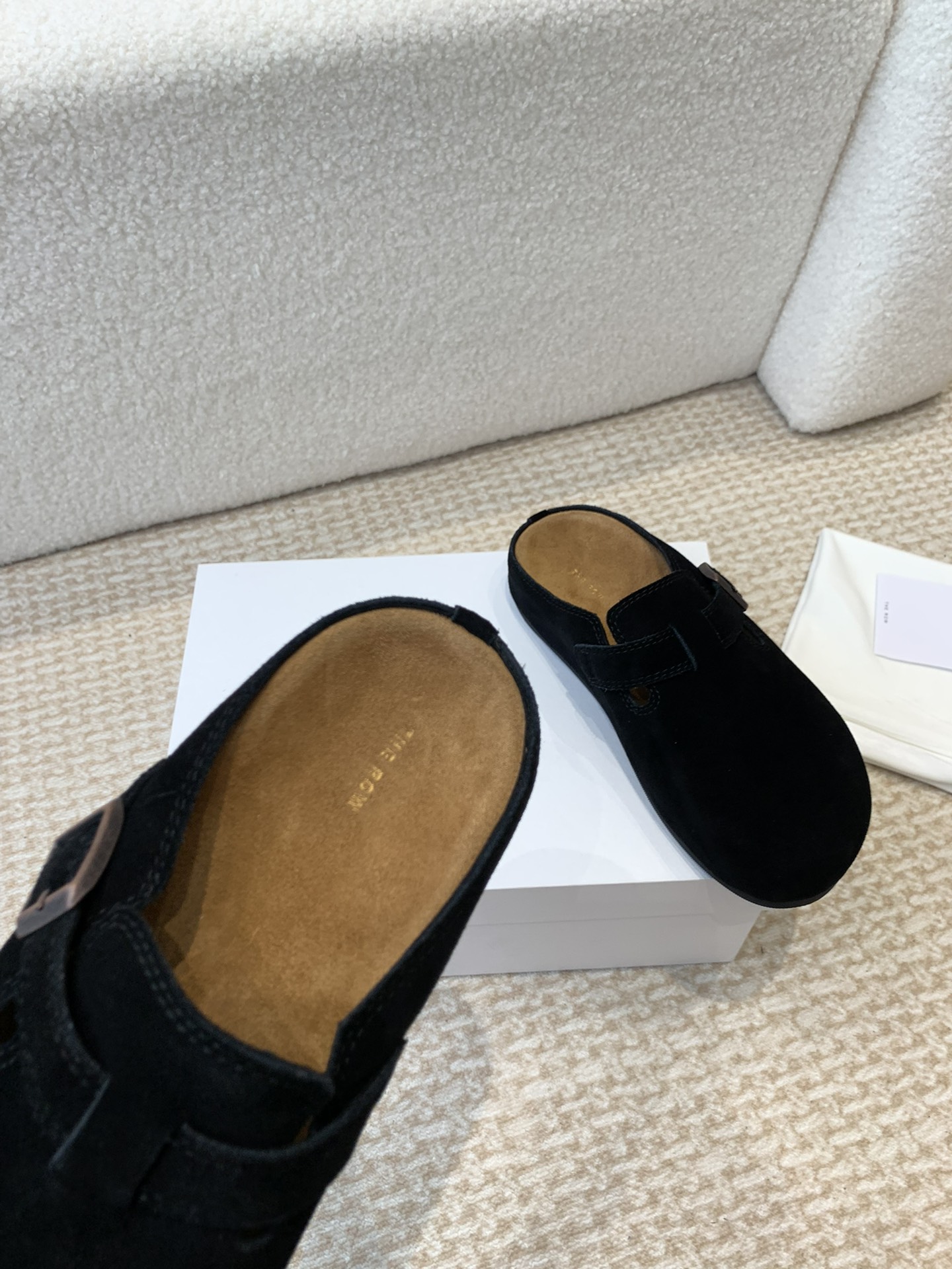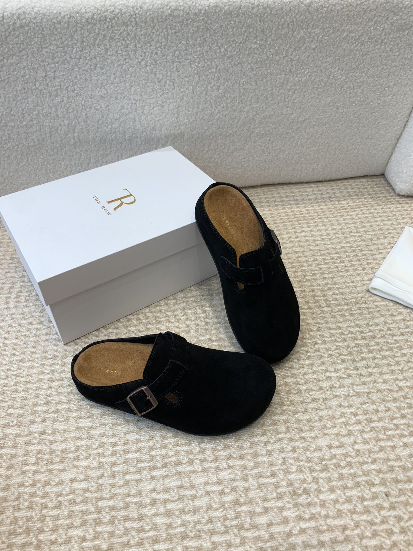 这款鞋子是AAAAA 1:1 质量 (非常棒). 使用了和原版一模一样的材料. 商标部分也保持了和The Row一样. 图片拍摄是实物鞋子拍摄, 您所收到的实物保证和我们图片一模一样.