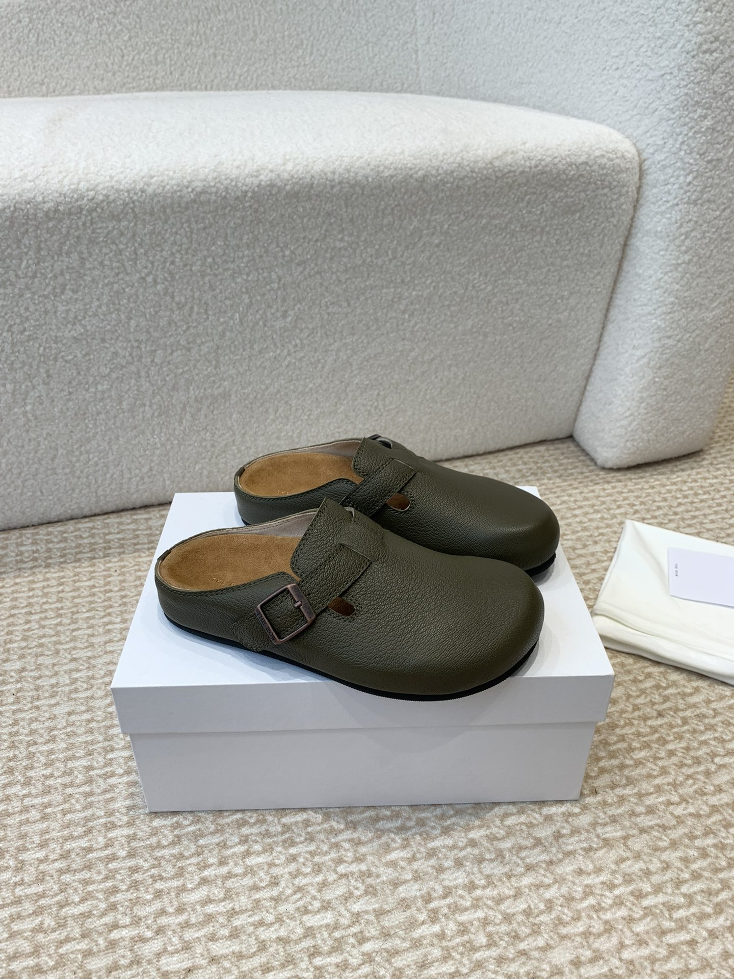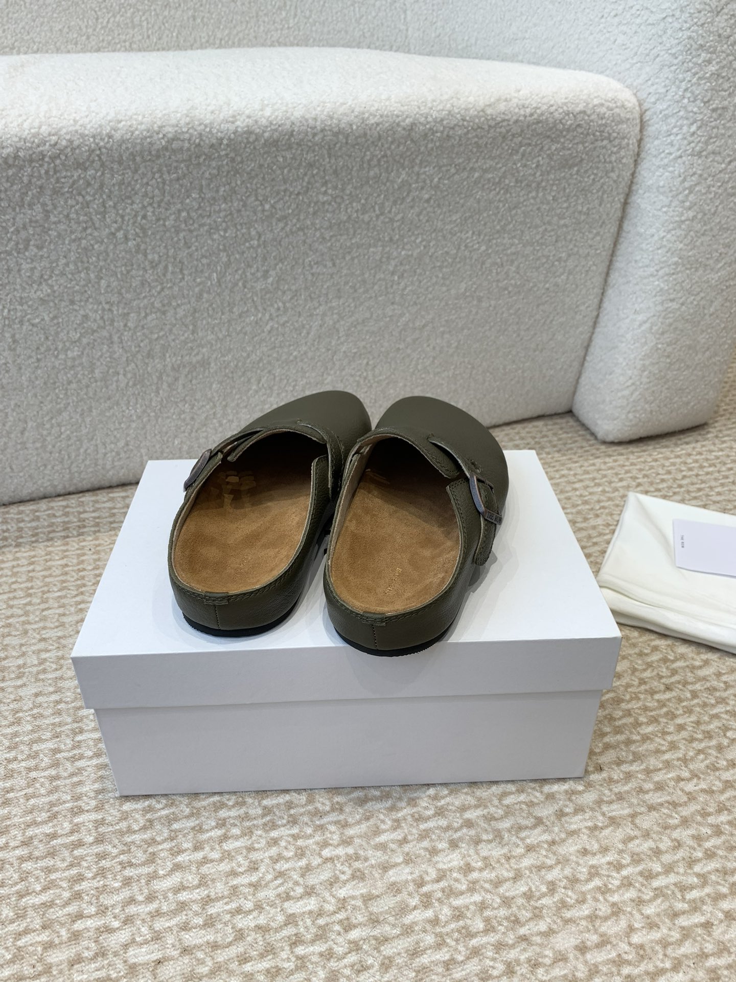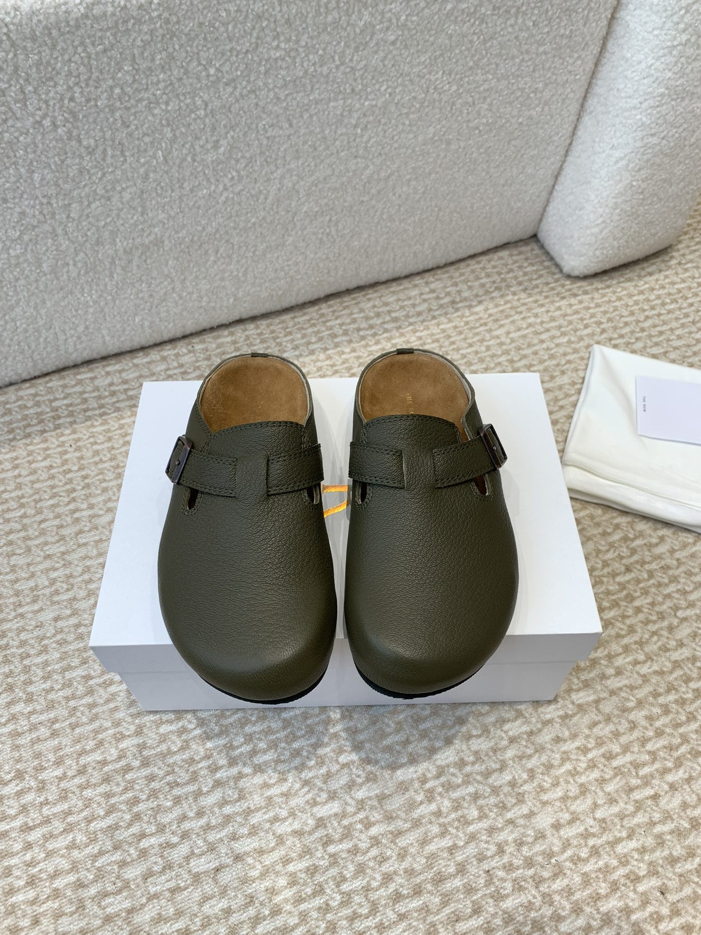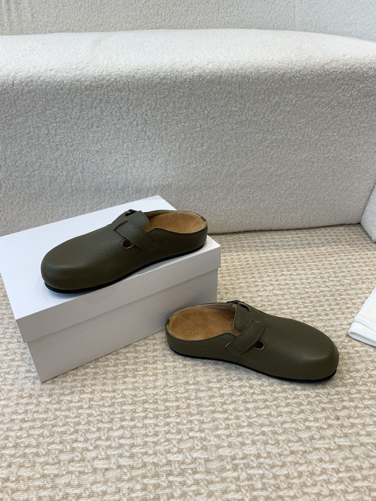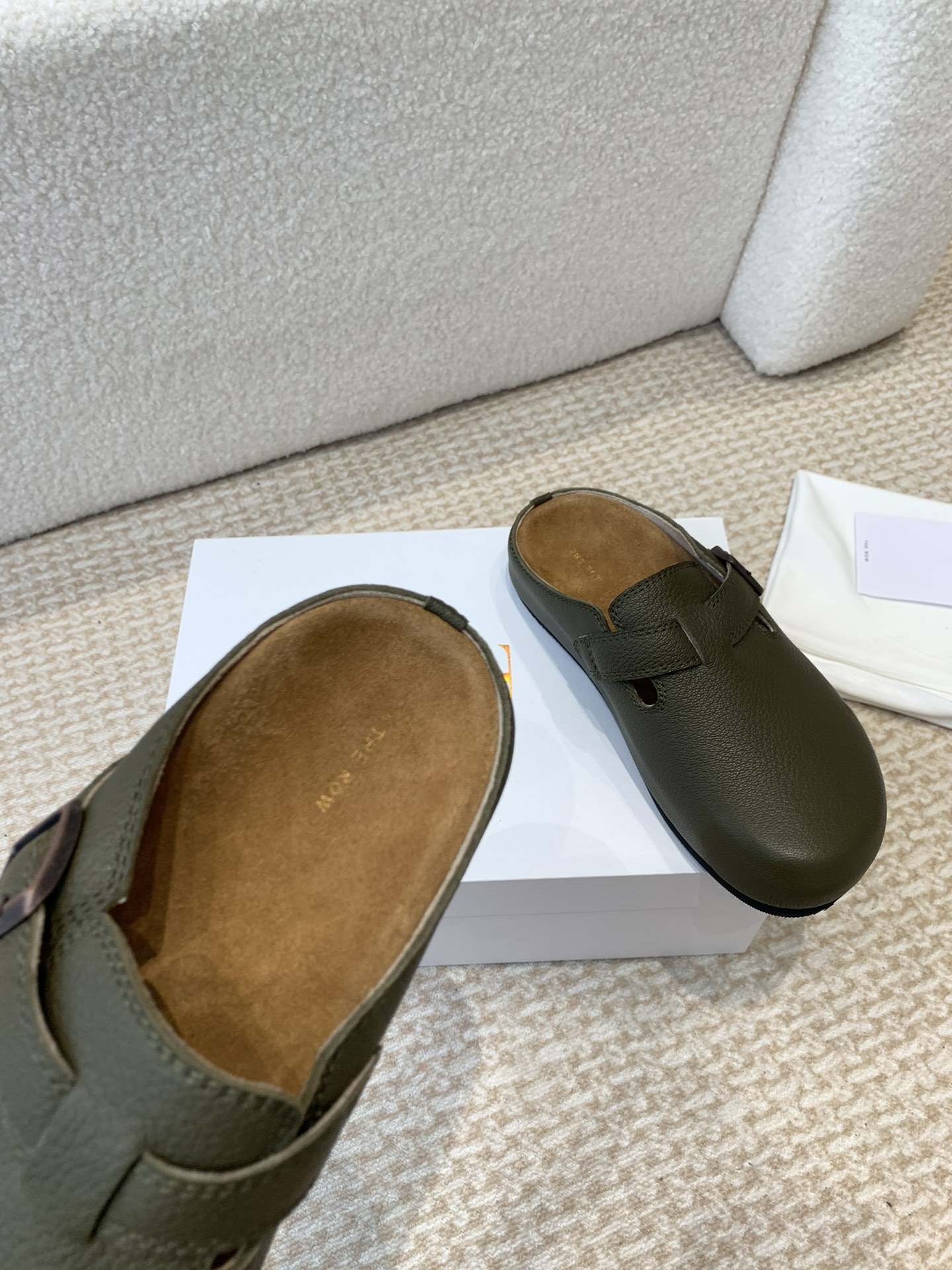 这款鞋子是AAAAA 1:1 质量 (非常棒). 使用了和原版一模一样的材料. 商标部分也保持了和The Row一样. 图片拍摄是实物鞋子拍摄, 您所收到的实物保证和我们图片一模一样.