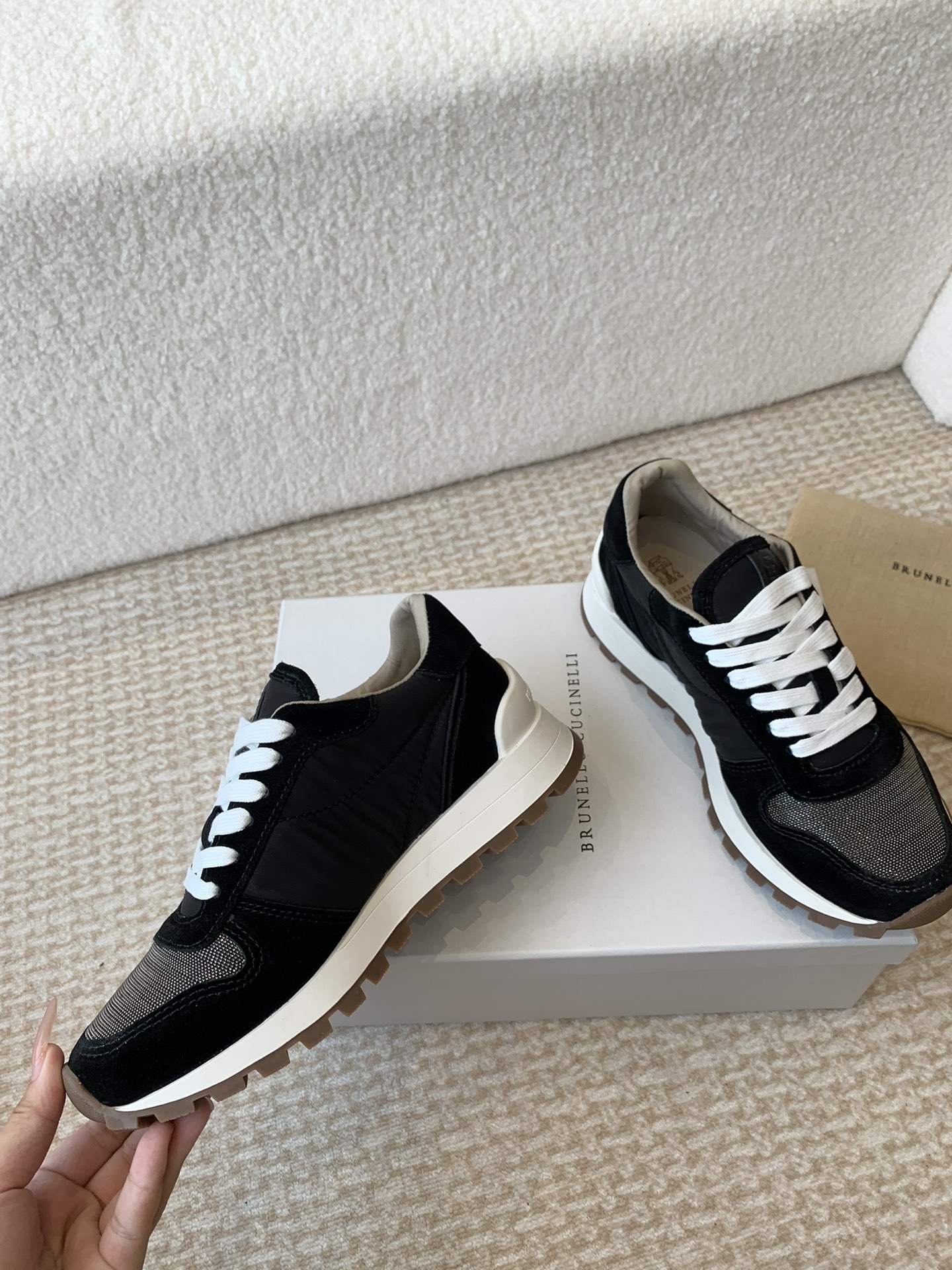 这款鞋子是AAAAA 1:1 质量 (非常棒). 使用了和原版一模一样的材料. 商标部分也保持了和Brunello Cucinelli一样. 图片拍摄是实物鞋子拍摄, 您所收到的实物保证和我们图片一模一样.