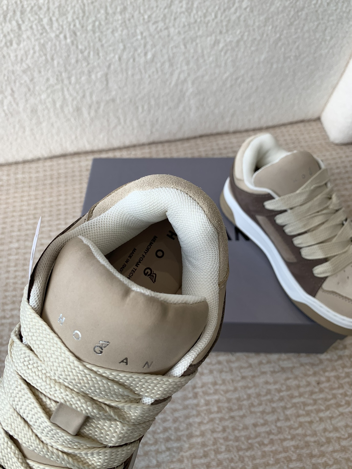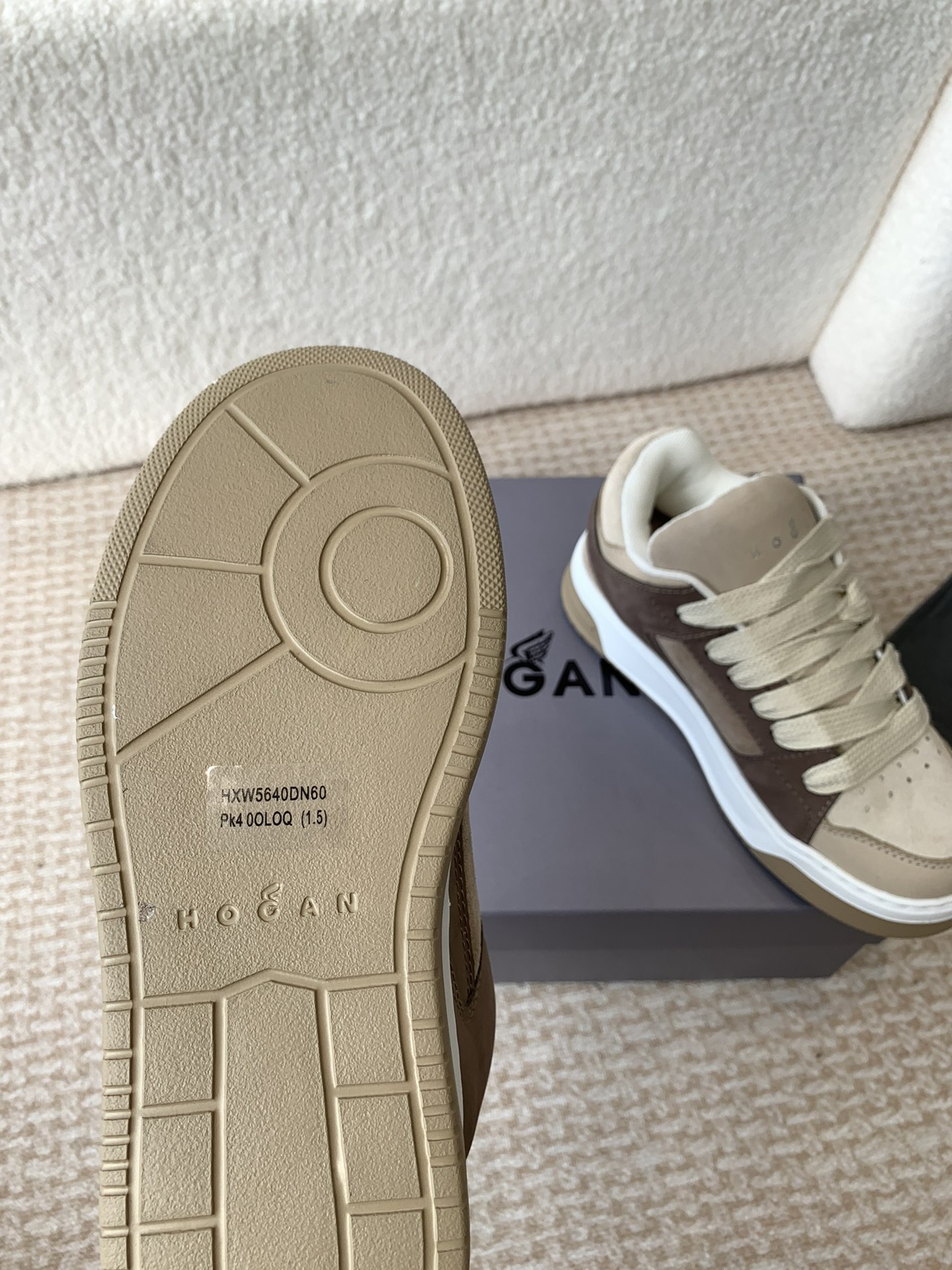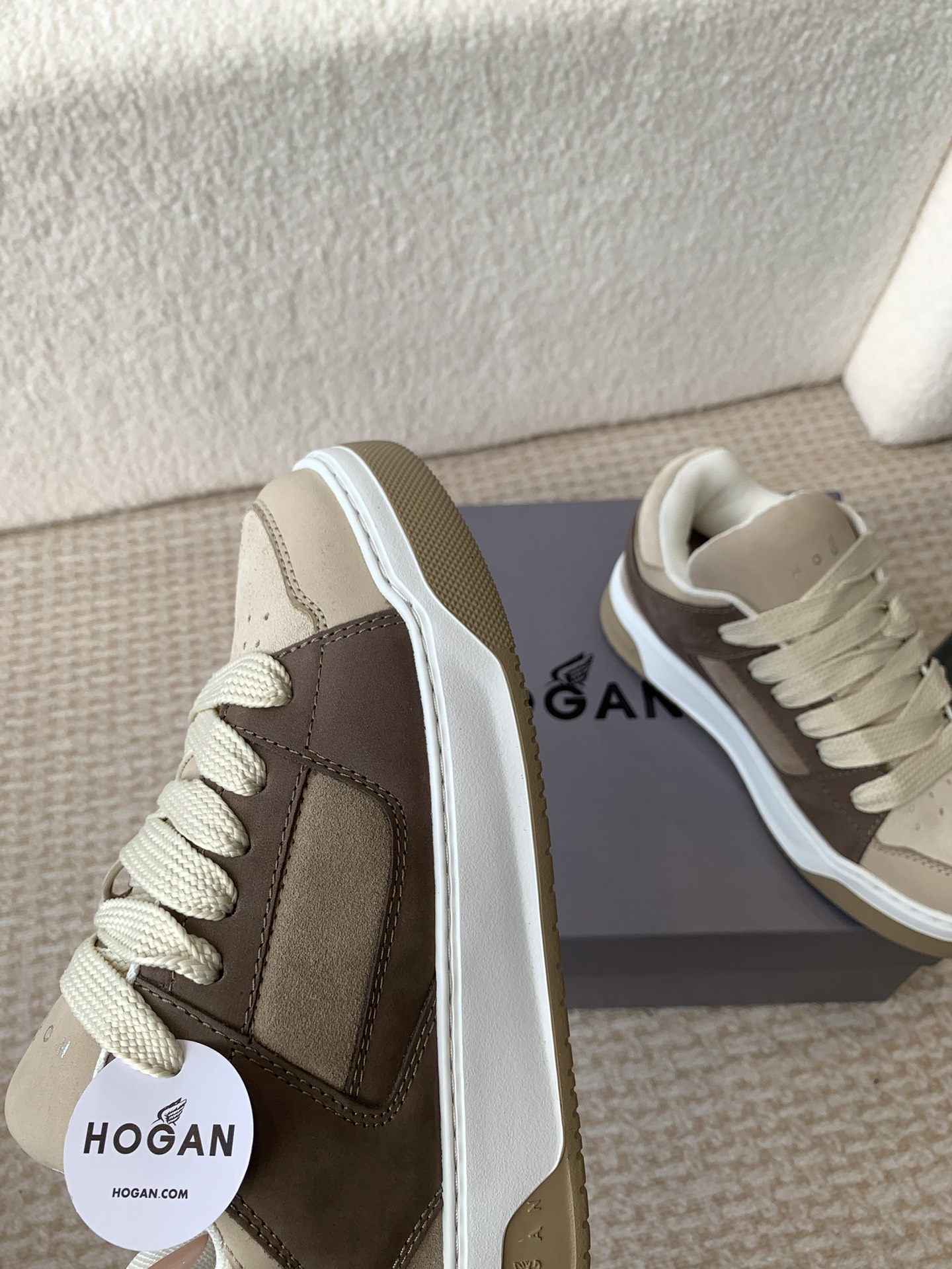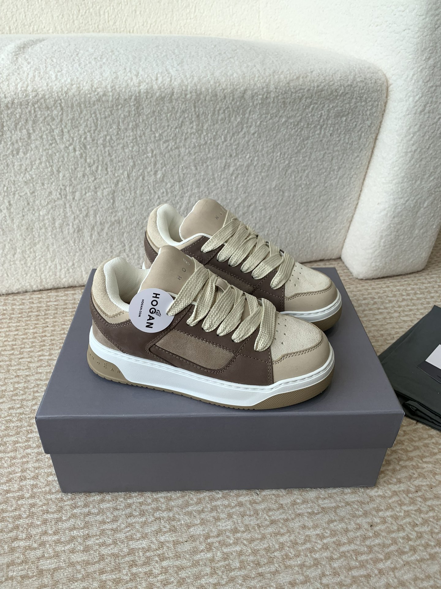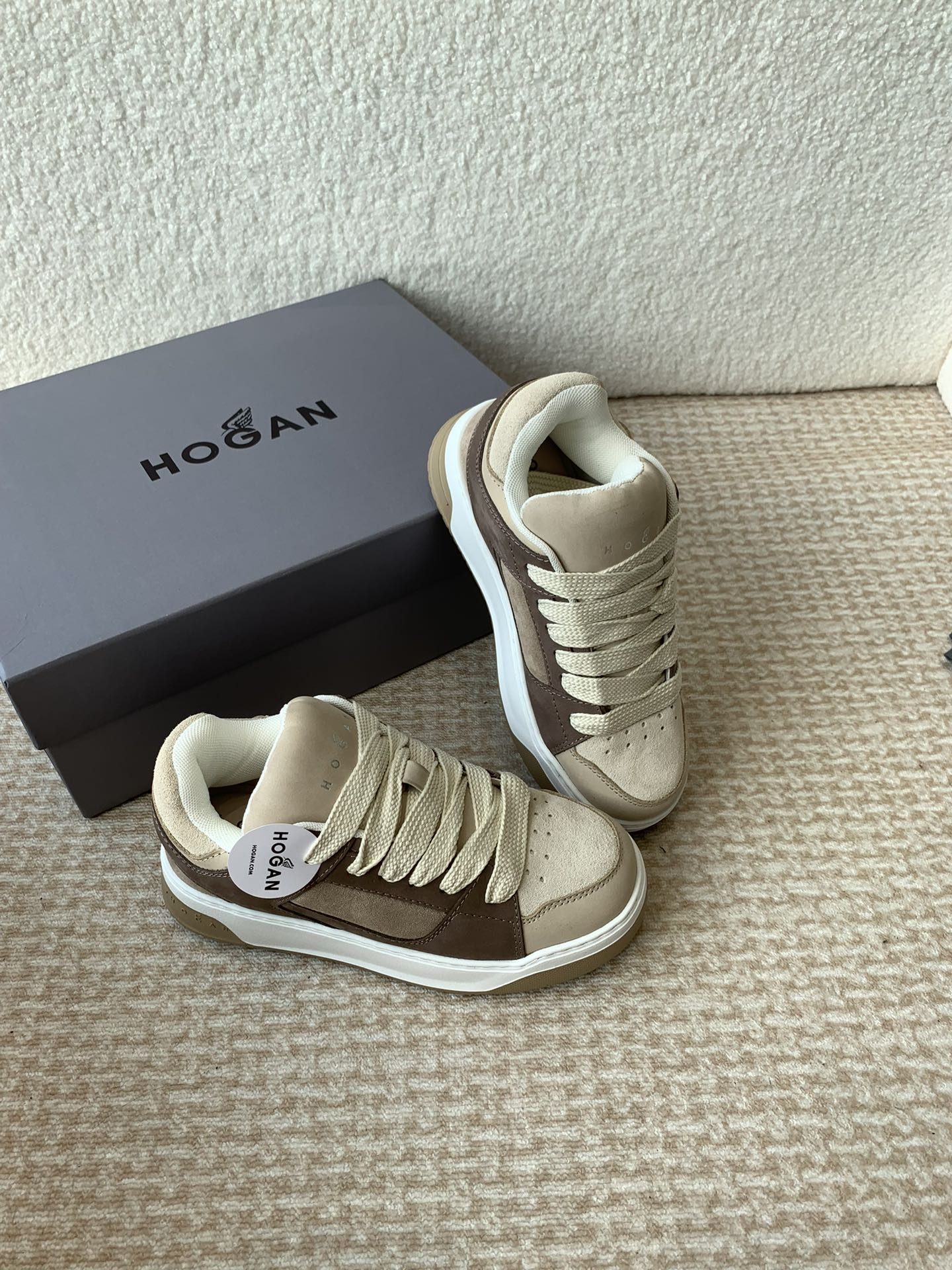 这款鞋子是AAAAA 1:1 质量 (非常棒). 使用了和原版一模一样的材料. 商标部分也保持了和Hogan一样. 图片拍摄是实物鞋子拍摄, 您所收到的实物保证和我们图片一模一样.