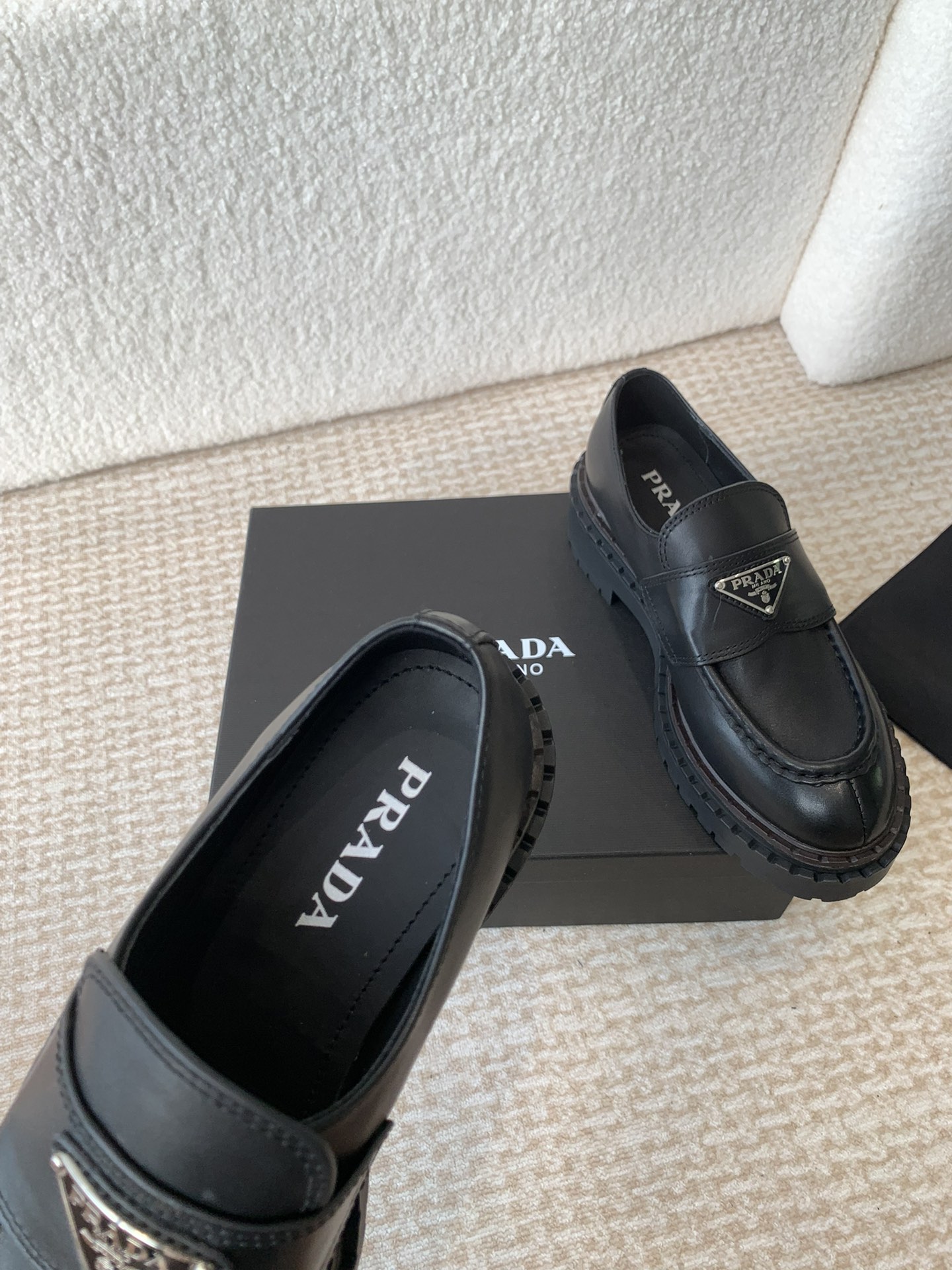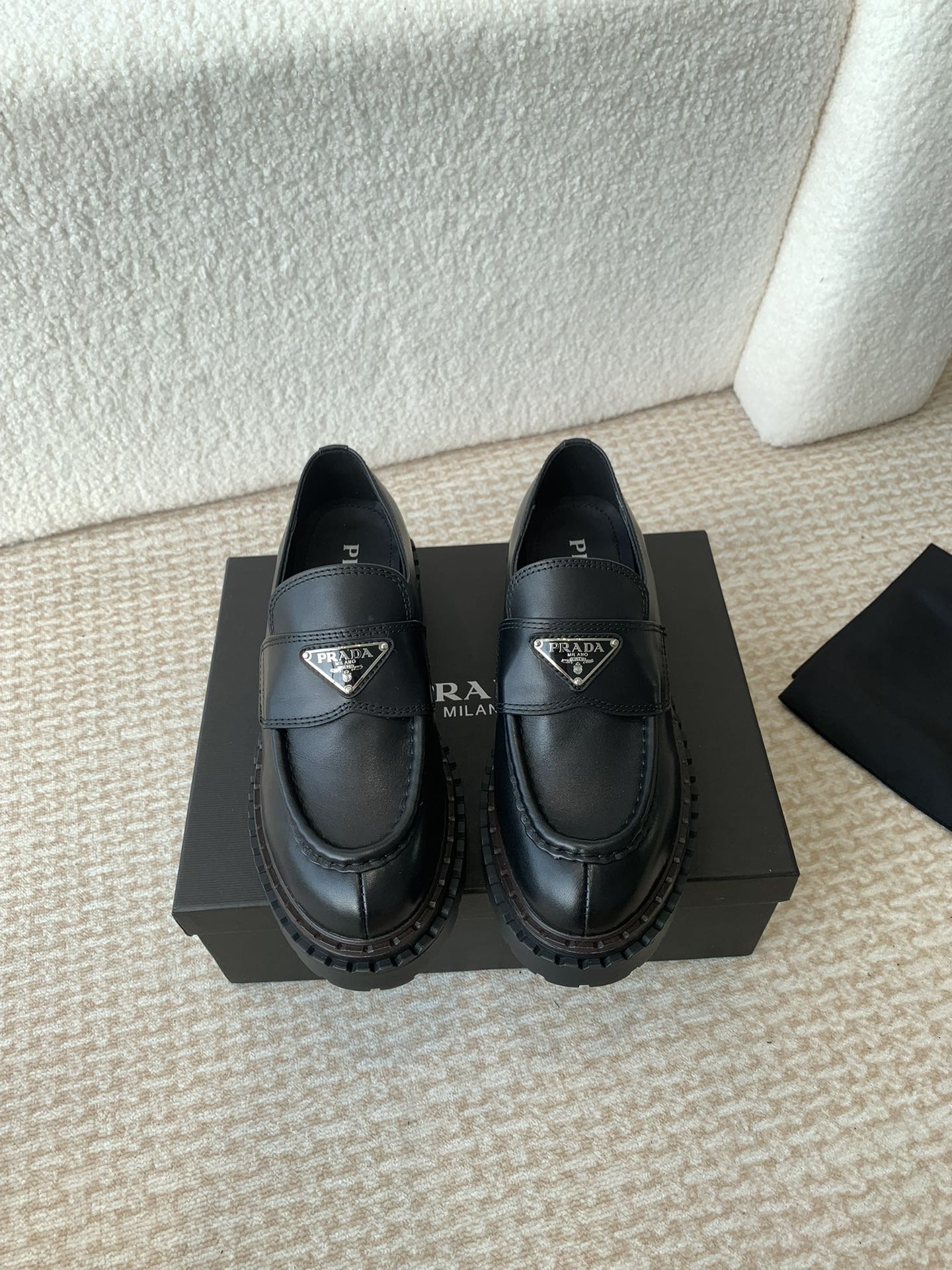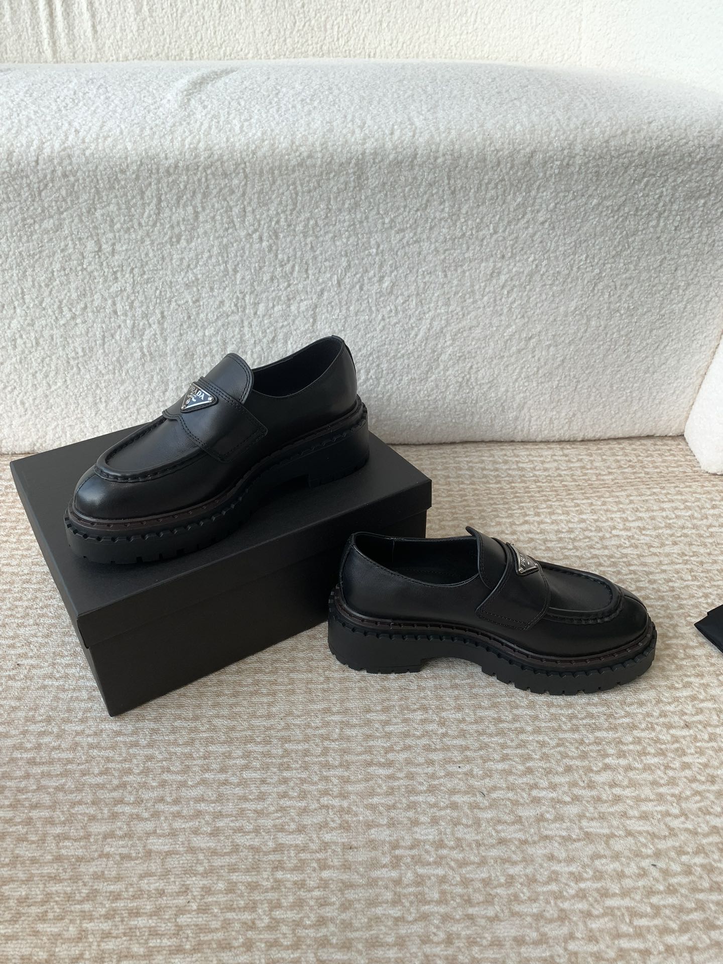 这款鞋子是AAAAA 1:1 质量 (非常棒). 使用了和原版一模一样的材料. 商标部分也保持了和普拉达/Prada一样. 图片拍摄是实物鞋子拍摄, 您所收到的实物保证和我们图片一模一样.