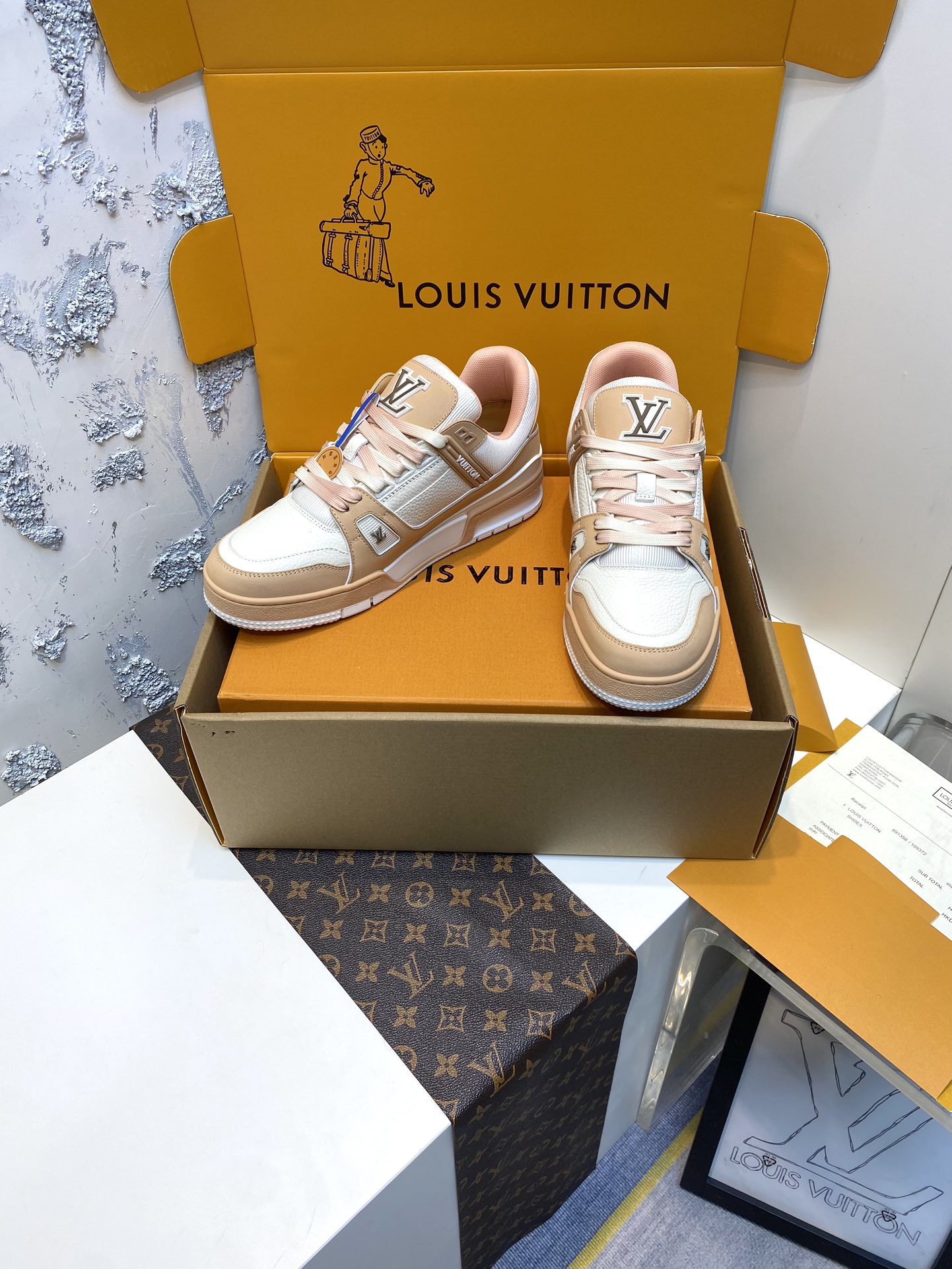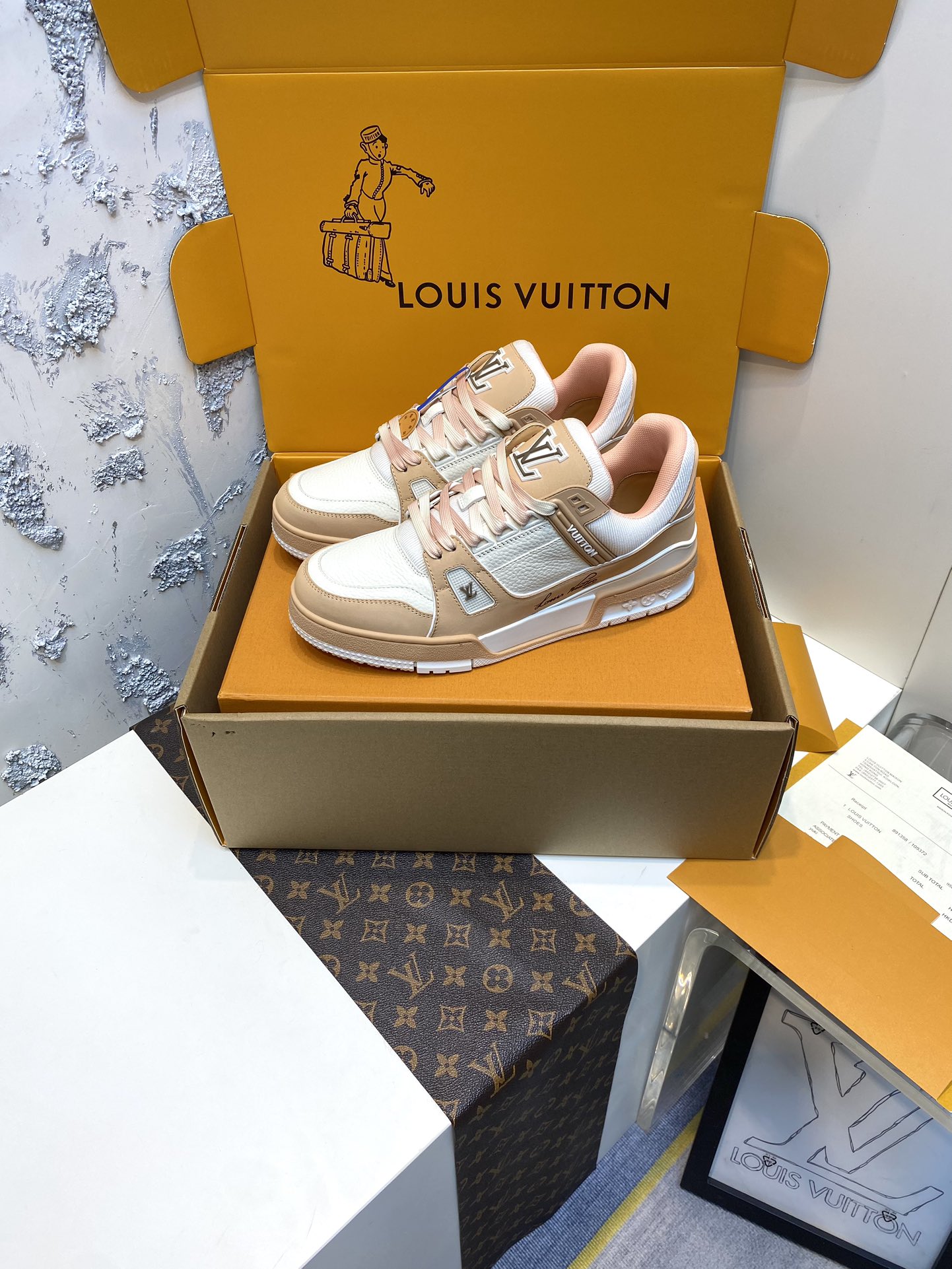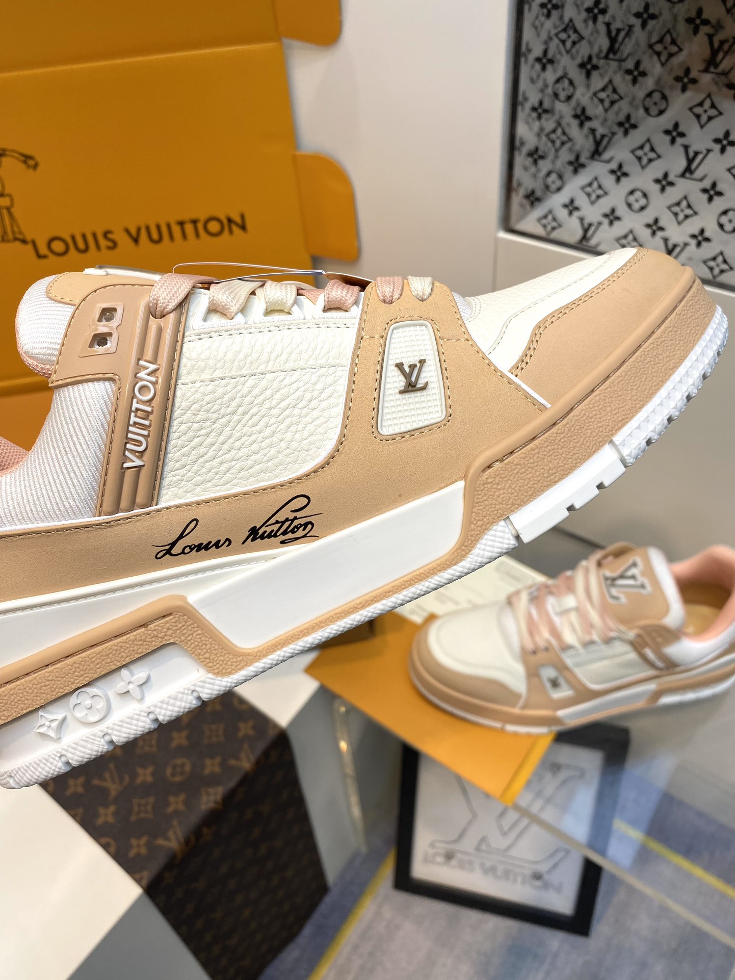 这款鞋子是AAAAA 1:1 质量 (非常棒). 使用了和原版一模一样的材料. 商标部分也保持了和路易威登/Louis Vuitton一样. 图片拍摄是实物鞋子拍摄, 您所收到的实物保证和我们图片一模一样.