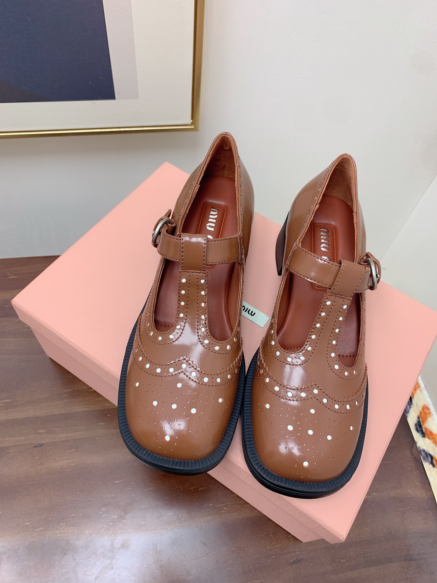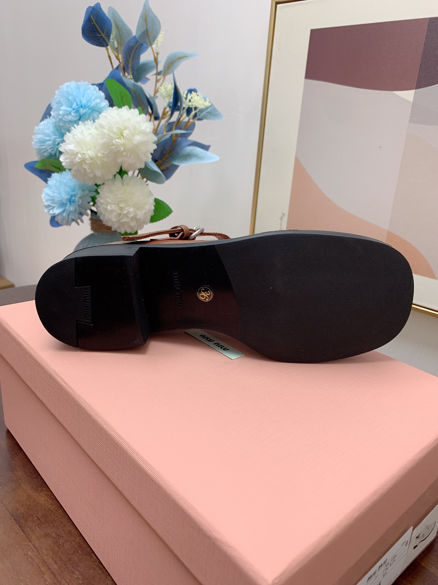 这款鞋子是AAAAA 1:1 质量 (非常棒). 使用了和原版一模一样的材料. 商标部分也保持了和缪缪/Miu Miu一样. 图片拍摄是实物鞋子拍摄, 您所收到的实物保证和我们图片一模一样.