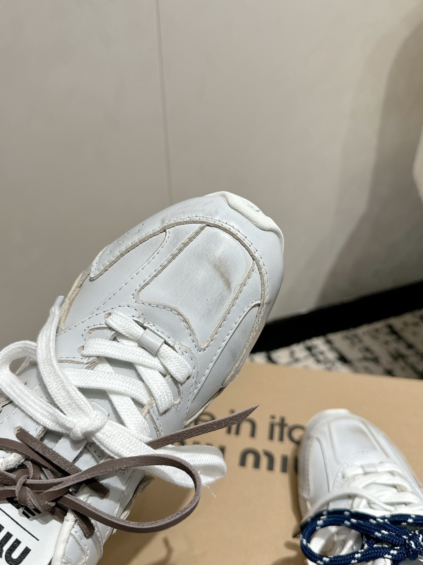 这款鞋子是AAAAA 1:1 质量 (非常棒). 使用了和原版一模一样的材料. 商标部分也保持了和缪缪/Miu Miu一样. 图片拍摄是实物鞋子拍摄, 您所收到的实物保证和我们图片一模一样.