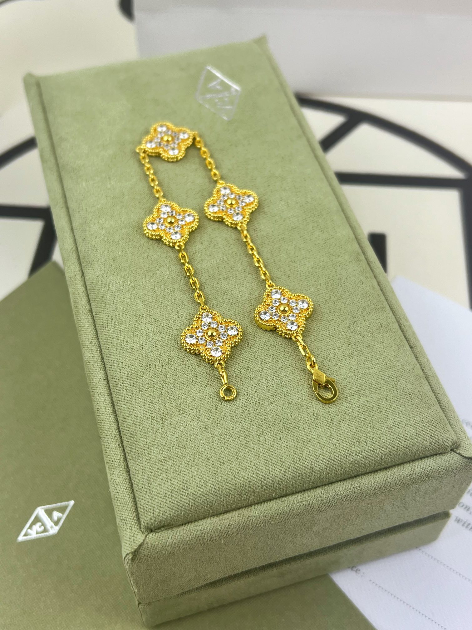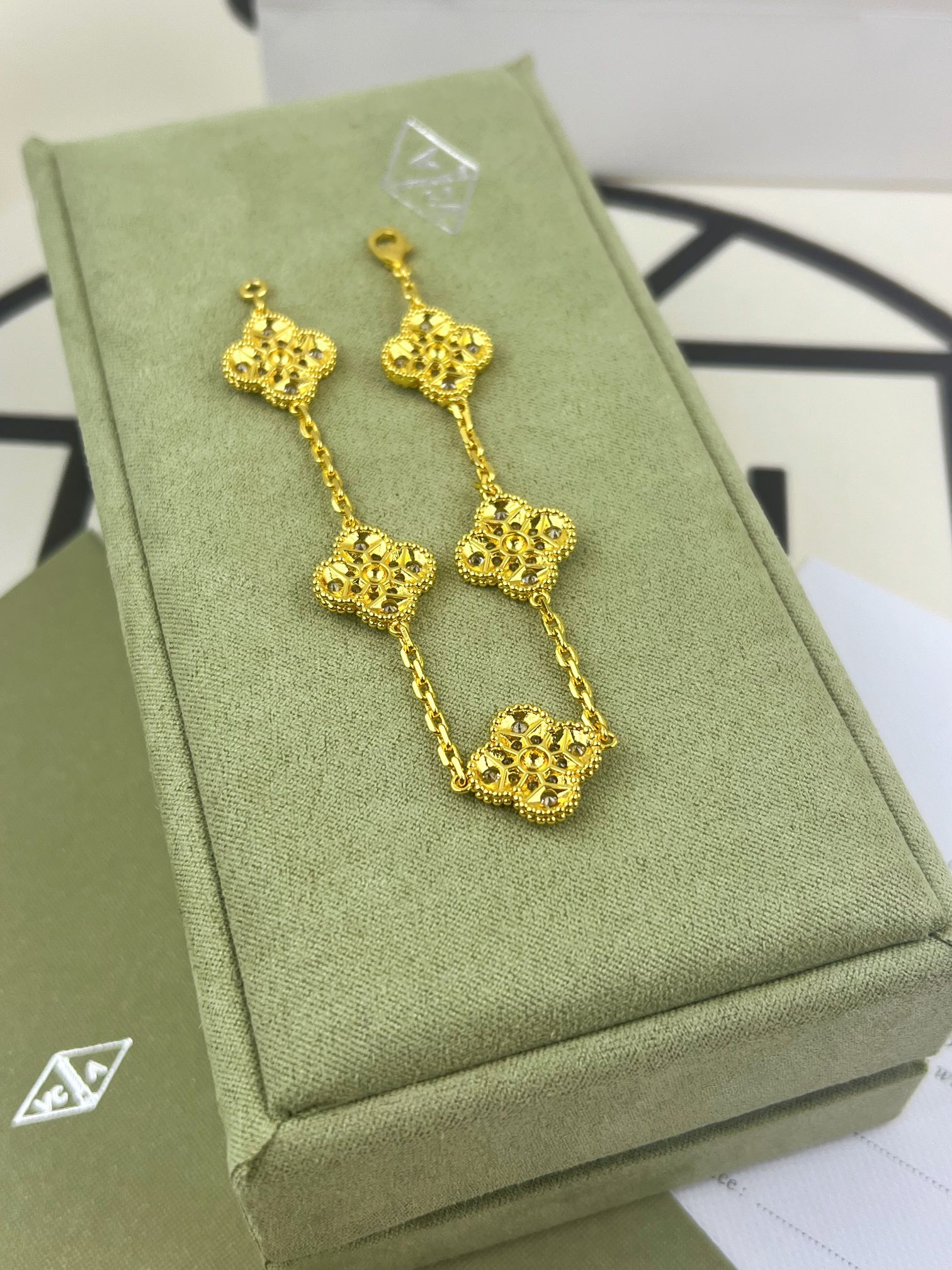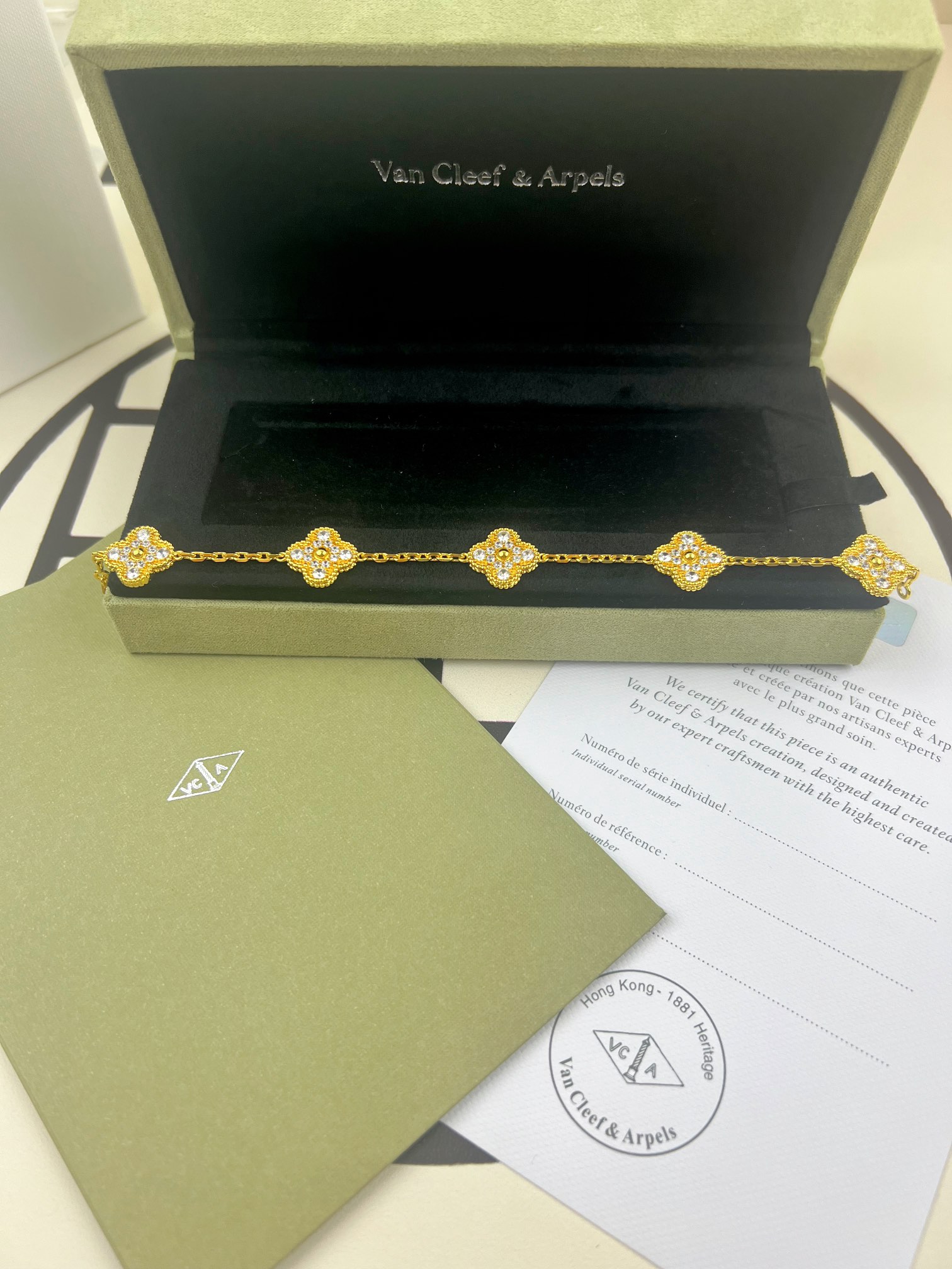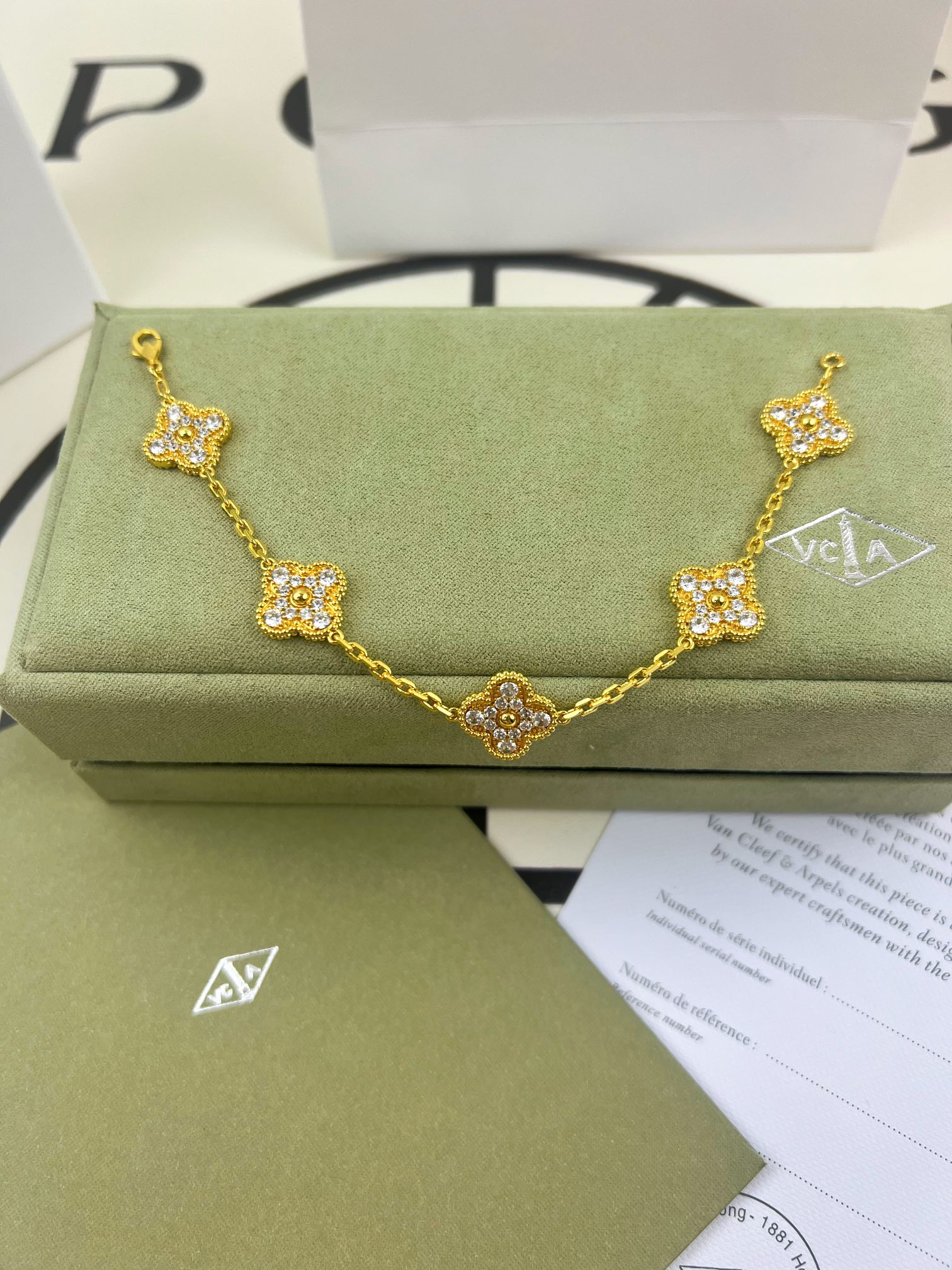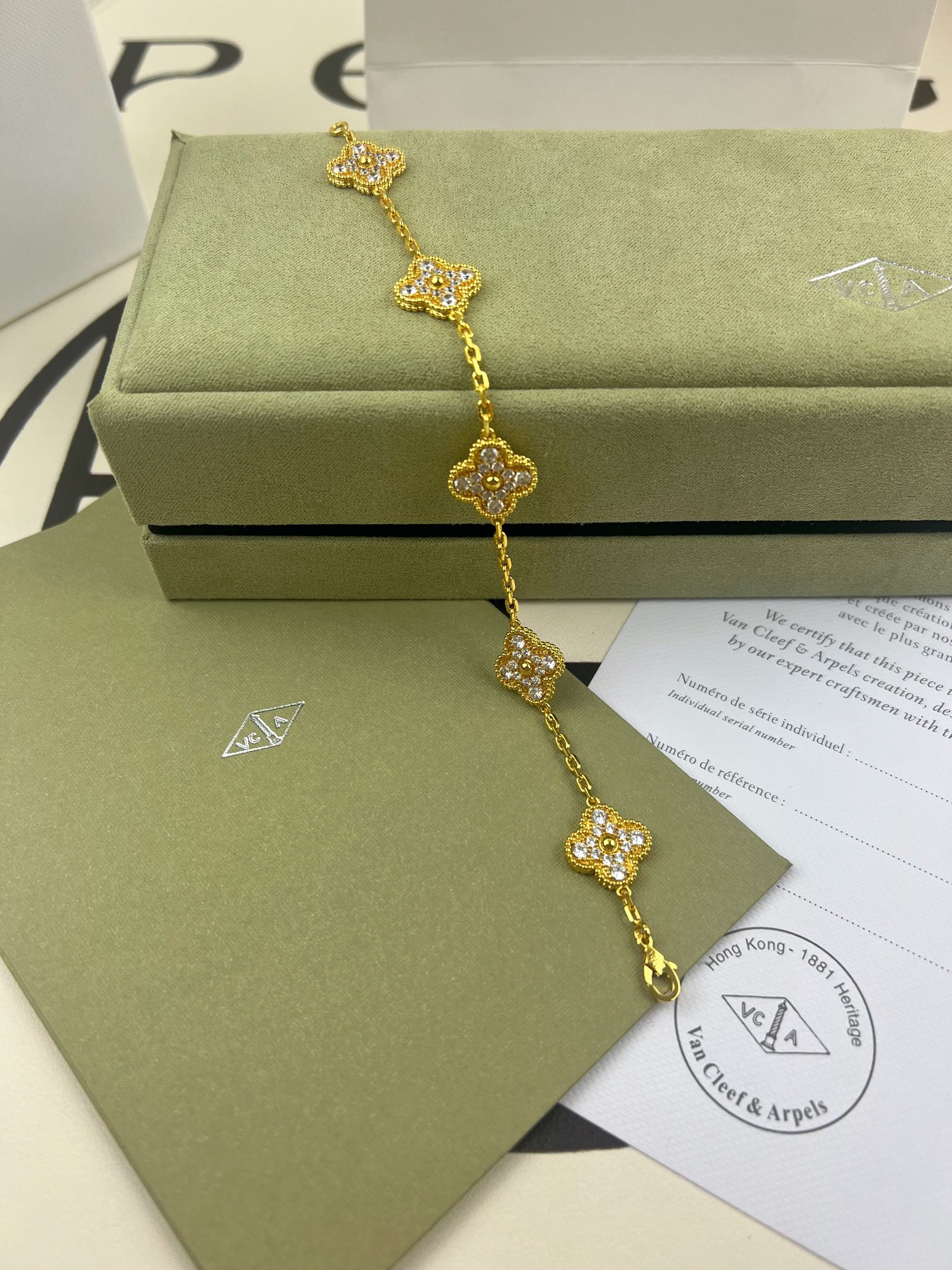 这款首饰是AAAAA 1:1 质量 (非常棒). 使用了和原版一模一样的材料. 商标部分也保持了和梵克雅宝/Van Cleef & Arpels一样. 图片拍摄是实物首饰拍摄, 您所收到的实物保证和我们图片一模一样.