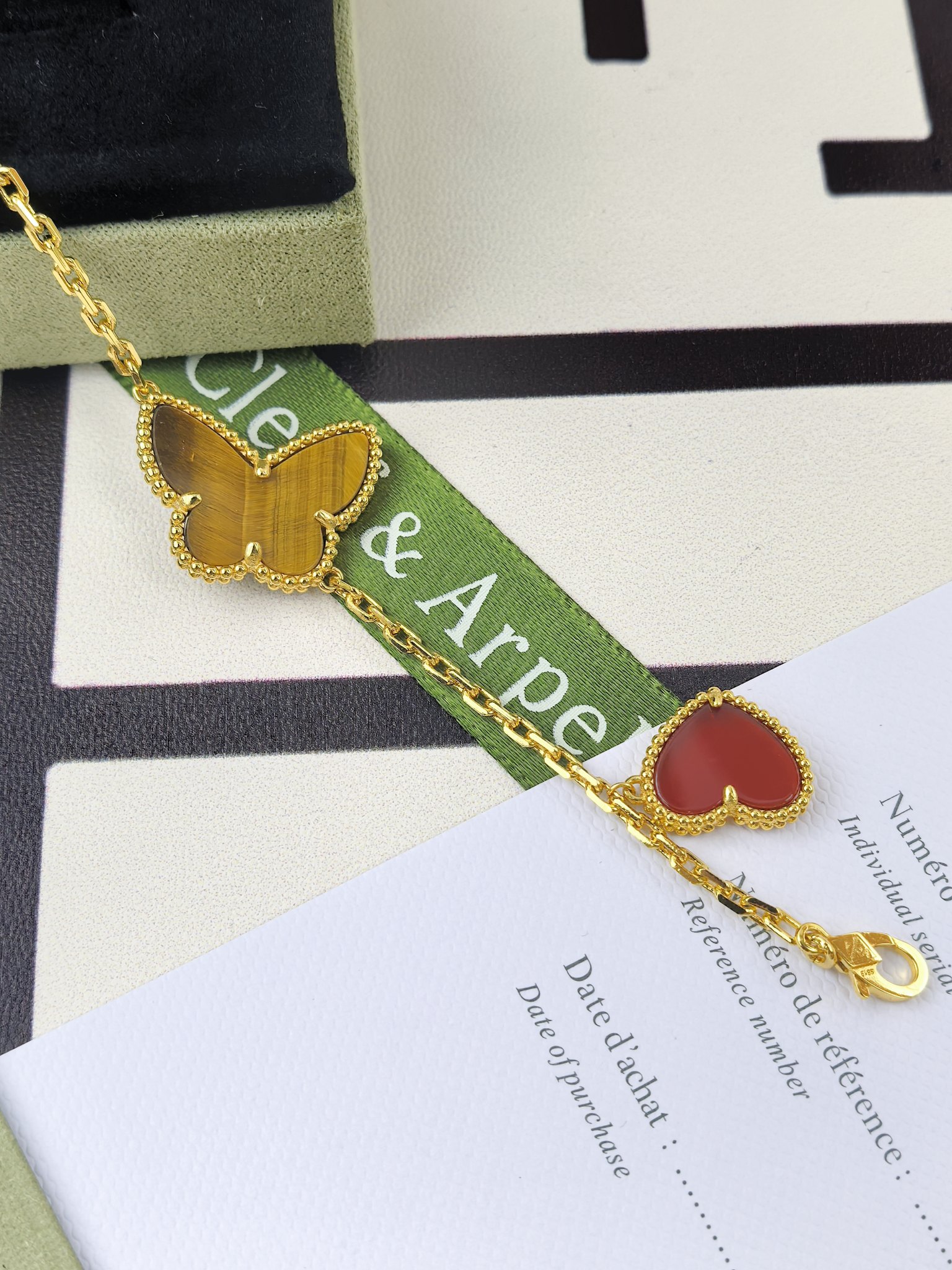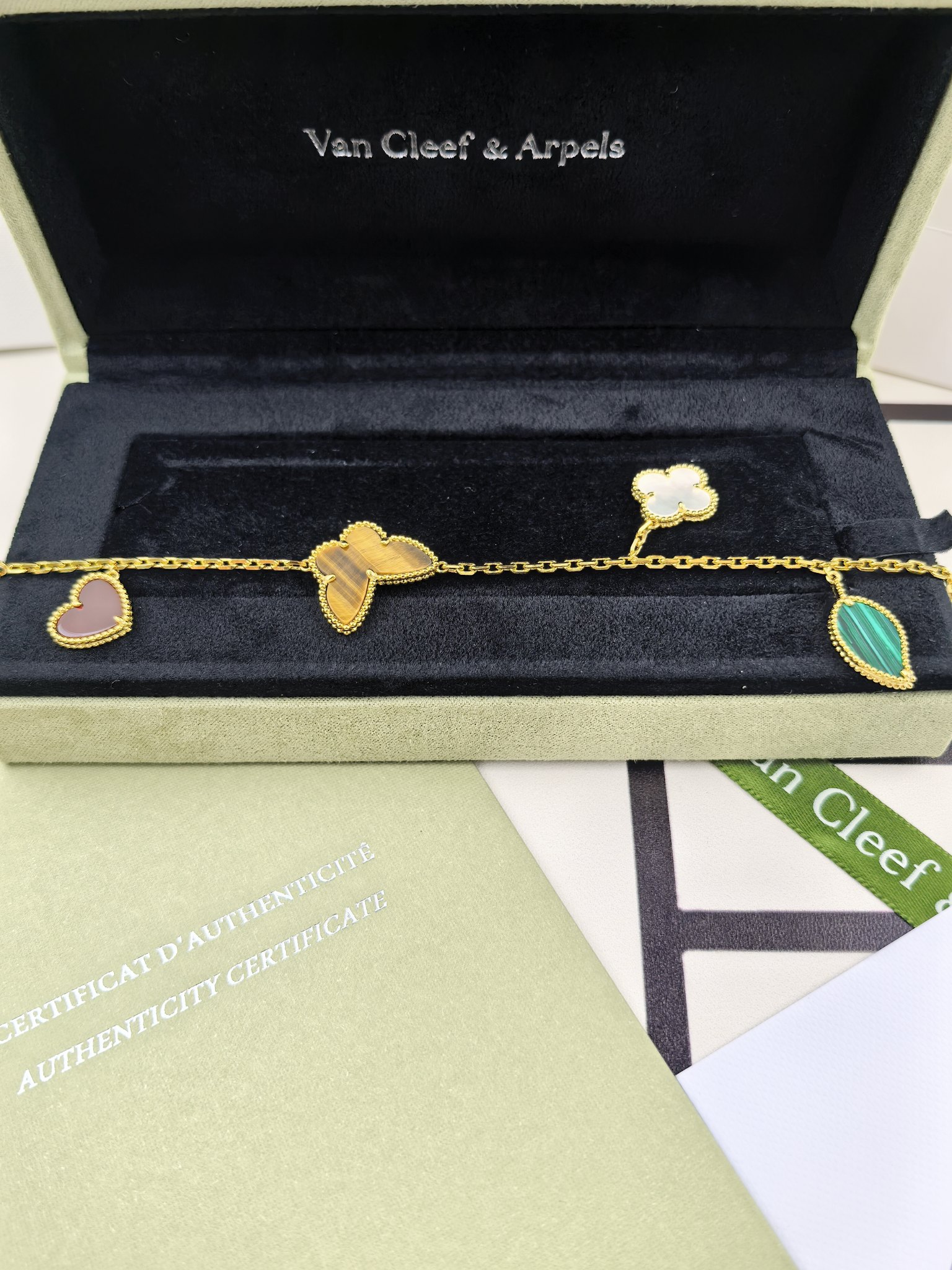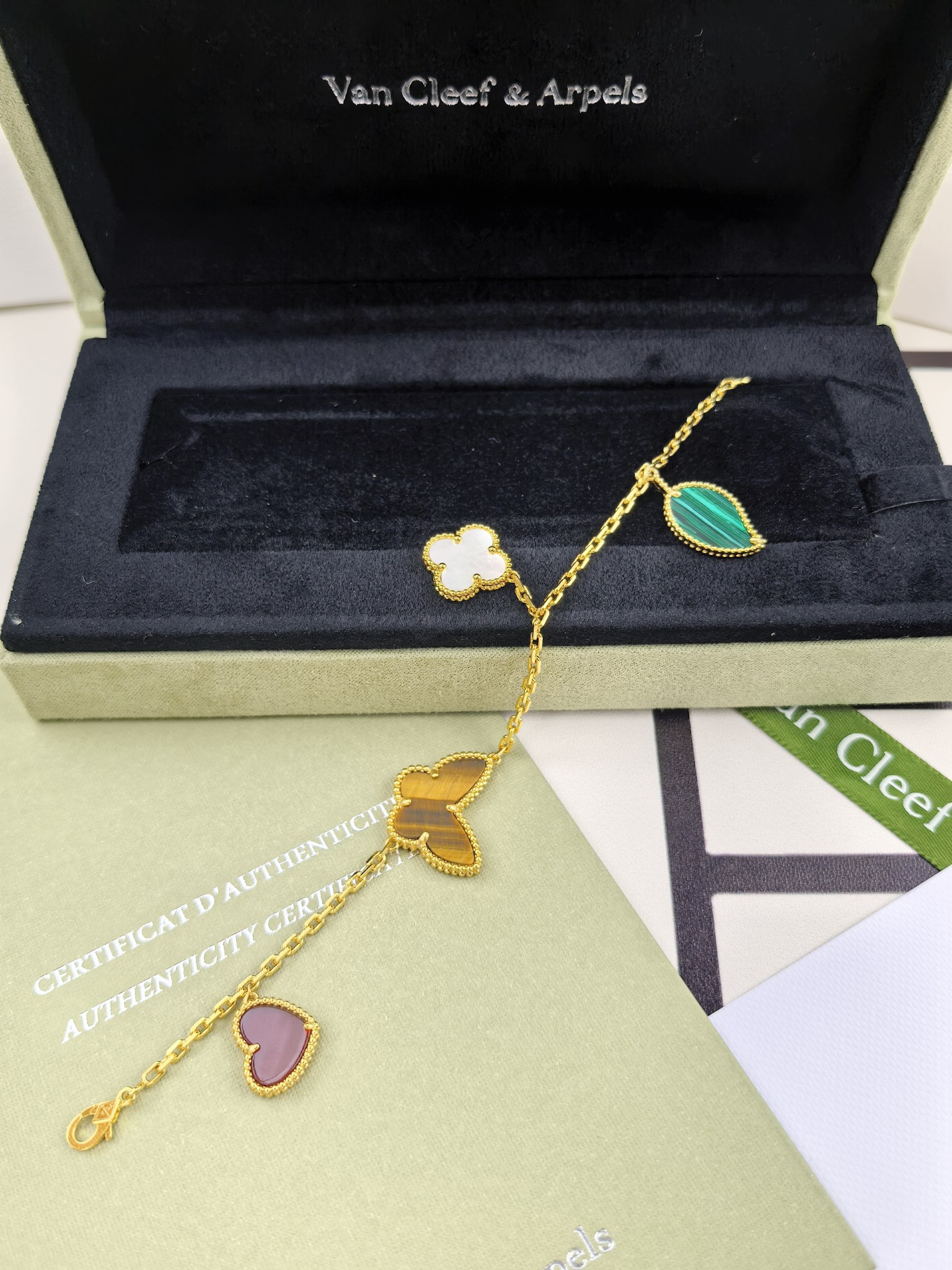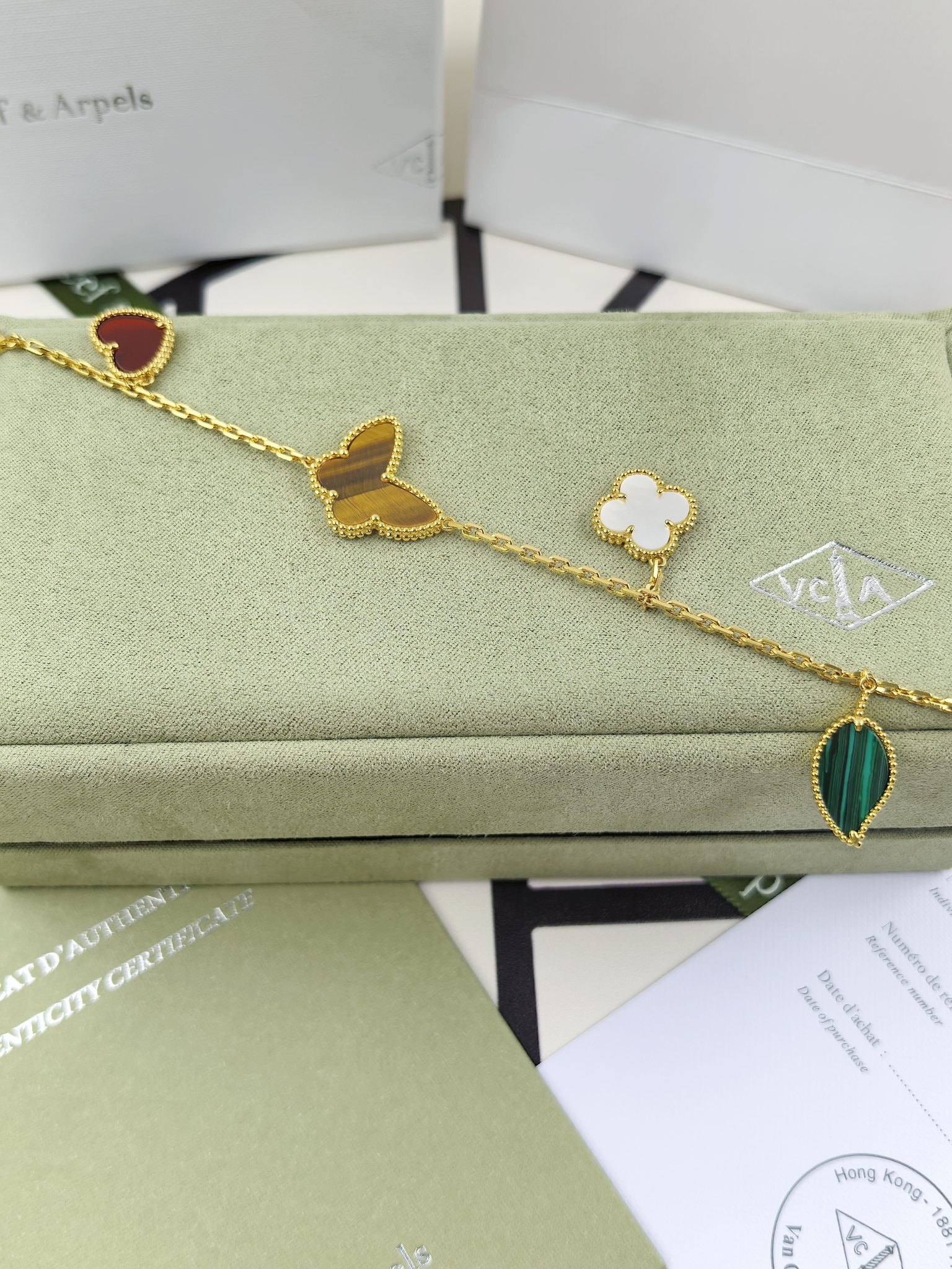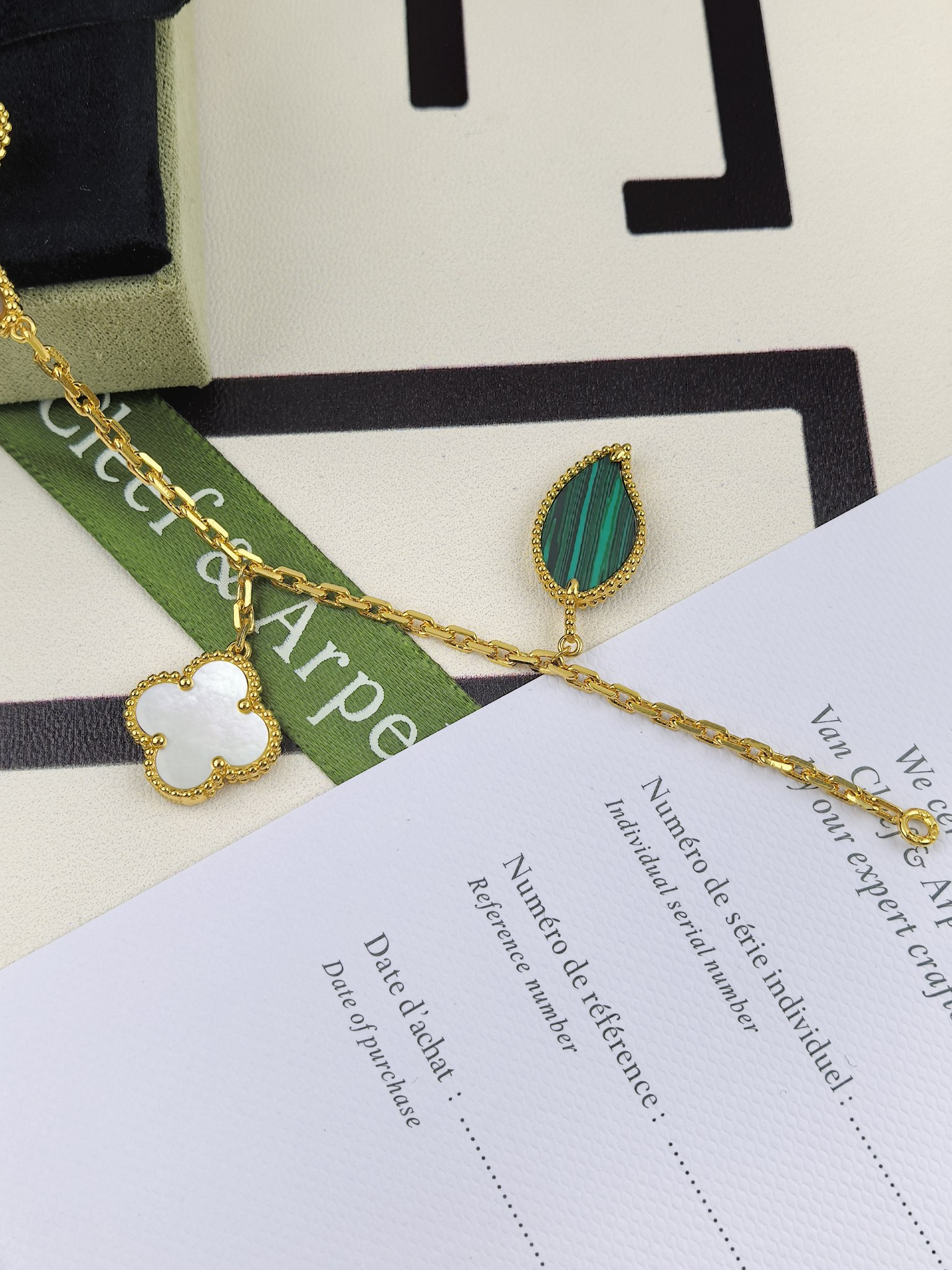 这款首饰是AAAAA 1:1 质量 (非常棒). 使用了和原版一模一样的材料. 商标部分也保持了和梵克雅宝/Van Cleef & Arpels一样. 图片拍摄是实物首饰拍摄, 您所收到的实物保证和我们图片一模一样.