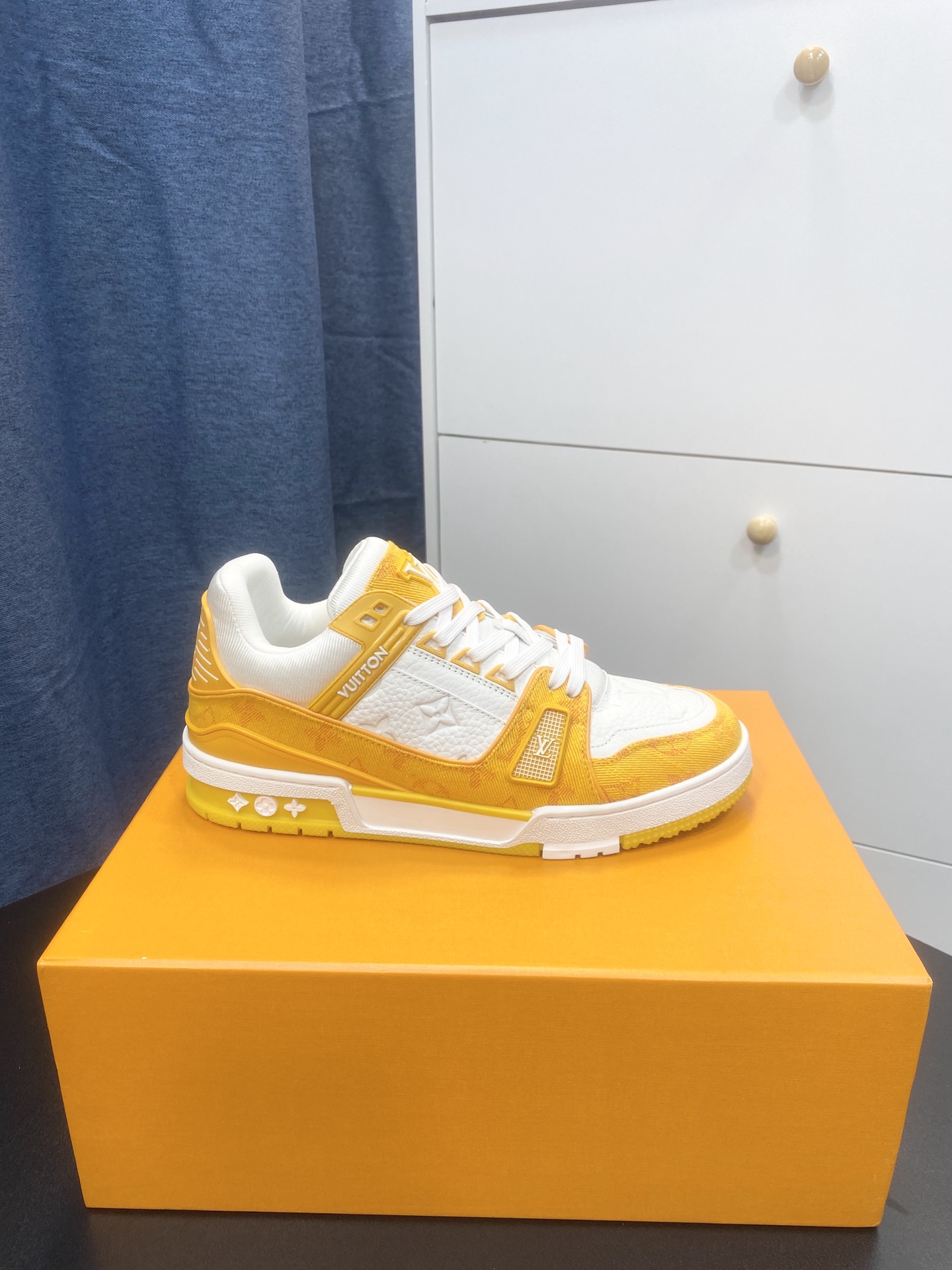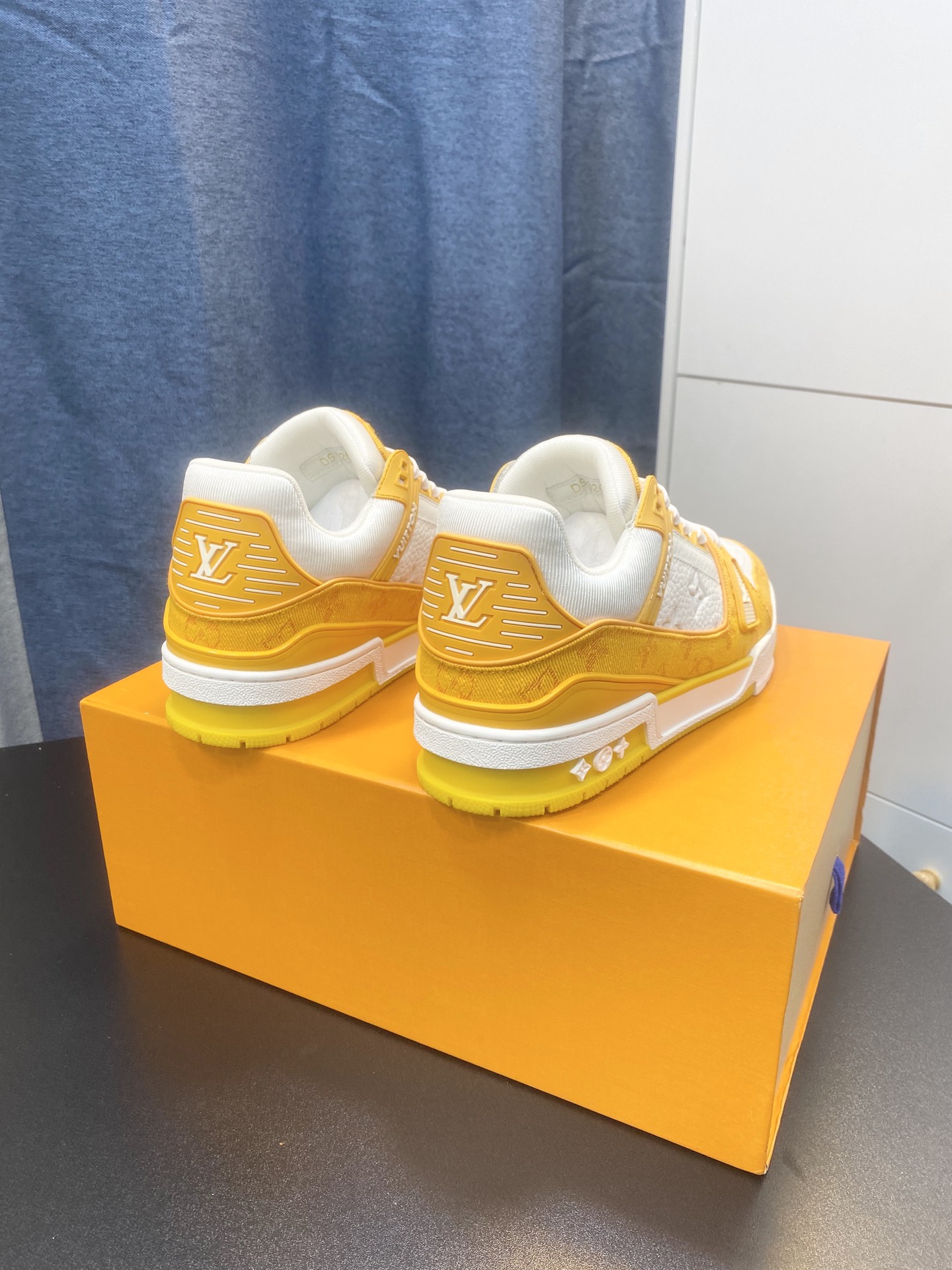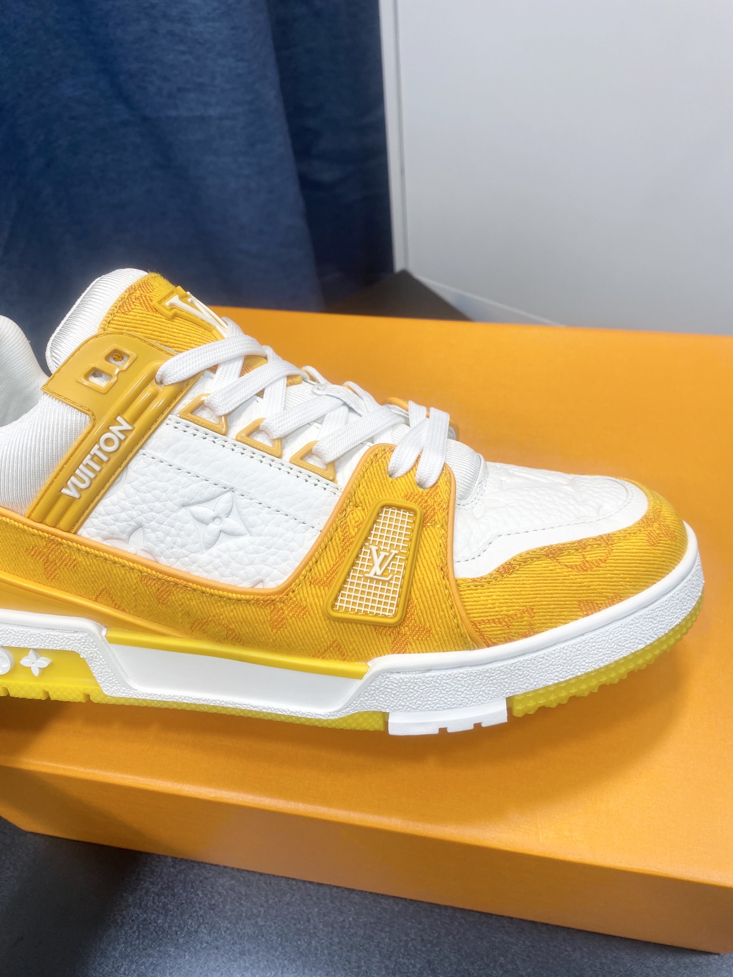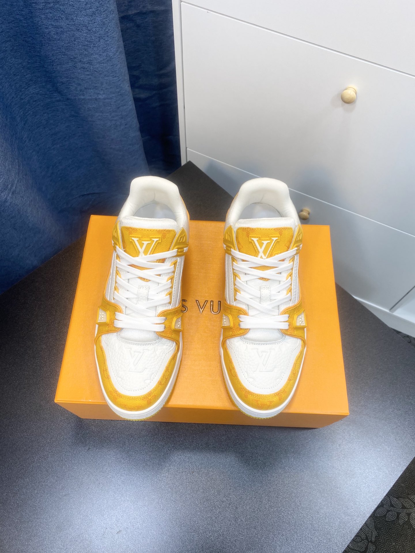这款鞋子是AAAAA 1:1 质量 (非常棒). 使用了和原版一模一样的材料. 商标部分也保持了和路易威登/Louis Vuitton一样. 图片拍摄是实物鞋子拍摄, 您所收到的实物保证和我们图片一模一样.