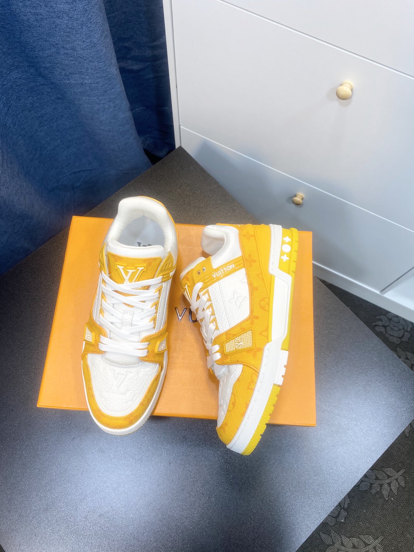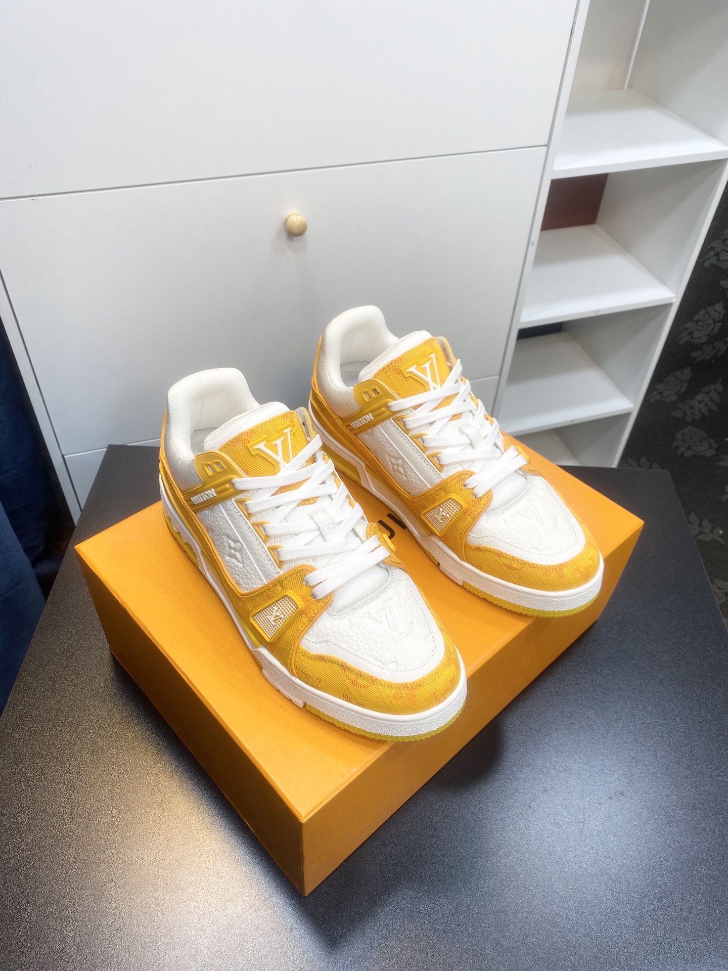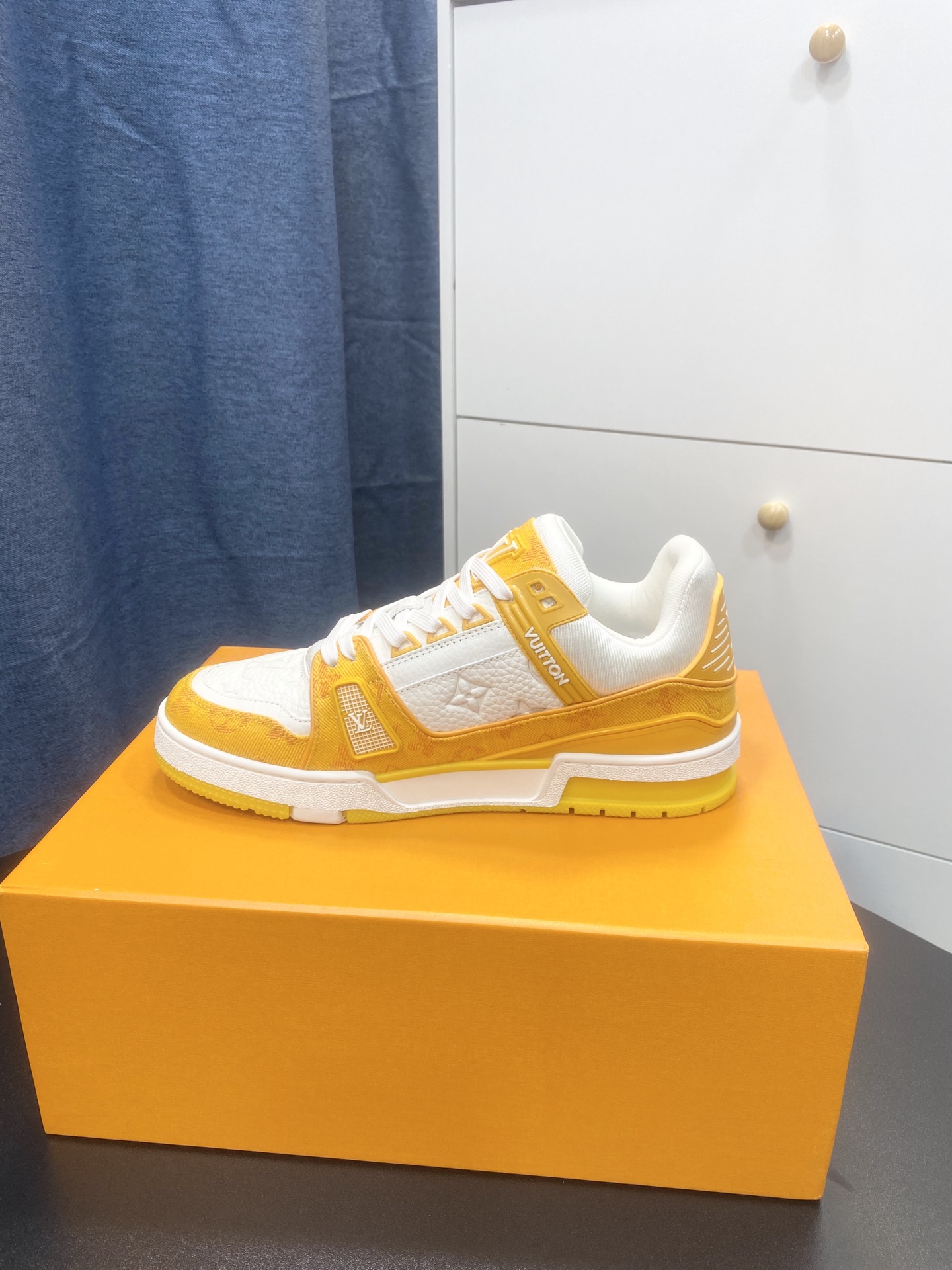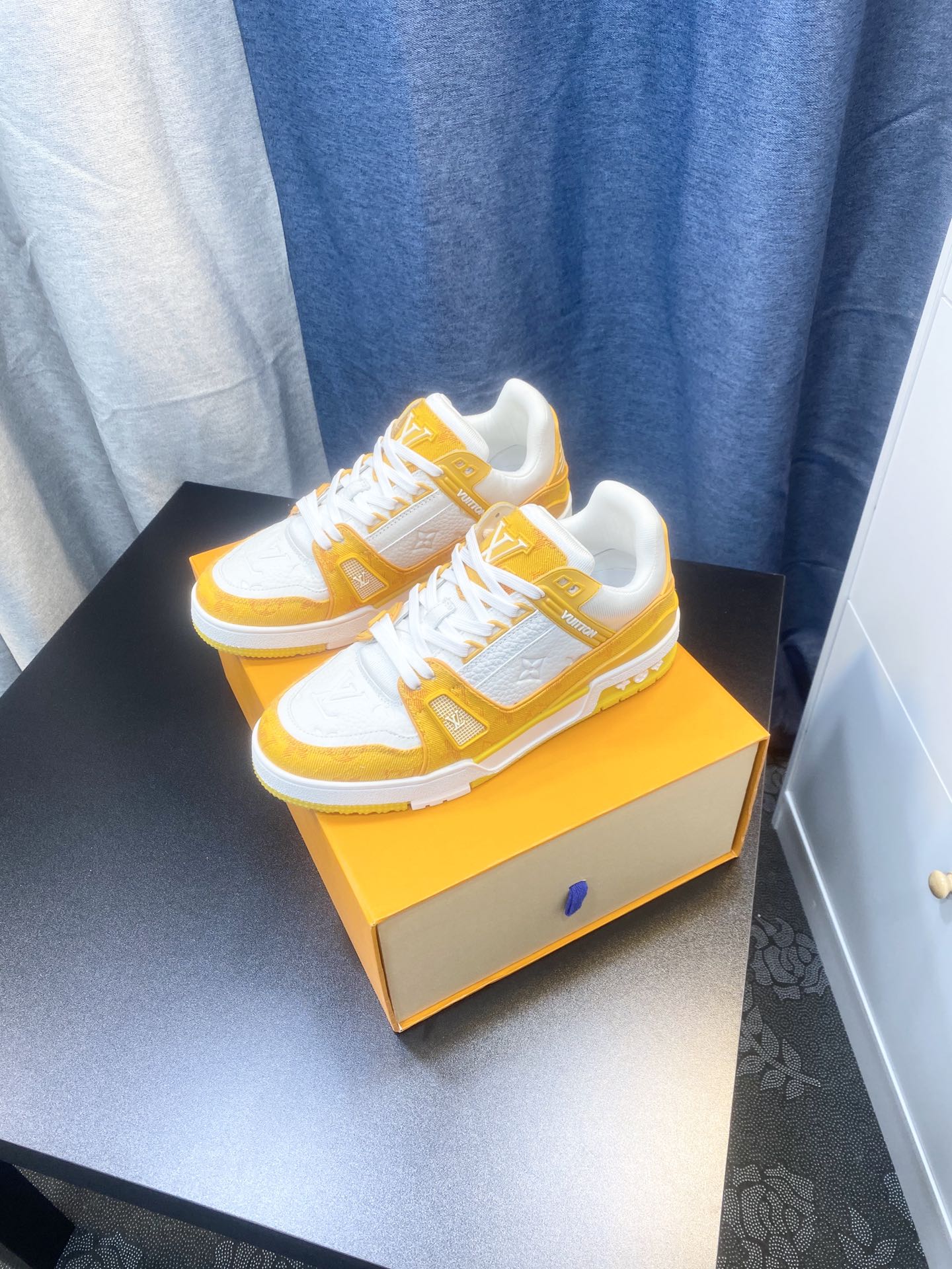 这款鞋子是AAAAA 1:1 质量 (非常棒). 使用了和原版一模一样的材料. 商标部分也保持了和路易威登/Louis Vuitton一样. 图片拍摄是实物鞋子拍摄, 您所收到的实物保证和我们图片一模一样.