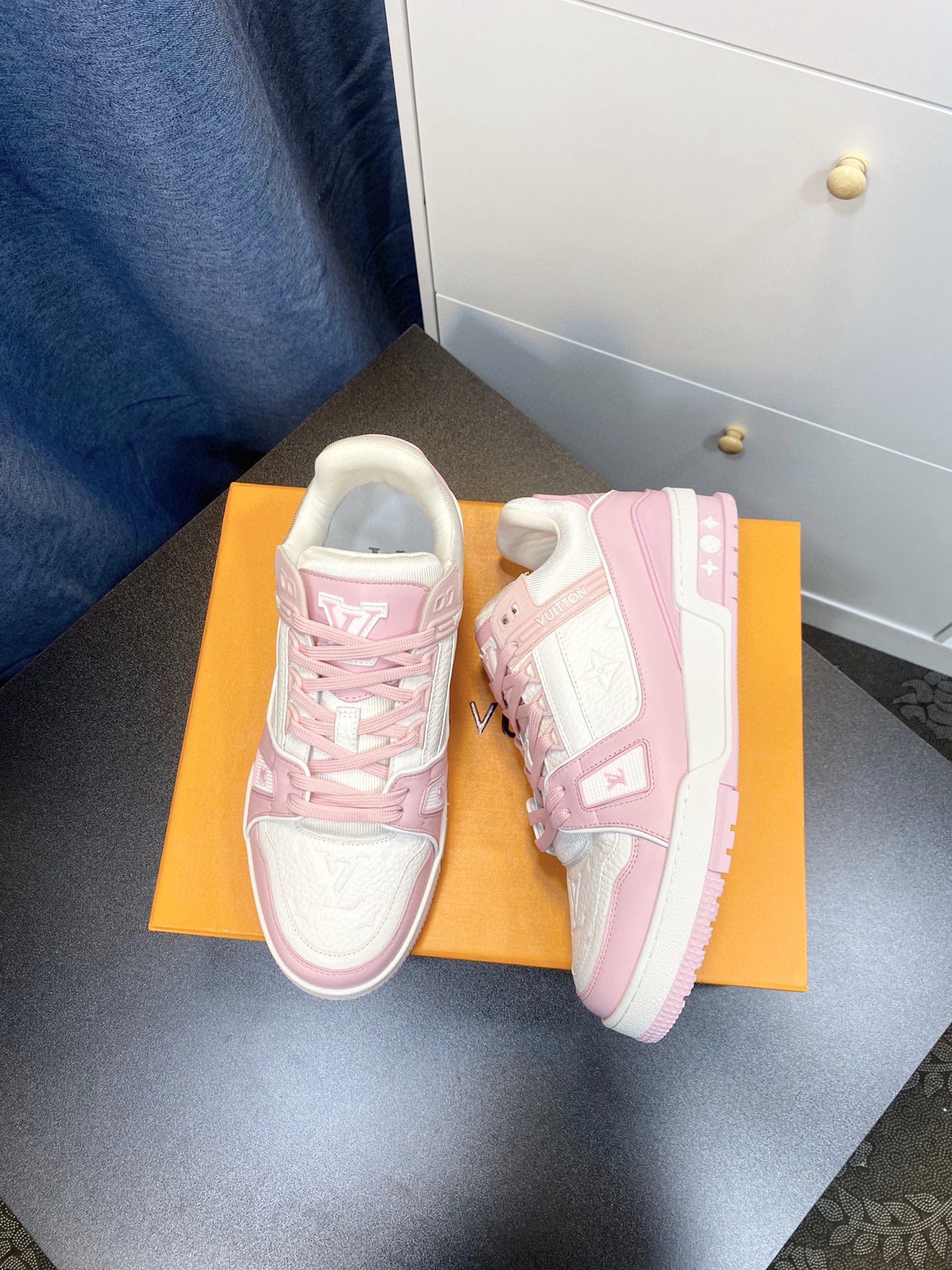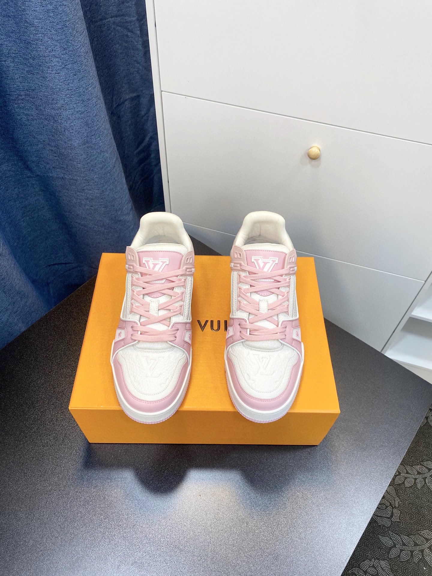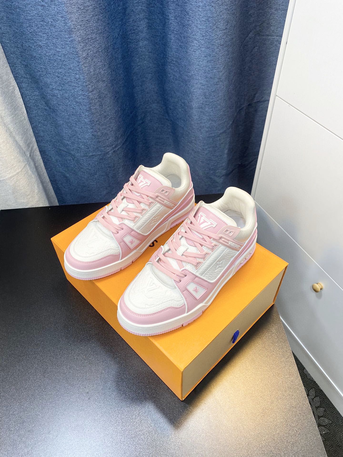 这款鞋子是AAAAA 1:1 质量 (非常棒). 使用了和原版一模一样的材料. 商标部分也保持了和路易威登/Louis Vuitton一样. 图片拍摄是实物鞋子拍摄, 您所收到的实物保证和我们图片一模一样.