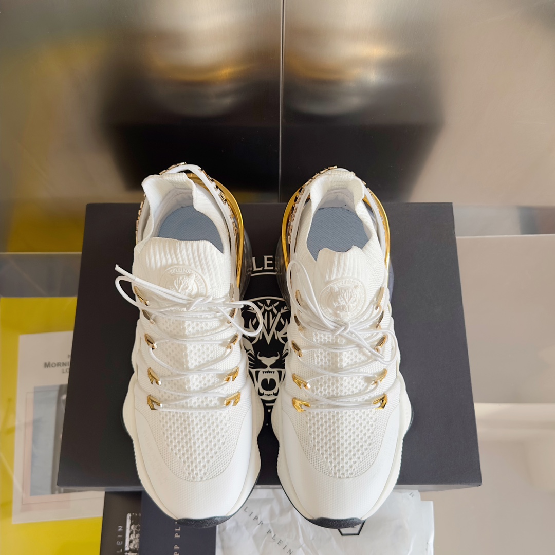 这款鞋子是AAAAA 1:1 质量 (非常棒). 使用了和原版一模一样的材料. 商标部分也保持了和菲利普·普林/Philipp Plein一样. 图片拍摄是实物鞋子拍摄, 您所收到的实物保证和我们图片一模一样.