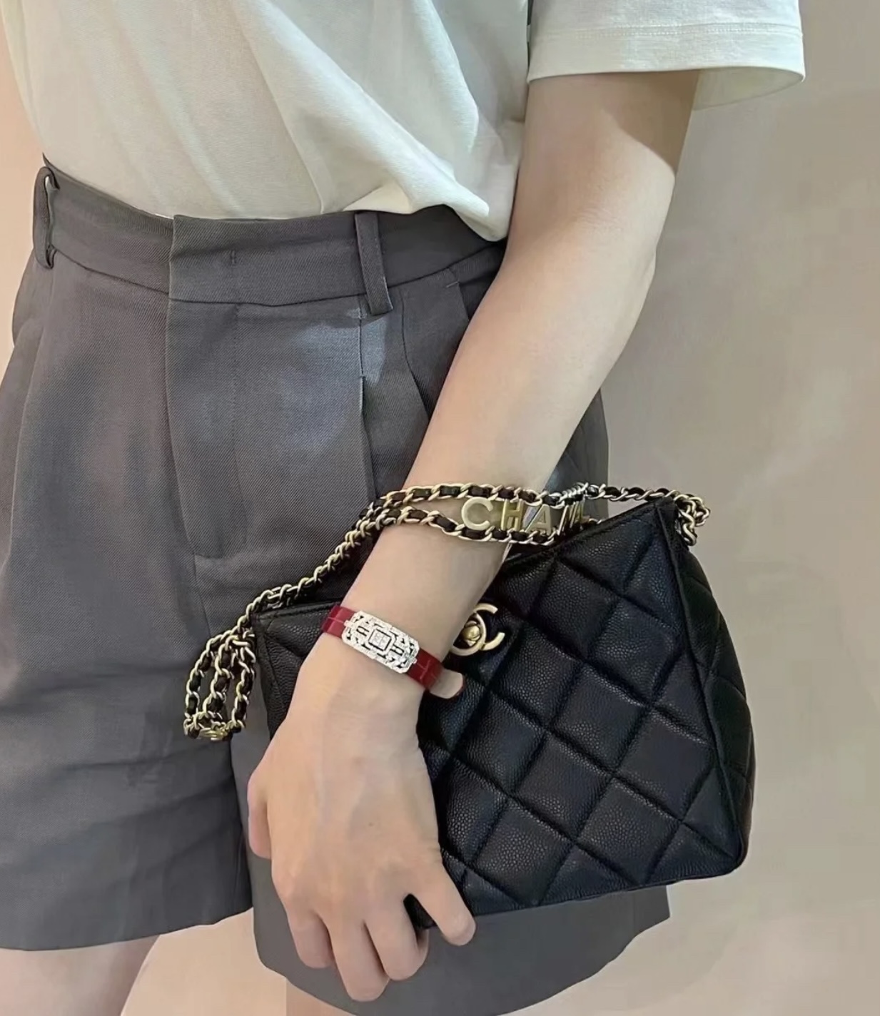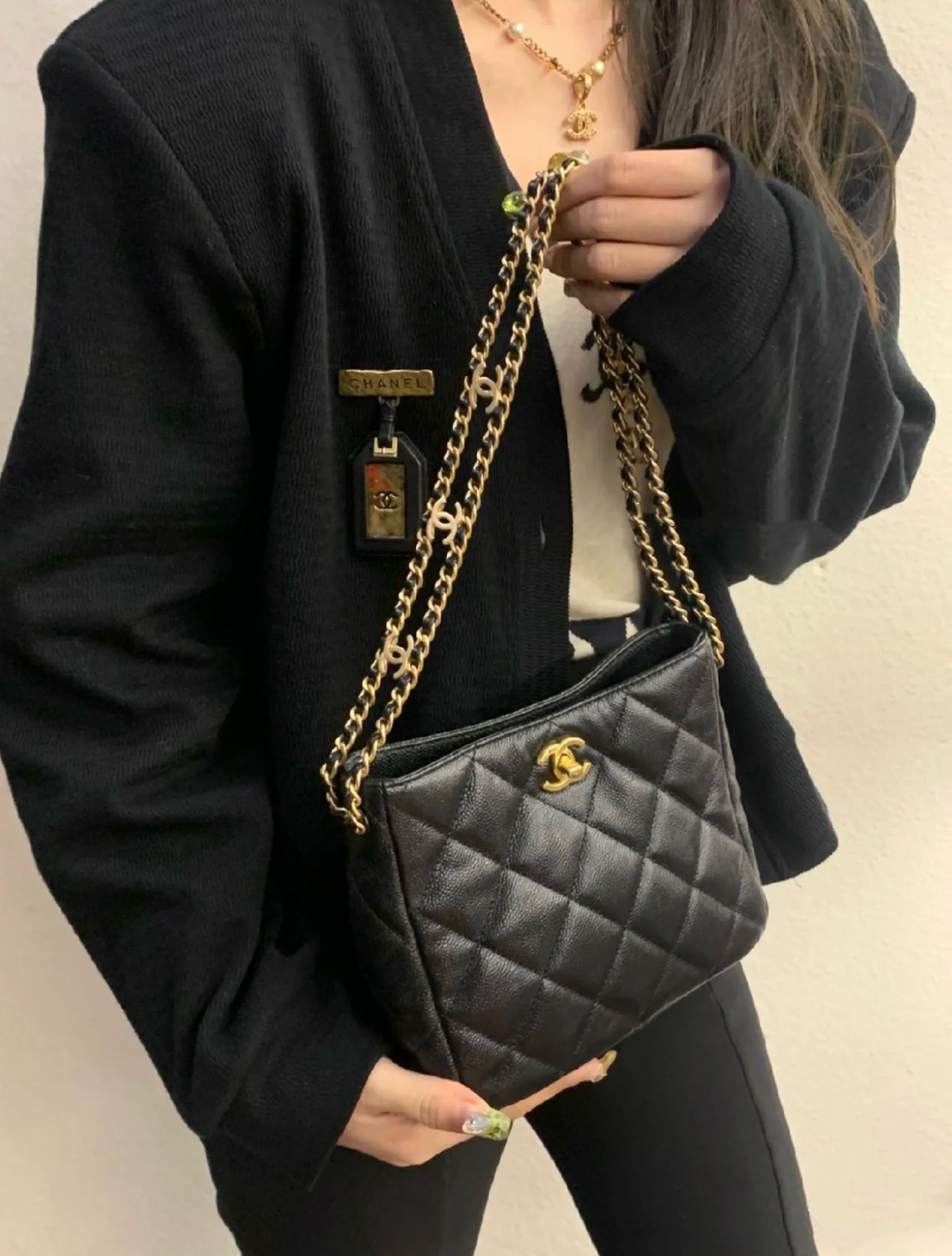 这款包包是AAAAA 1:1 质量 (非常棒). 使用了和原版一模一样的材料. 商标部分也保持了和香奈儿/Chanel一样. 图片拍摄是实物包包拍摄, 您所收到的实物保证和我们图片一模一样.