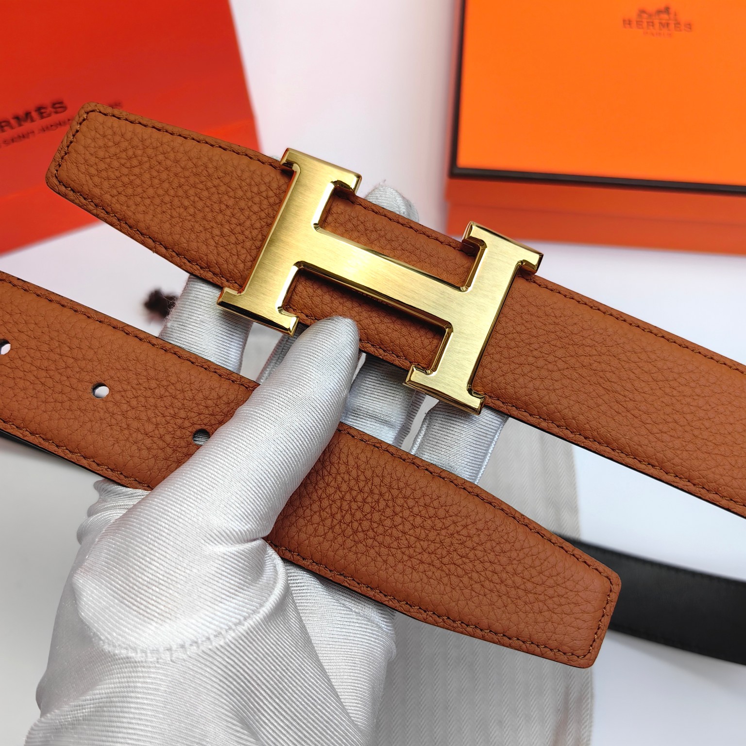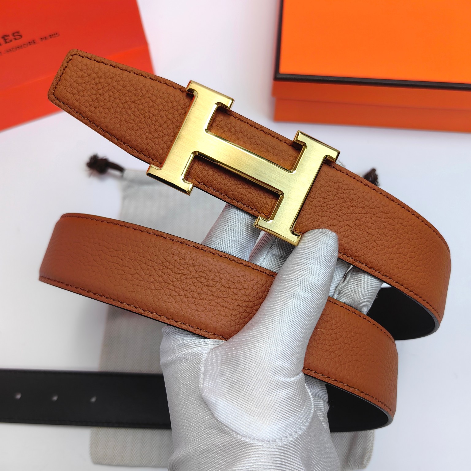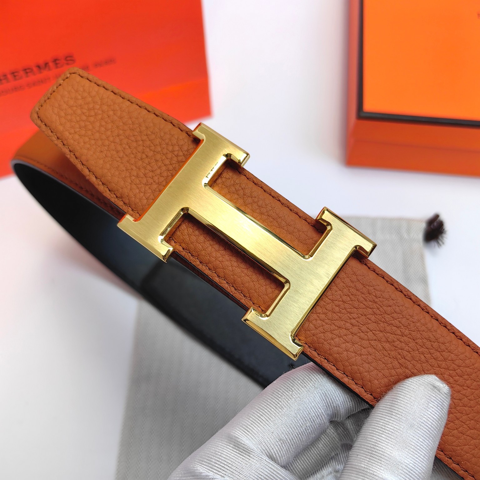 这款皮带是AAAAA 1:1 质量 (非常棒). 使用了和原版一模一样的材料. 商标部分也保持了和爱马仕/Hermes一样. 图片拍摄是实物皮带拍摄, 您所收到的实物保证和我们图片一模一样.