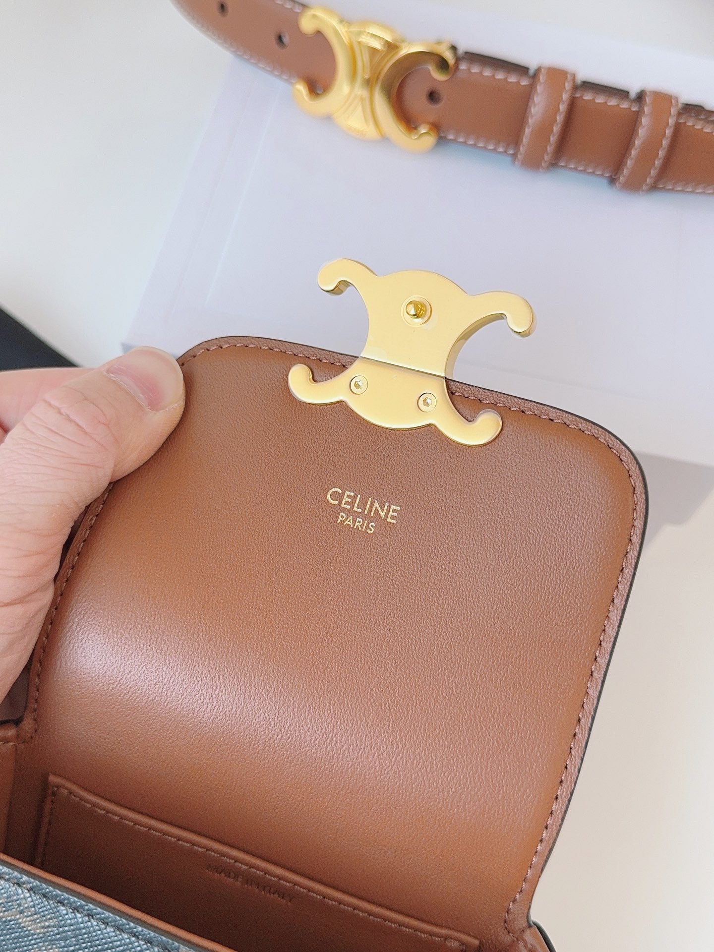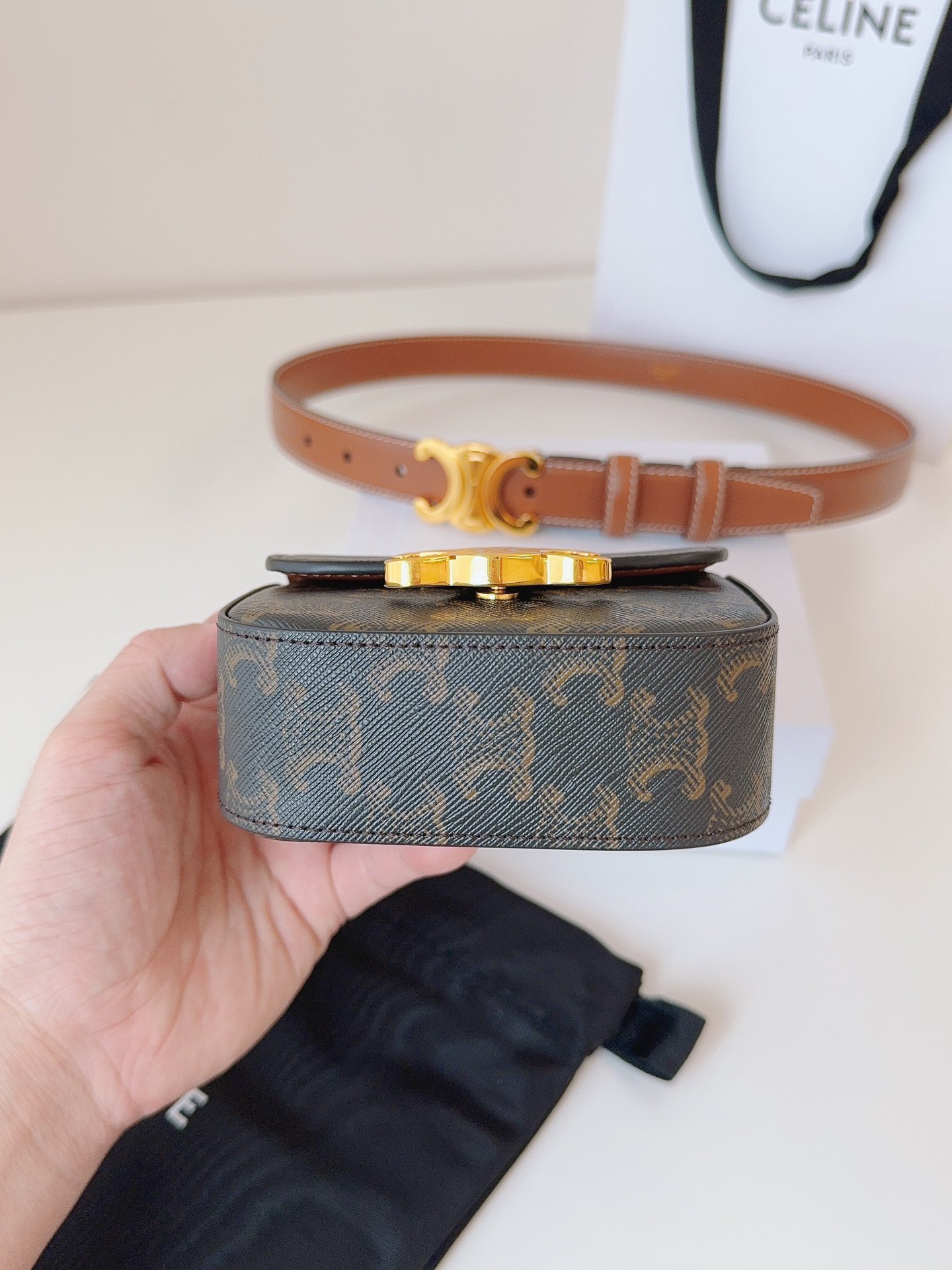 这款皮带是AAAAA 1:1 质量 (非常棒). 使用了和原版一模一样的材料. 商标部分也保持了和思琳/Celine一样. 图片拍摄是实物皮带拍摄, 您所收到的实物保证和我们图片一模一样.