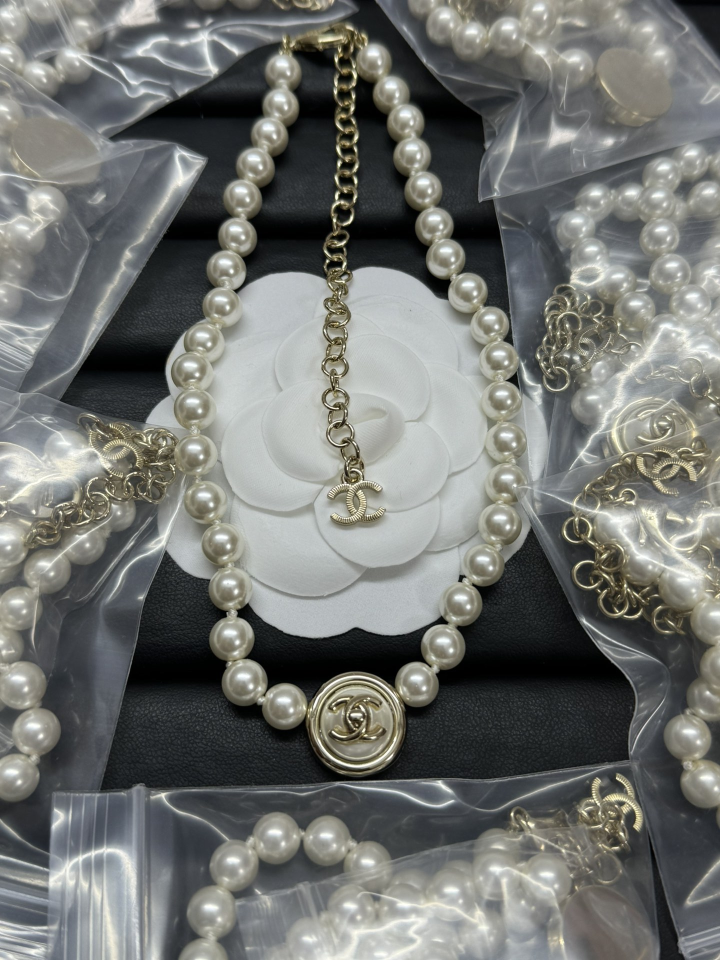 这款首饰是AAAAA 1:1 质量 (非常棒). 使用了和原版一模一样的材料. 商标部分也保持了和香奈儿/Chanel一样. 图片拍摄是实物首饰拍摄, 您所收到的实物保证和我们图片一模一样.