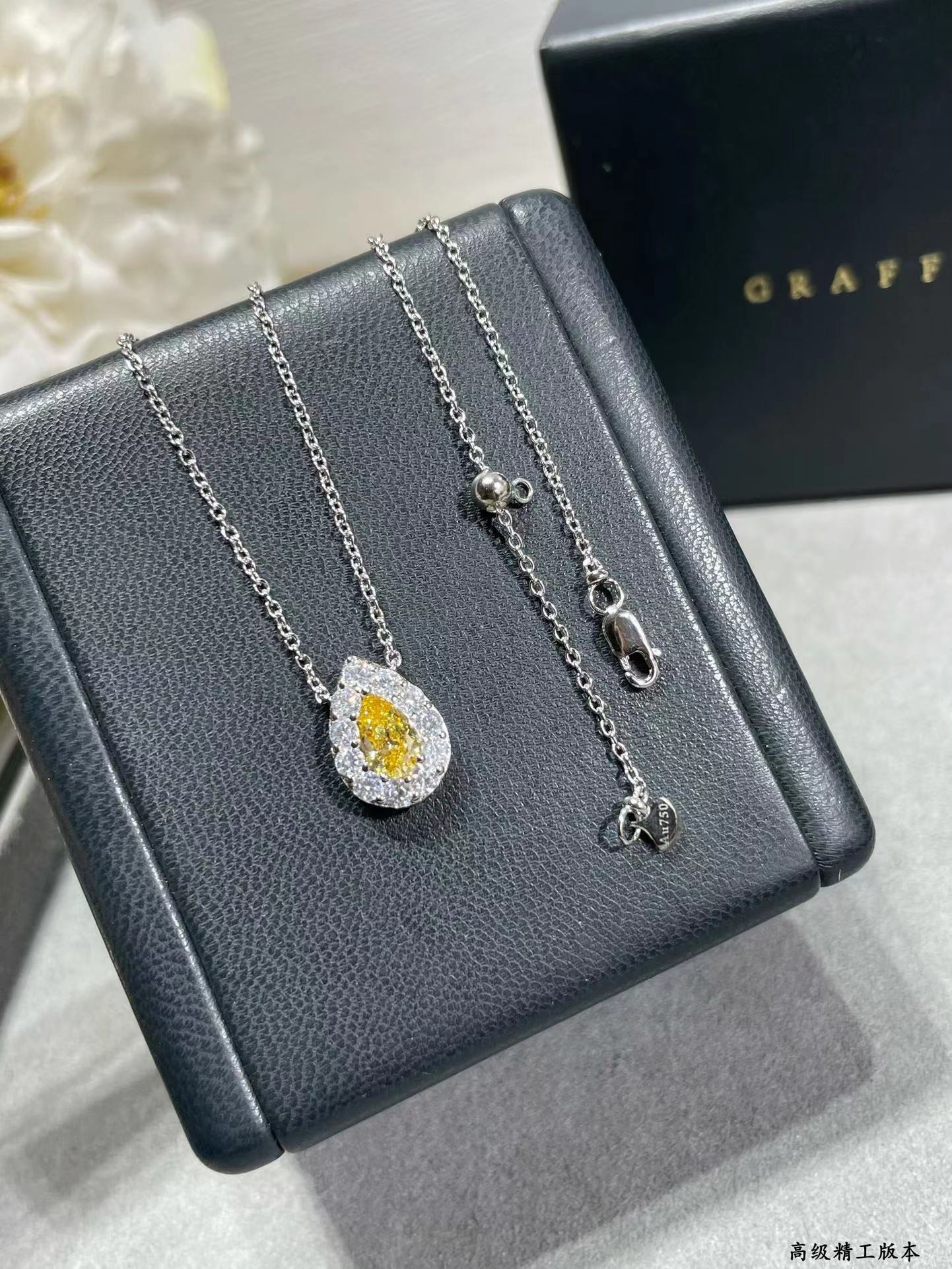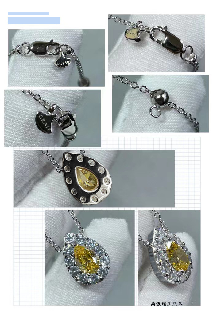 这款首饰是AAAAA 1:1 质量 (非常棒). 使用了和原版一模一样的材料. 商标部分也保持了和GRAFF一样. 图片拍摄是实物首饰拍摄, 您所收到的实物保证和我们图片一模一样.