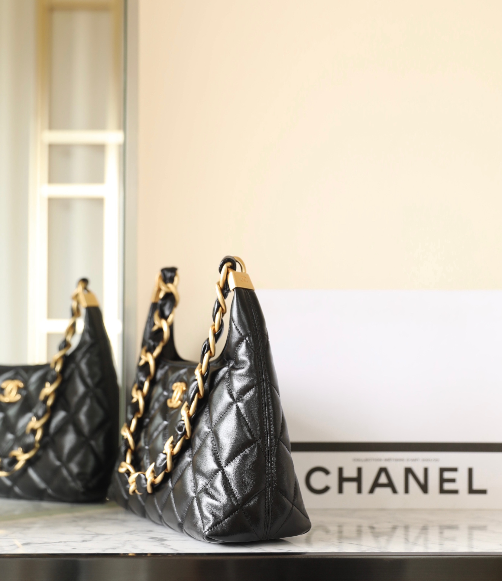 这款包包是AAAAA 1:1 质量 (非常棒). 使用了和原版一模一样的材料. 商标部分也保持了和香奈儿/Chanel一样. 图片拍摄是实物包包拍摄, 您所收到的实物保证和我们图片一模一样.