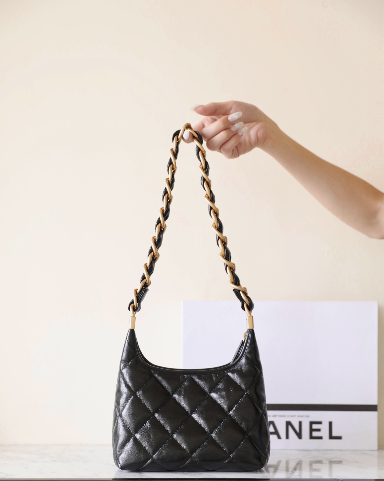 这款包包是AAAAA 1:1 质量 (非常棒). 使用了和原版一模一样的材料. 商标部分也保持了和香奈儿/Chanel一样. 图片拍摄是实物包包拍摄, 您所收到的实物保证和我们图片一模一样.